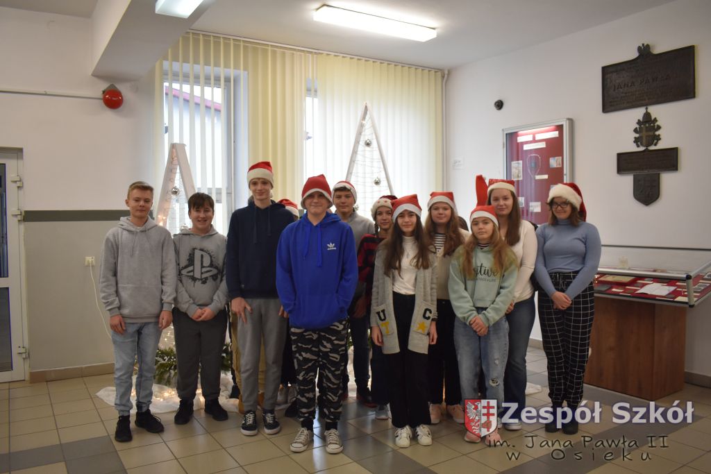 6 grudnia w naszej szkole zaczerwieniło się od mikołajkowych czapek i strojów, a wszystko za sprawą akcji Samorządu Uczniowskiego „Czapka Mikołaja zwalnia od pytania”.