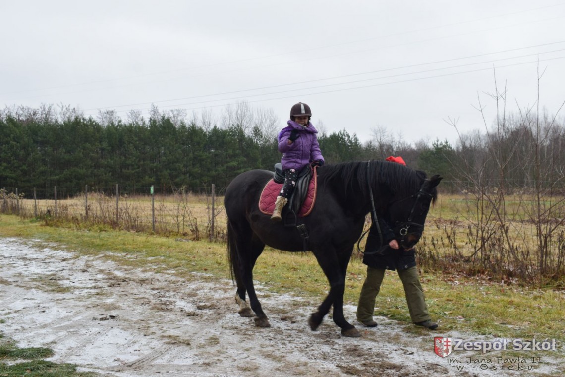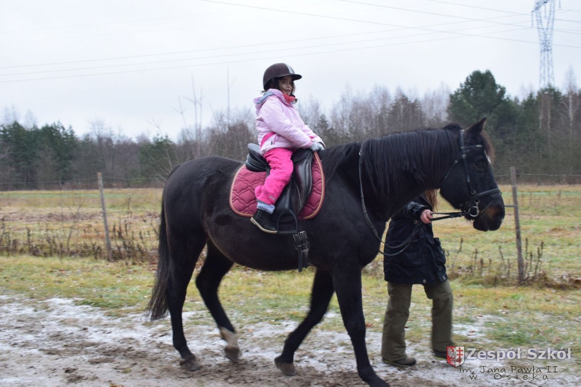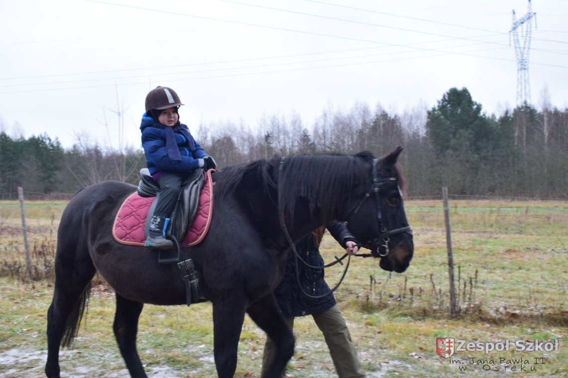 Wioska Appaloosa 2 grudnia gościła dzieci z grupy pięciolatków. W czasie pobytu dzieci uczestniczyły w twórczych warsztatach wykonując Bożonarodzeniowe stroiki, bawiły się w ogrodzie zmysłów, uczestniczyły w mini sesji zdjęciowej na tle aranżacji świątecznych oraz odbyły przejażdżkę na koniu. W indiańskim tipi pieczone były kiełbaski. Bardzo dziękuję Rodzicom za pomoc w organizacji wyjazdu oraz za opiekę podczas pobytu dzieci w wiosce.