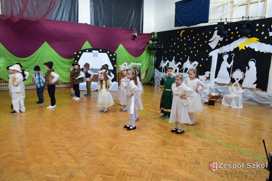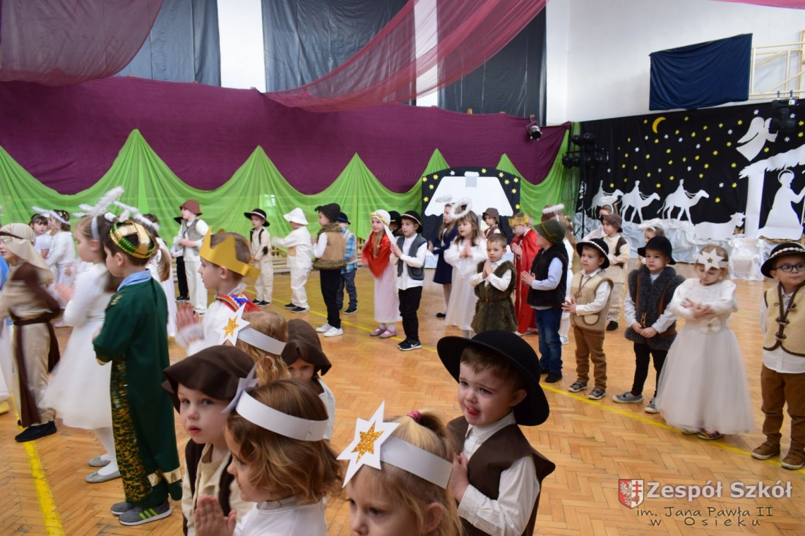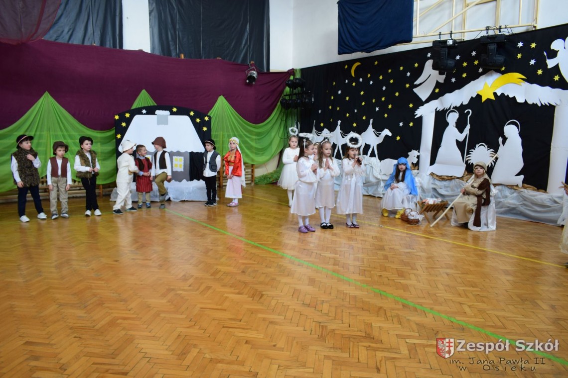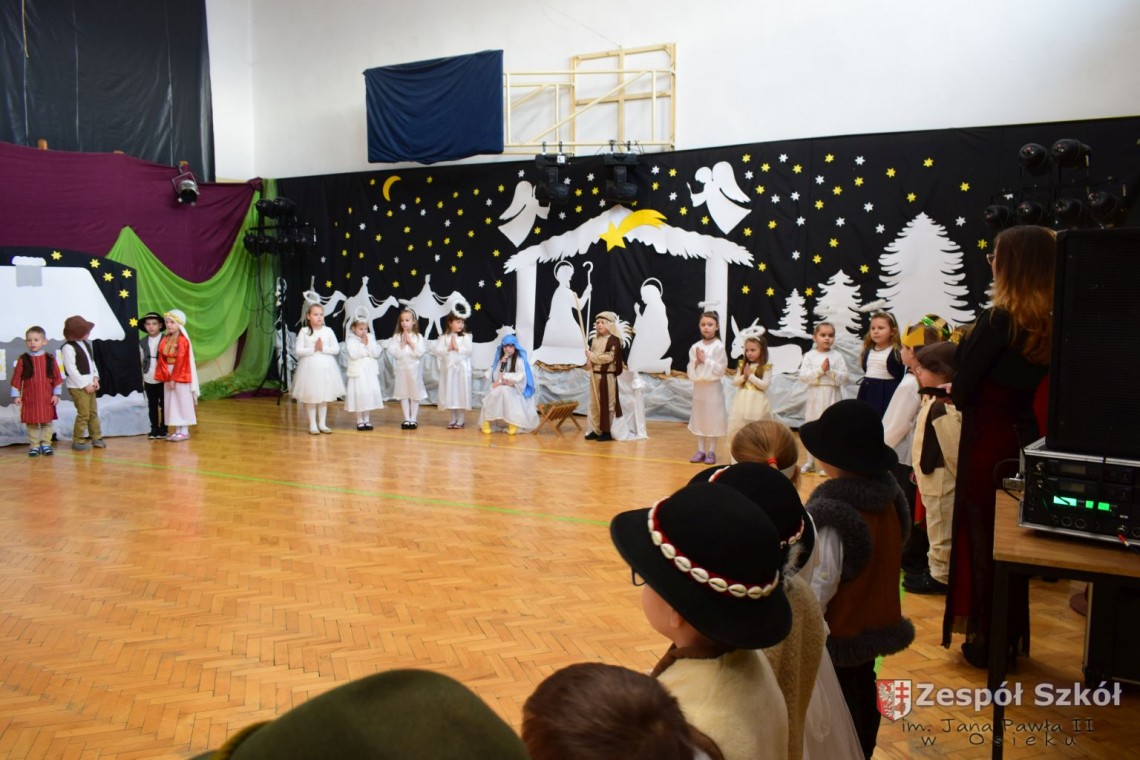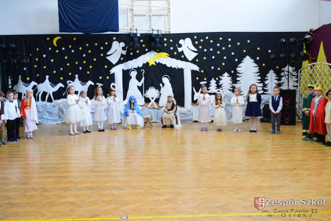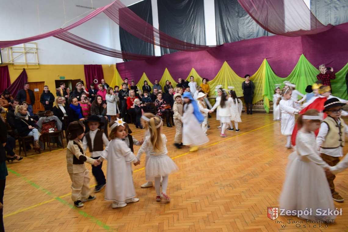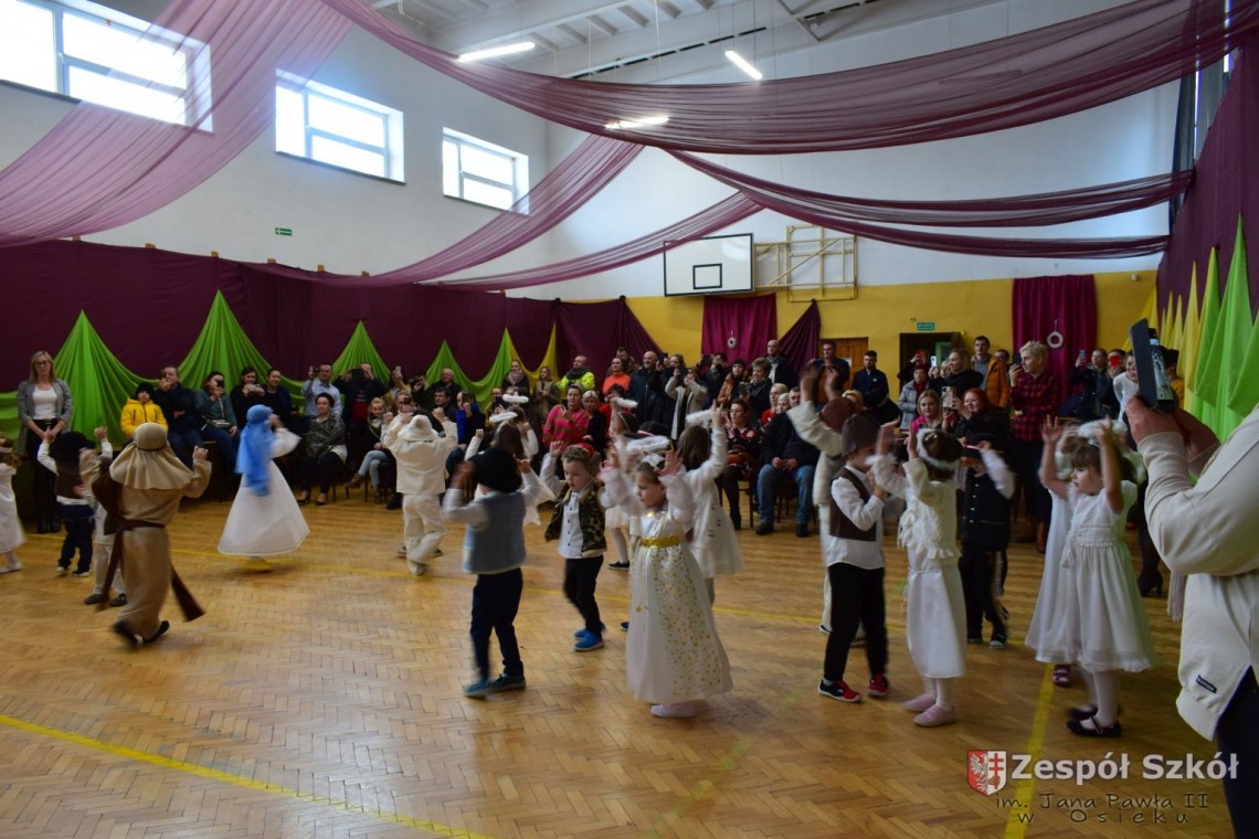 Dnia 21 grudnia 2022 r. dzieci z przedszkola w Osieku przedstawiły Jasełka dla swoich rodziców i zaproszonych gości. Głównym celem uroczystości było wprowadzenie uczestników w radosną atmosferę Świąt Bożego Narodzenia, kształcenie umiejętności wyrażania uczuć i przeżyć oraz rozwijanie uzdolnień aktorskich dzieci. Mali aktorzy przedstawili historię narodzin Dzieciątka Jezus. Sala wypełniona była aniołkami i pastuszkami, śpiewającymi kolędy i pastorałki. Do szopki przybyli też dostojni królowie, którzy złożyli dary Dzieciątku. Przedstawienie było wyjątkowe, a przepiękna sceneria nadała uroczysty i nastrojowy klimat.