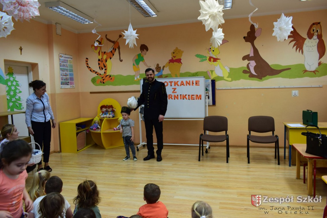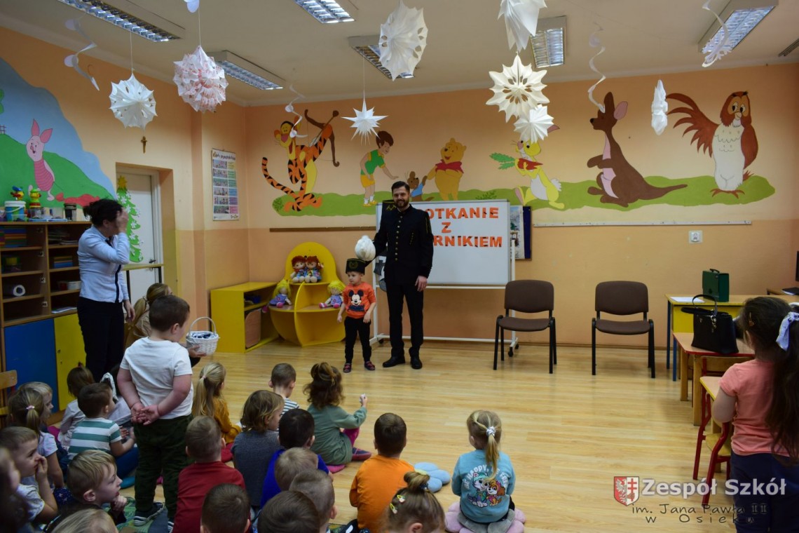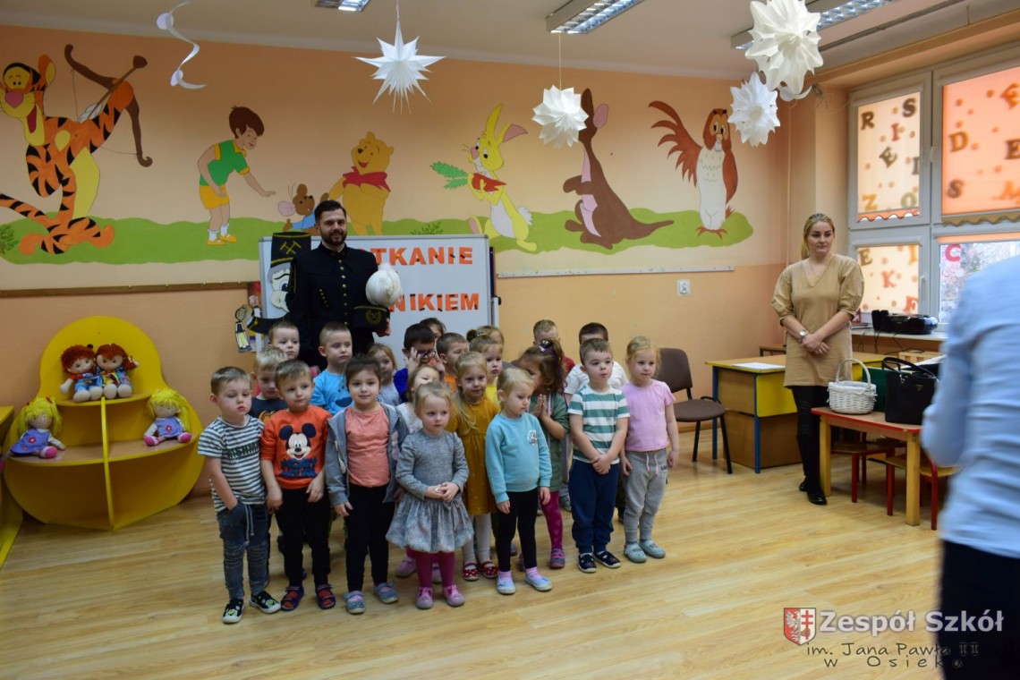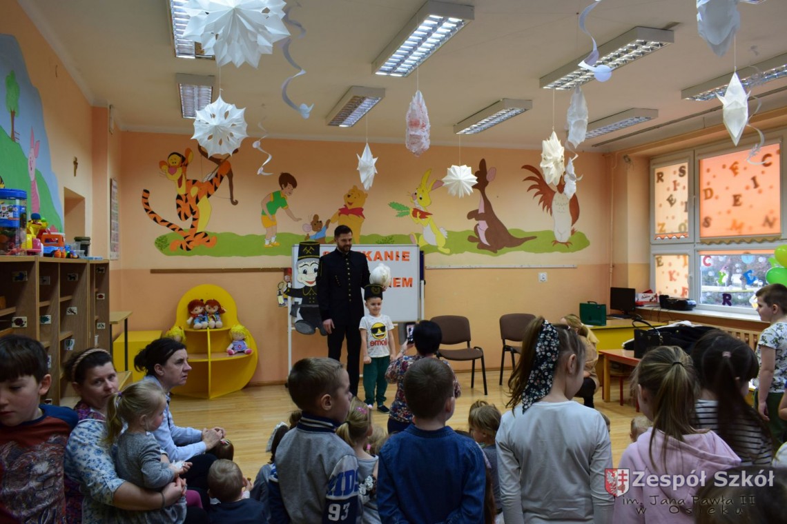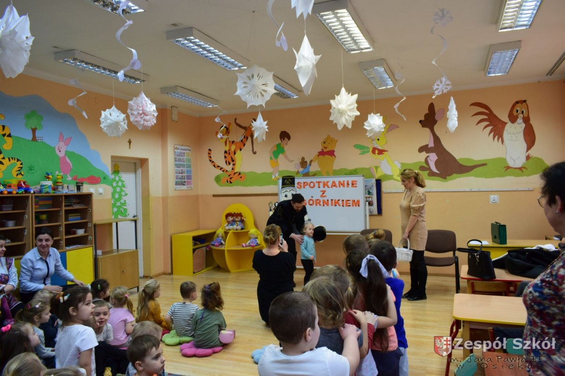 13.01.2023 r. w naszym przedszkolu gościliśmy górnika z Grupy Azoty Siarkopol Kopalni Siarki ,,Osiek”. Nasz gość ubrany w mundur galowy, zapoznał dzieci z częściami stroju górniczego, wszystkimi kolorami pióropuszy. Dzieci dowiedziały się również na czym polega praca górnika. Każdy przedszkolak mógł przymierzyć czapkę górniczą i otrzymał słodką niespodziankę.