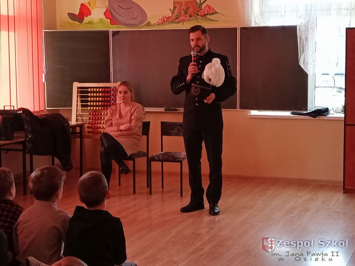 Chcąc przybliżyć dzieciom trudną i odpowiedzialną pracę górnika w dniu 13.01.2023 do Szkoły Podstawowej w Osieku został zaproszony górnik z Grupy Azoty Siarkopol Kopalni Siarki w Osieku.
