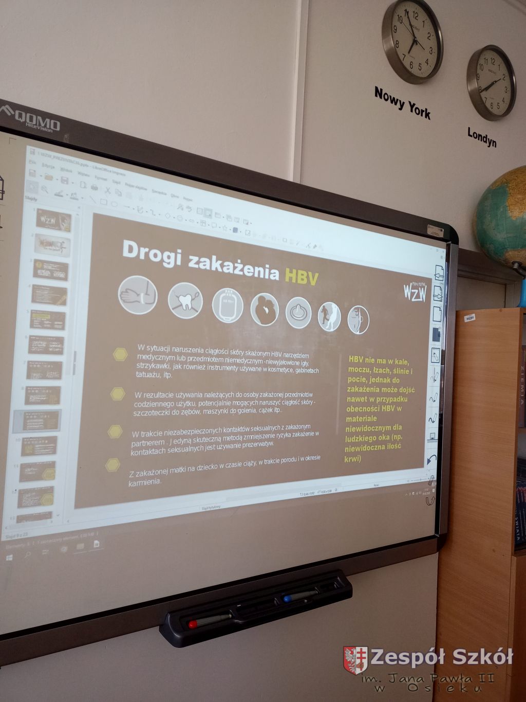 Nasza szkoła w bieżącym roku szkolnym wzięła udział w kolejnej edycji programu edukacyjnego "Podstępne WZW".Program ten realizowany jest we współpracy z Powiatową Stacją Sanitarno – Epidemiologiczną w Staszowie. Celem przedsięwzięcia jest upowszechnienie wśród młodzieży szkół ponadpodstawowych wiedzy na temat wirusowego zapalenia wątroby typu A, B i C, uświadomienie ryzyka zakażenia wirusami HBV i HCV oraz zagrożeń wynikających z zakażenia, wpojenie zasad profilaktyki w tym zakresie oraz pobudzenie do refleksji nad akceptacją osób już zakażonych.