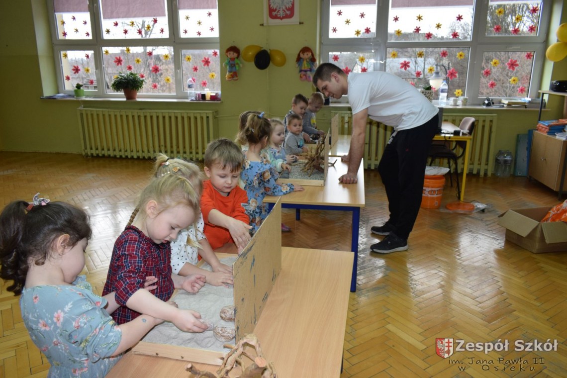 Warsztaty akwarystyczne odbyły się we wszystkich grupach przedszkolnych w dniu 8 marca. Warsztaty przeprowadził akwarysta Pan Jacek Ambrożkiewicz. Dzieci z zainteresowaniem słuchały opowieści jak zostać akwarystą i co potrzebne jest do hodowli rybek. Samodzielnie przy makietach komponowały akwarium wykorzystując do tego różnego rodzaju żwirek, piasek, korzenie oraz kamienie. Dzieci wykazały dużą kreatywność i zaangażowanie. Pan Jacek promuje akwarystykę wśród dzieci nie tylko poprzez przeprowadzanie warsztatów, ale również poprzez realizację projektu „Mamo! Tato! Będę akwarystą”, pisze artykuły, które można przeczytać w magazynie AKWARIUM (ogólnopolski dwumiesięcznik).