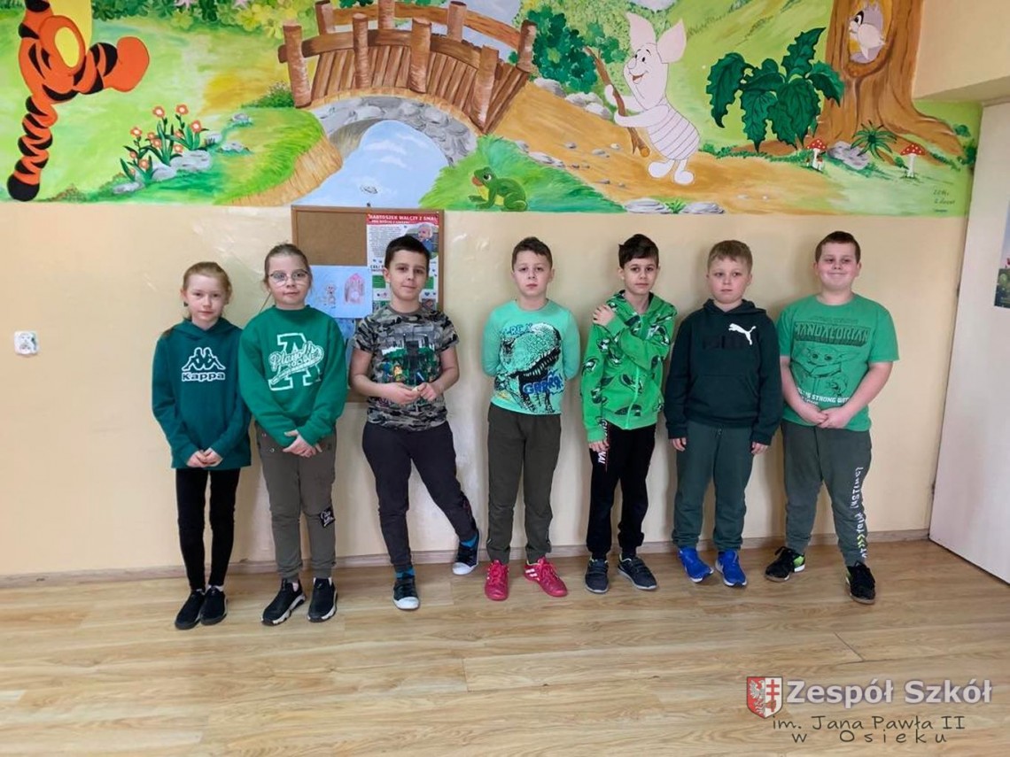 21 marca z okazji Pierwszego Dnia Wiosny w naszej szkole zorganizowano dzień pt.: „ZIELONO MI”. Pierwszy Dzień Wiosny uczniowie przywitali w zielonych strojach. Dzięki temu sale lekcyjne wyglądały jak łąka i nikt już nie myślał o tym, co dzieje się za oknem. Były rozmowy o wiośnie, o jej zwiastunach, a także prace plastyczne związane z tą porą roku. Było wesoło, zabawnie i zielono…Zobaczcie sami…