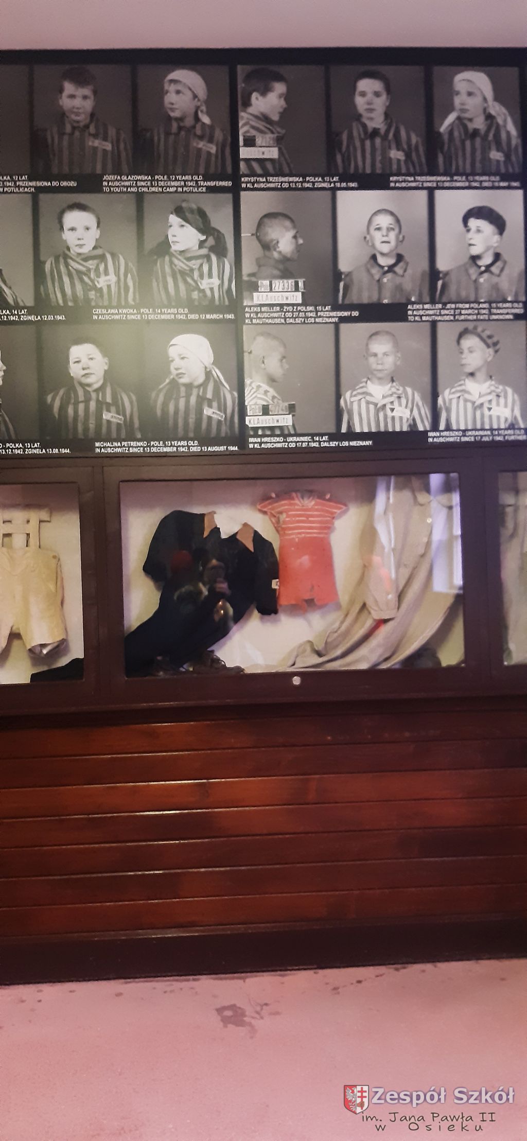 Zwiedzanie rozpoczęliśmy od przejścia przez bramę, na której widniał napis „ Arbeit macht frei”, czyli w tłumaczeniu na język polski "praca czyni wolnym". Przewodnik wyjaśnił uczniom, że wcale tak nie było. Szanse na przeżycie w tym miejscu śmierci i tortur były naprawdę znikome. Zwiedzając bloki uczniowie dowiedzieli się również, że większość ludzi była sprowadzona tam podstępem. Niemcy zapewniali im noclegi, pracę, przejazd do ”zakładu pracy”. Po przyjeździe zaczęła się ”selekcja”. Starsi ludzie od razu zostali skazani na śmierć, dzieci poniżej czternastego roku życia również. Ci, którzy trafili do obozu zostali ograbieni ze wszystkich rzeczy, obcinano im włosy, dezynfekowano, kąpano i ubierano w ”pasiaki” – stroje podobne do więziennych. Resztę ludzi Niemcy stawiali pod prysznicami, z których nie płynęła woda. Do komory przez kominy, znajdujące się w suficie, wsypywano cyklon B – środek chemiczny służący do dezynfekcji i dezynsekcji. Dwadzieścia minut – tyle czasu wystarczyło, żeby nikt już stamtąd nie wyszedł.