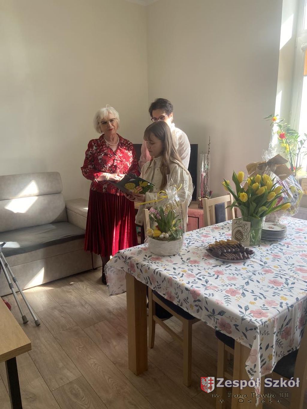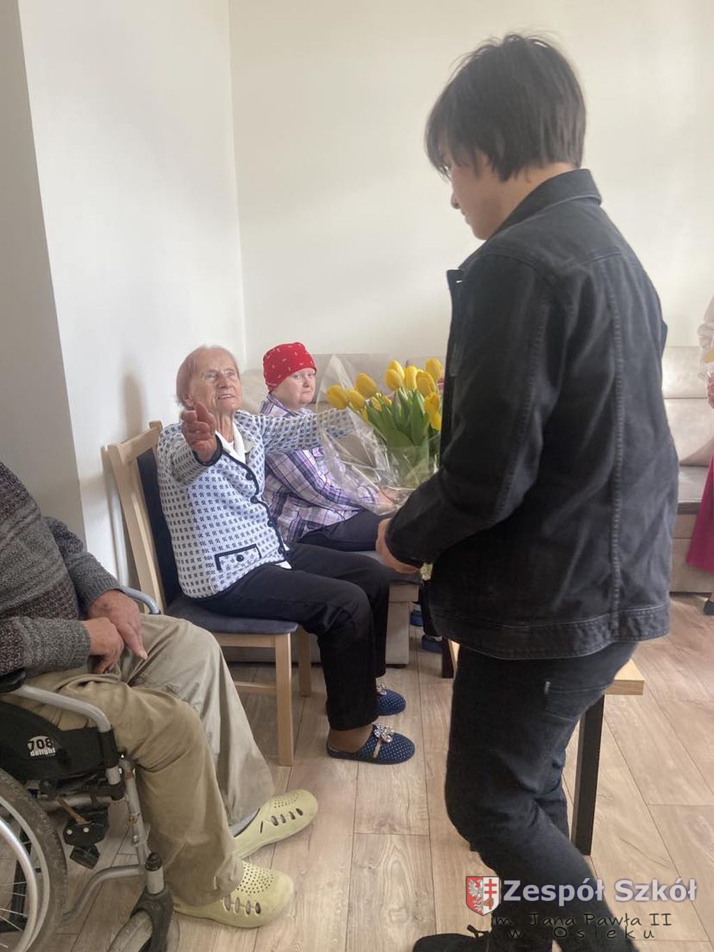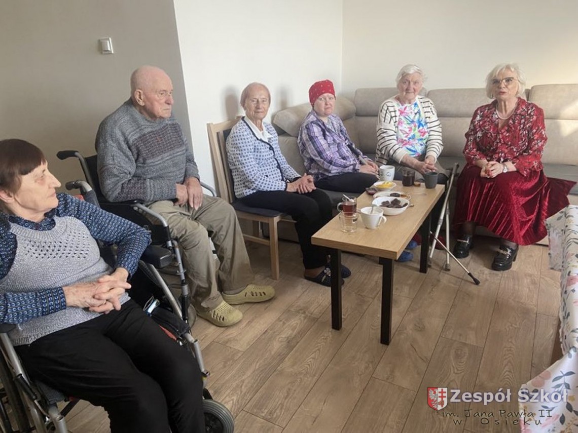 Dyrekcja i uczniowie Zespołu Szkół im. Jana Pawła II w Osieku w niedzielne popołudnie (26.03.2023r.) odwiedzili mieszkańców Centrum Opiekuńczo-Mieszkalnego w Bukowej.