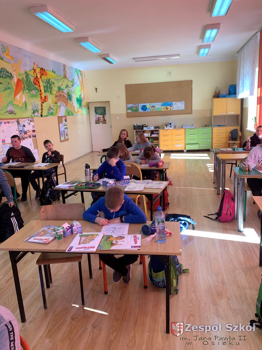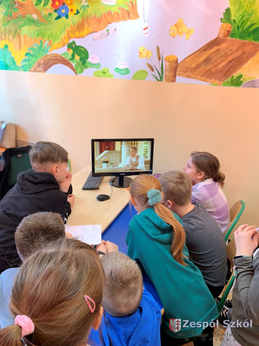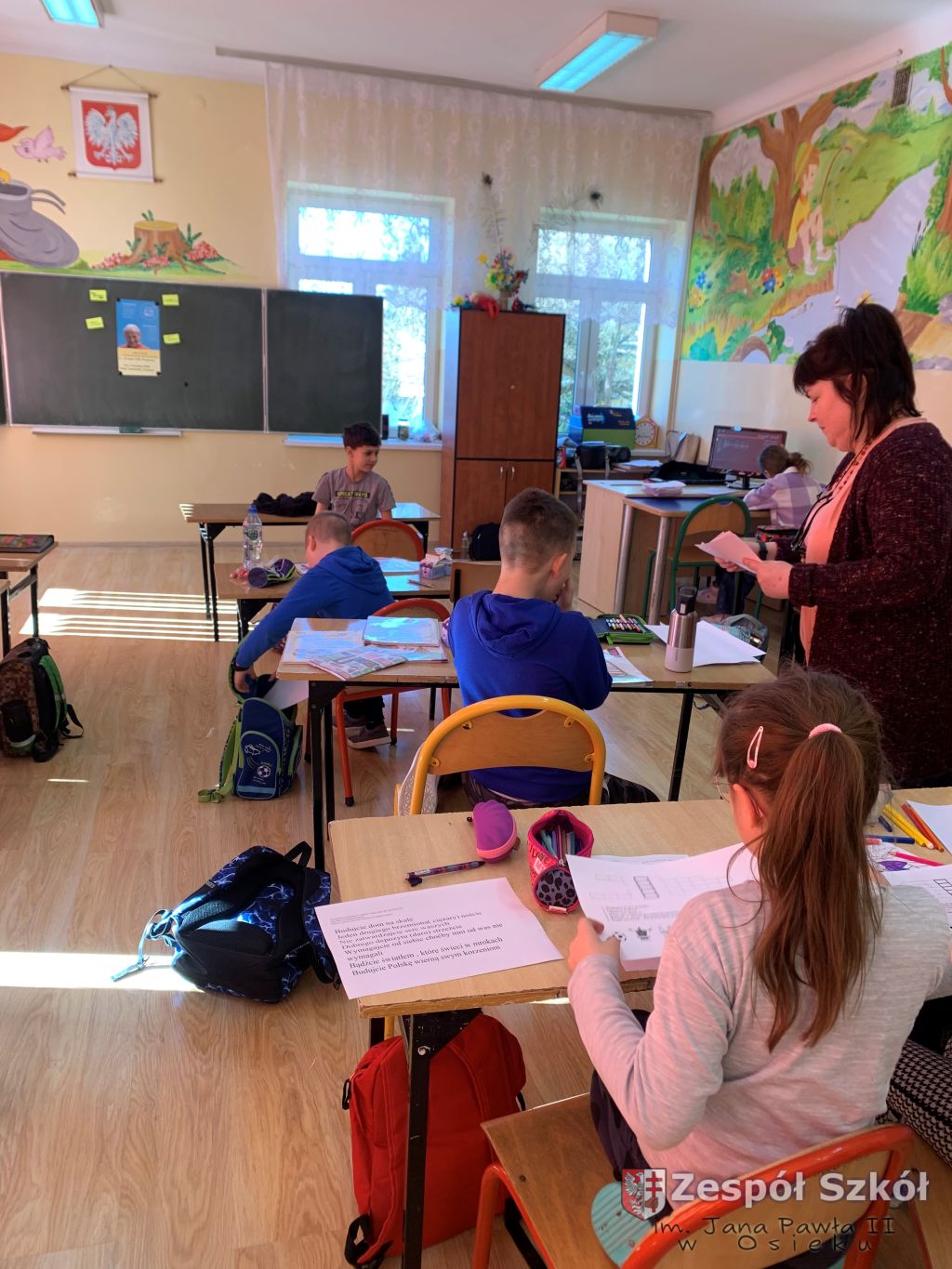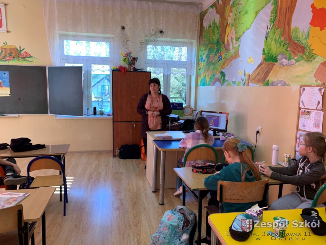 W dniu 29 marca 2023 r. uczniowie klasy III uczestniczyli w zajęciach bibliotecznych. Tematem zajęć było wspomnienie Papieża Polaka- Jana Pawła II- patrona naszej szkoły. Zajęcia prowadzone były przez panią Dorotę Wójcik z Biblioteki Pedagogicznej w Staszowie. Poprzez ciekawą prezentację, opowiadania i krótkie filmy została przedstawiona postać Jana Pawła II. Uczniowie poznali najważniejsze wydarzenia z życia Papieża Polaka. Dowiedzieli się, gdzie się urodził, jak spędzał dzieciństwo, kto był jego autorytetem oraz co chciał przekazać drugiemu człowiekowi. Uczniowie poznali również drogę pontyfikatu Karola Wojtyły. Później dzieci z pomocą pani Doroty rozwiązywały krzyżówki oraz zastanawiały się nad znaczeniem słów, które Papież często mówił do wiernych.