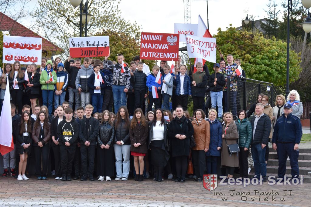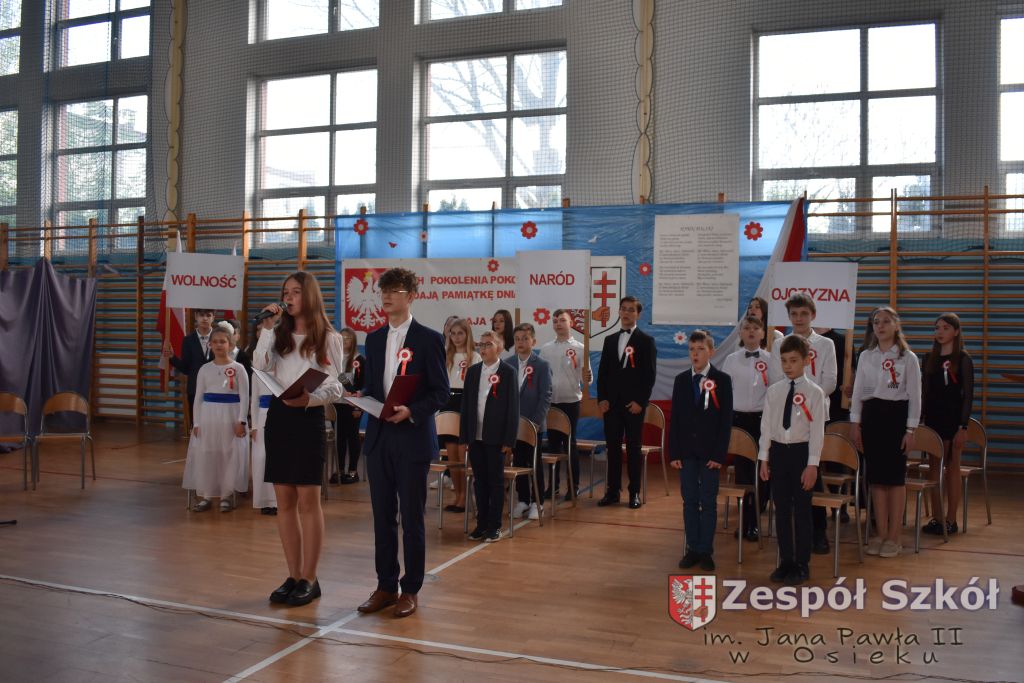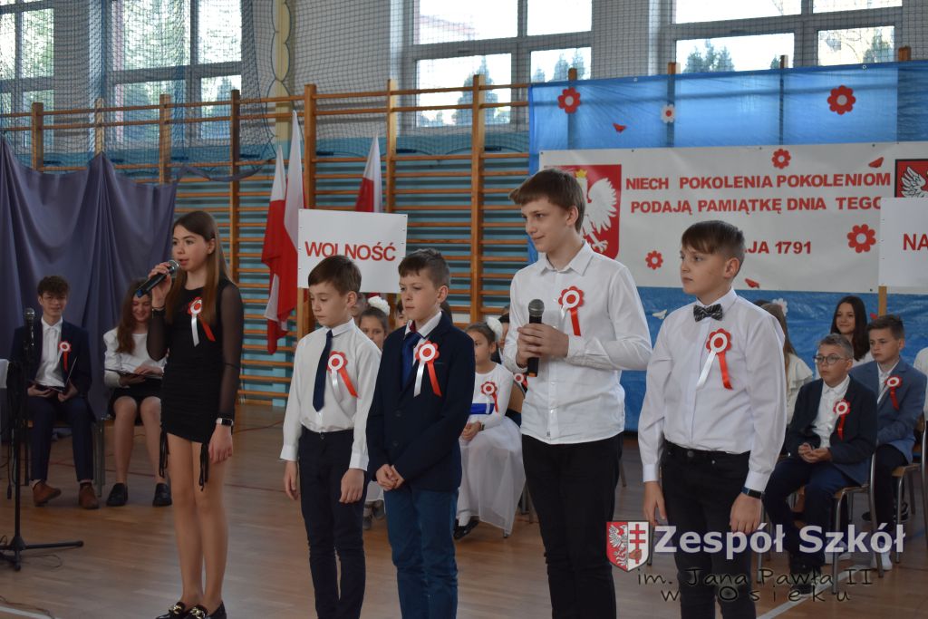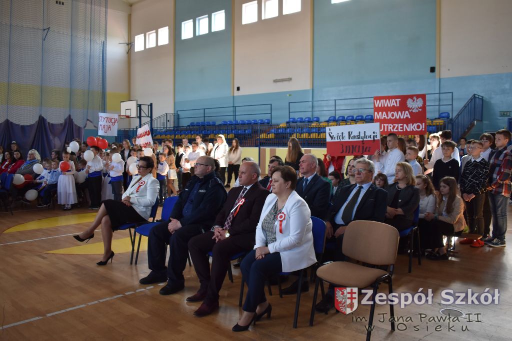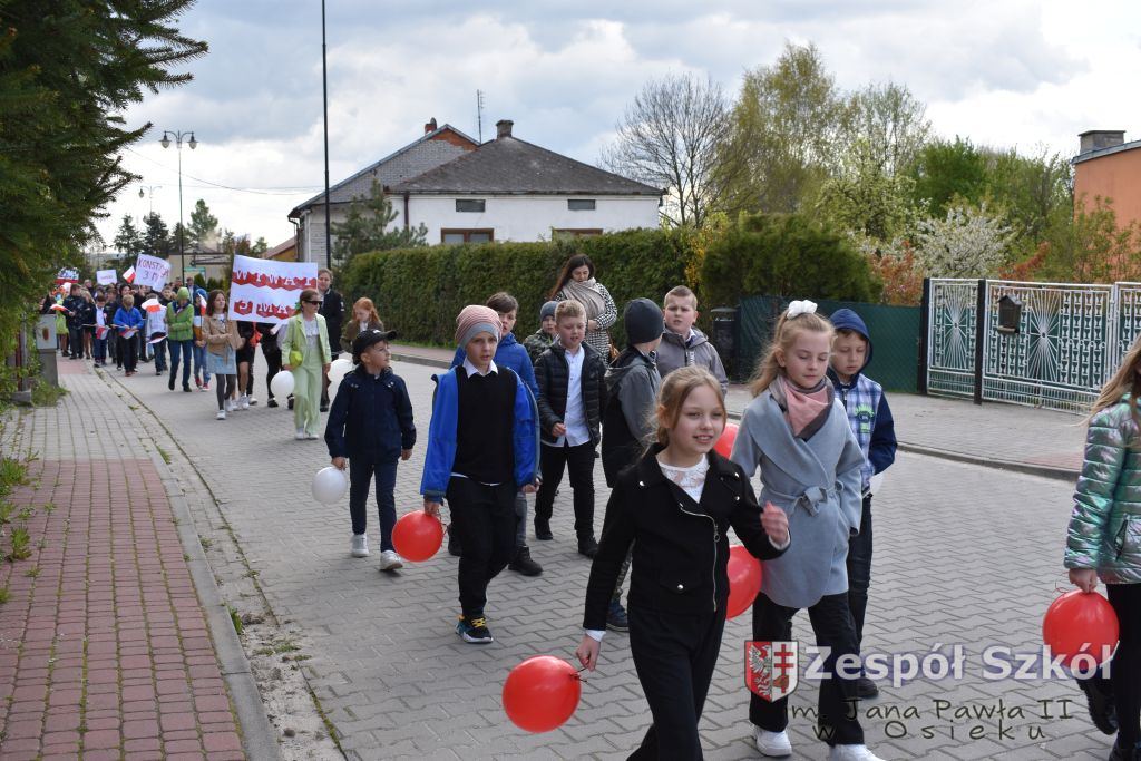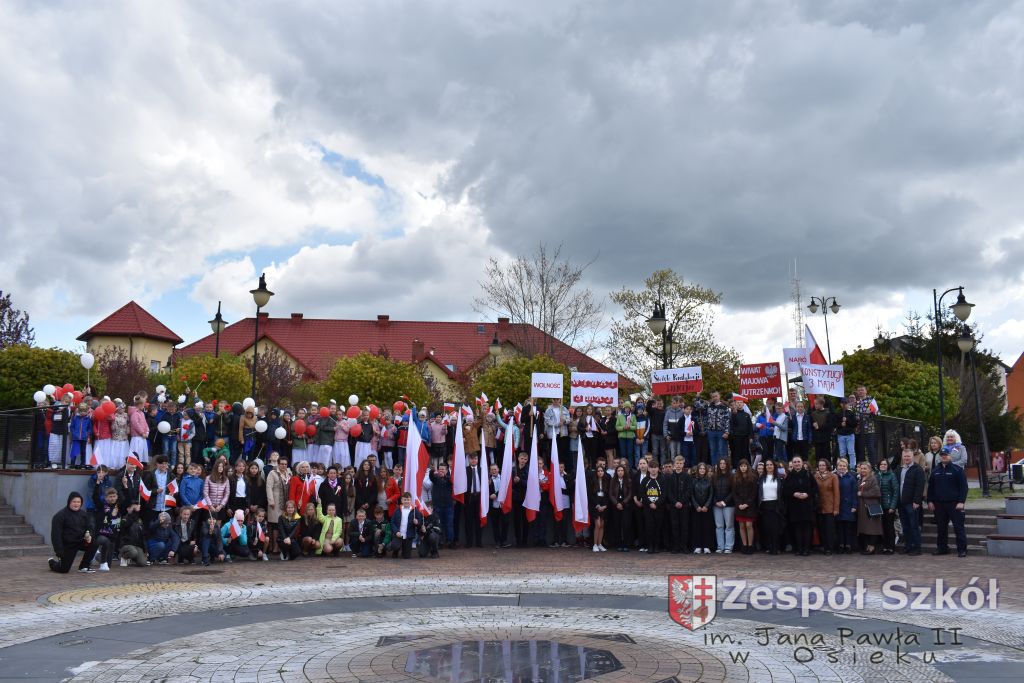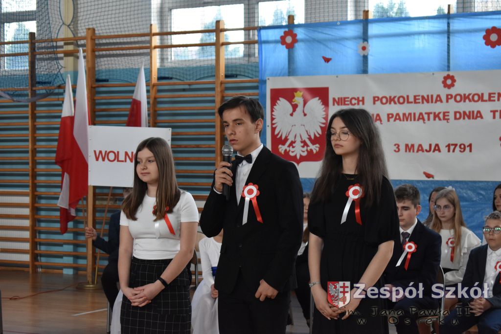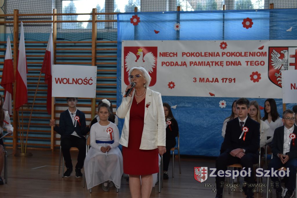W dniu 27 kwietnia 2023 roku w naszej szkole odbyła się uroczysta akademia z okazji 232 rocznicy uchwalenia Konstytucji 3 Maja. Młodzi artyści biorący udział w akademii, która swoim charakterem nawiązywała do obrad Sejmu 4- letniego starali się w sposób jak najbardziej jasny i zrozumiały przedstawić społeczności uczniowskiej wagę i rolę uchwalonej konstytucji. Ukazali również nadzieję jaką z nowo uchwaloną konstytucją wiązali Polacy. Po zakończonej akademii odbył się ulicami Osieka uroczysty przemarsz uczniów, nauczycieli i zaproszonych gości.
