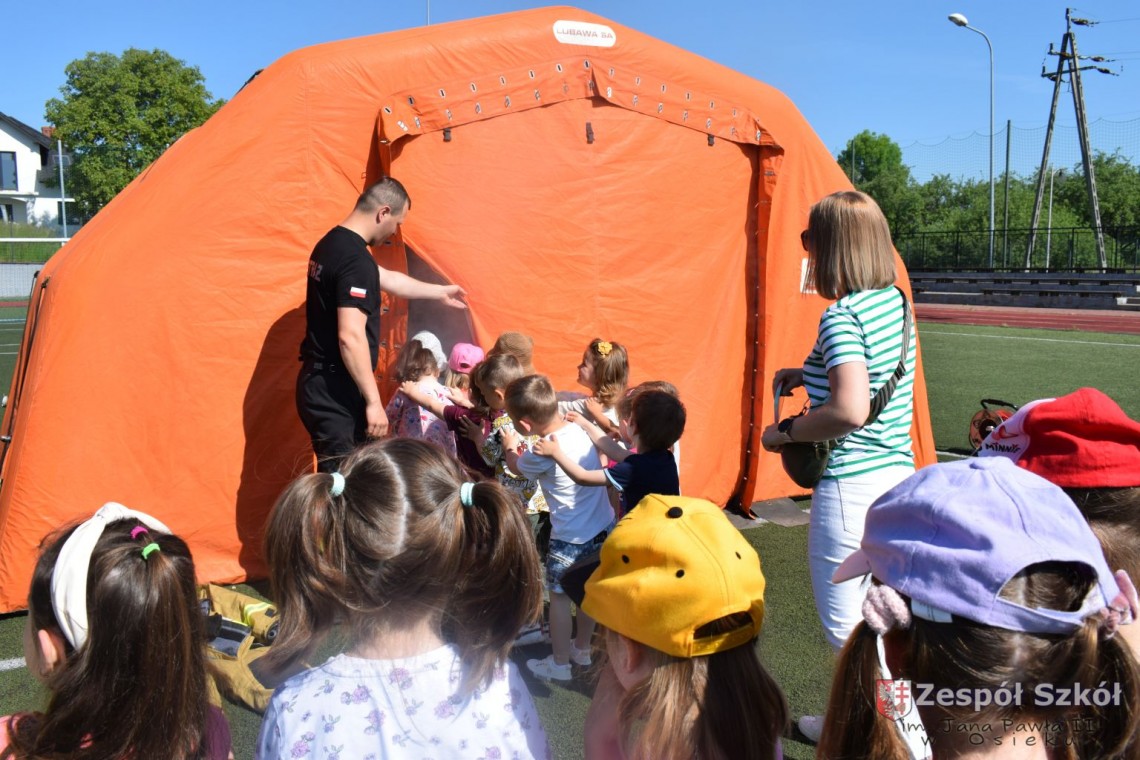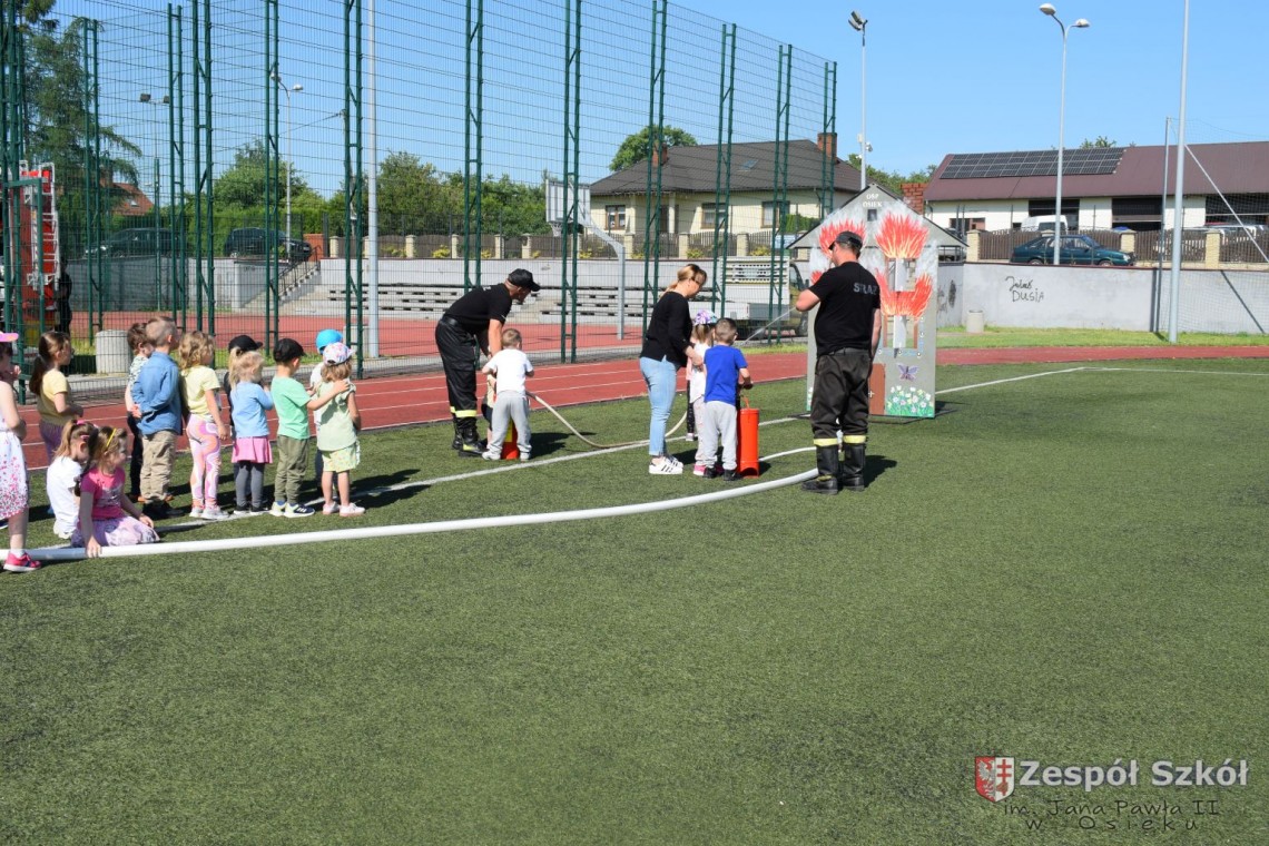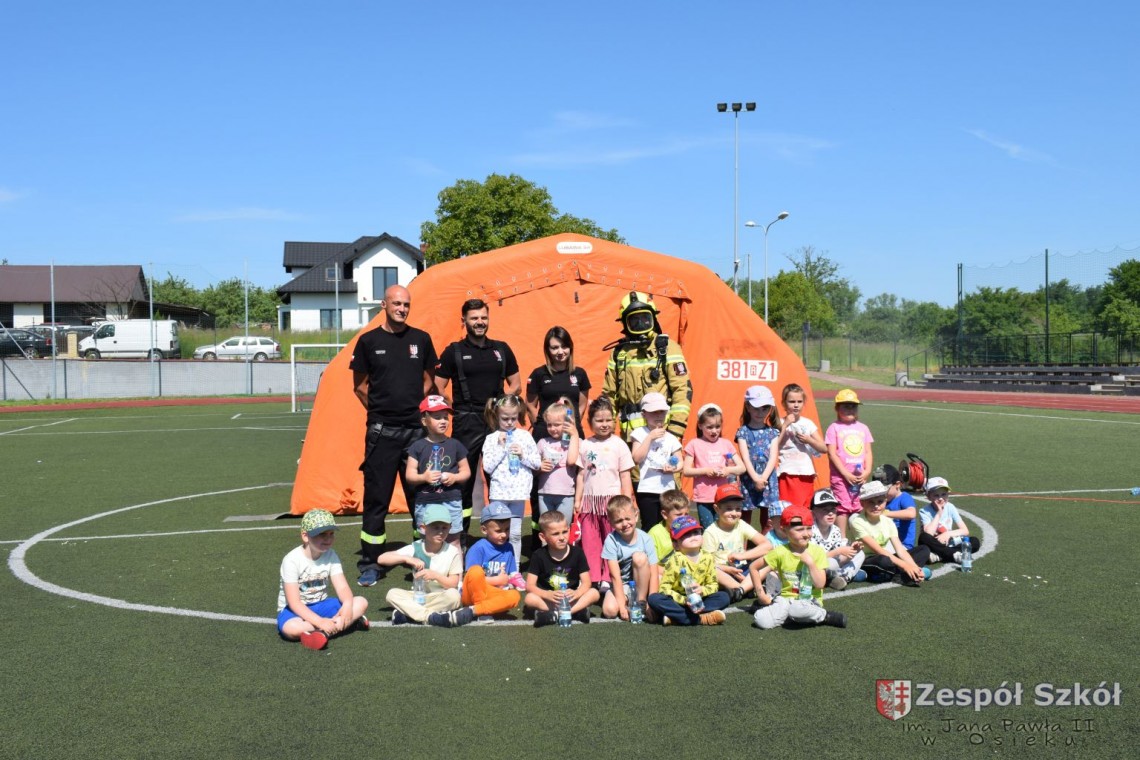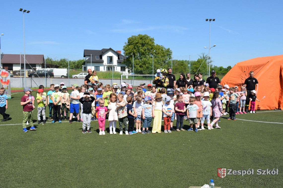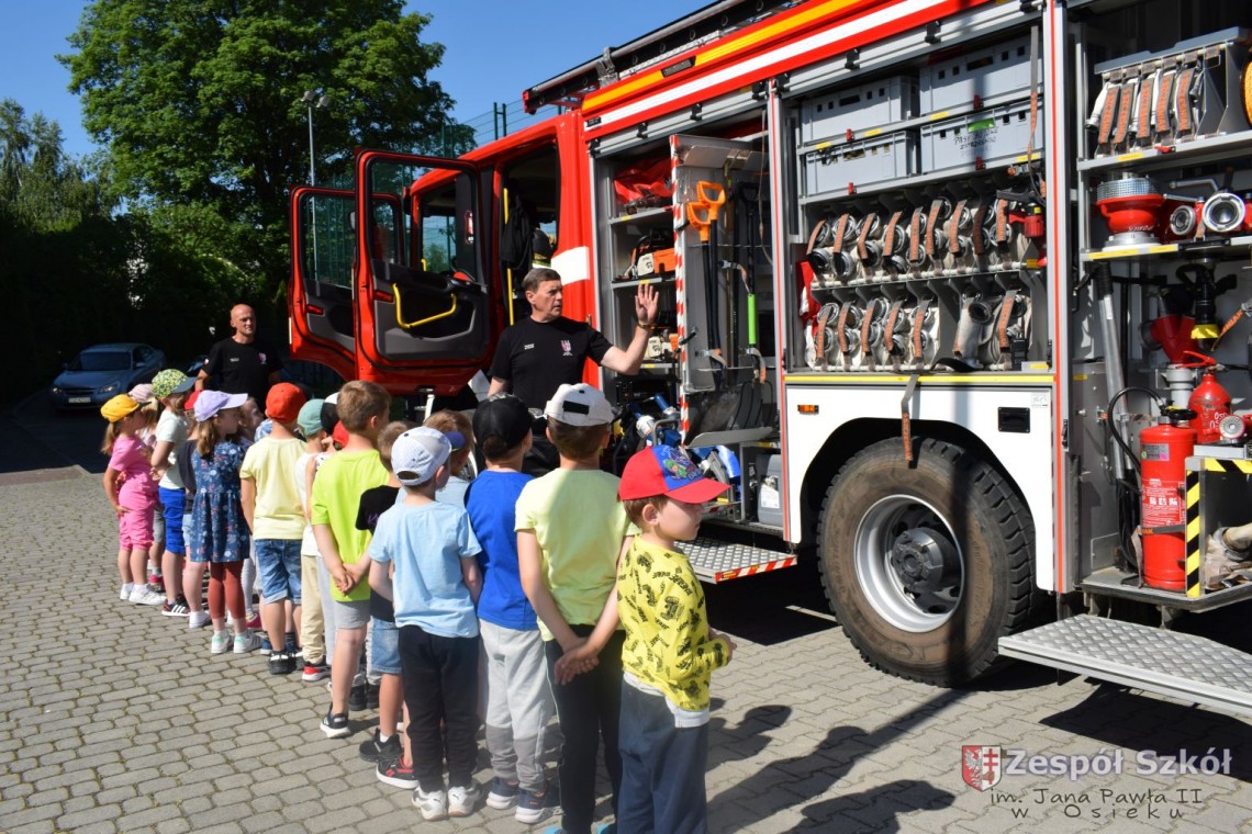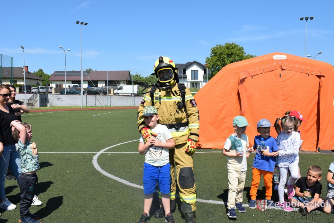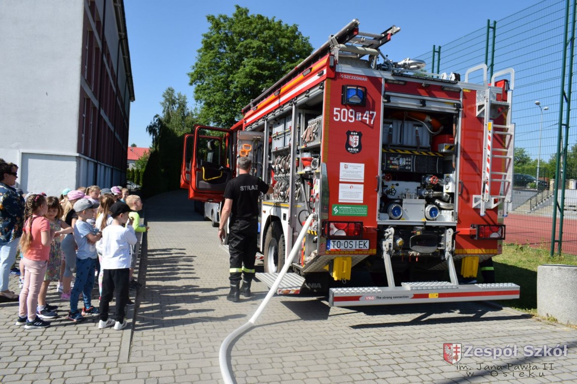 Dzień Dziecka to święto, które uwielbiają wszystkie dzieci. Przedszkolaki ten dzień spędziły bardzo aktywnie ze strażakami OSP w Osieku. Dzieci dowiedziały się, jak trudna i niebezpieczna jest praca strażaka. Oglądały wóz strażacki, sprzęt gaśniczy, komorę dymową i gasiły płonący domek. Na koniec imprezy dzieci otrzymały od strażaków pyszny upominek: popcorn i watę cukrową. Był to dzień pełen radości, zabawy i niezapomnianych wrażeń.