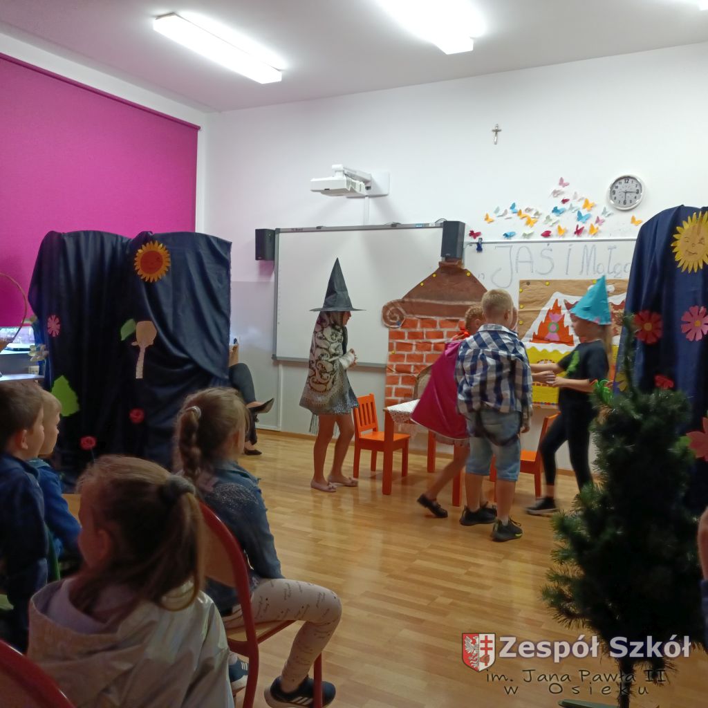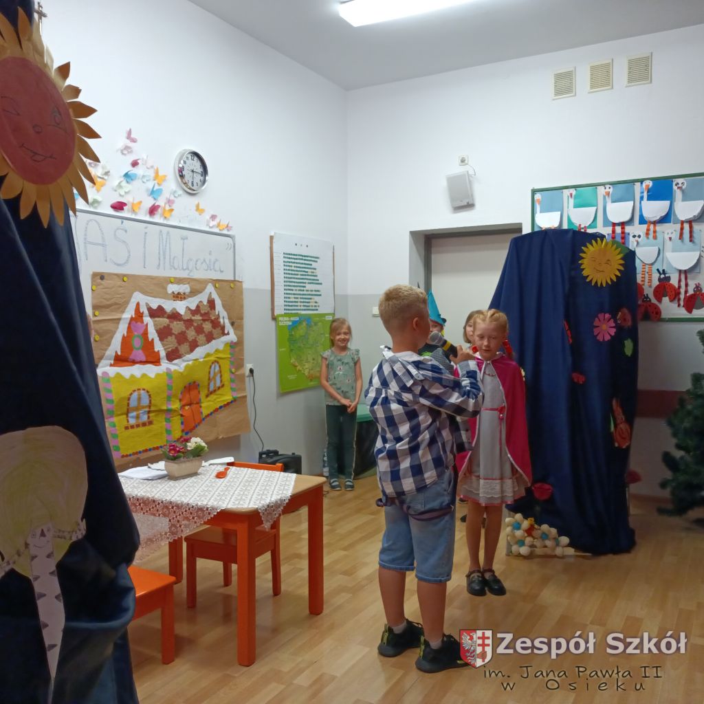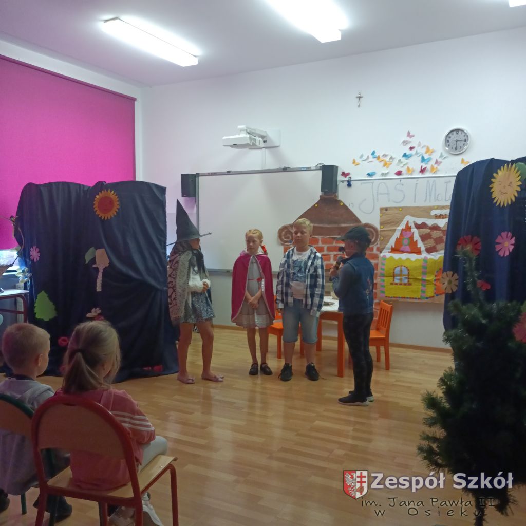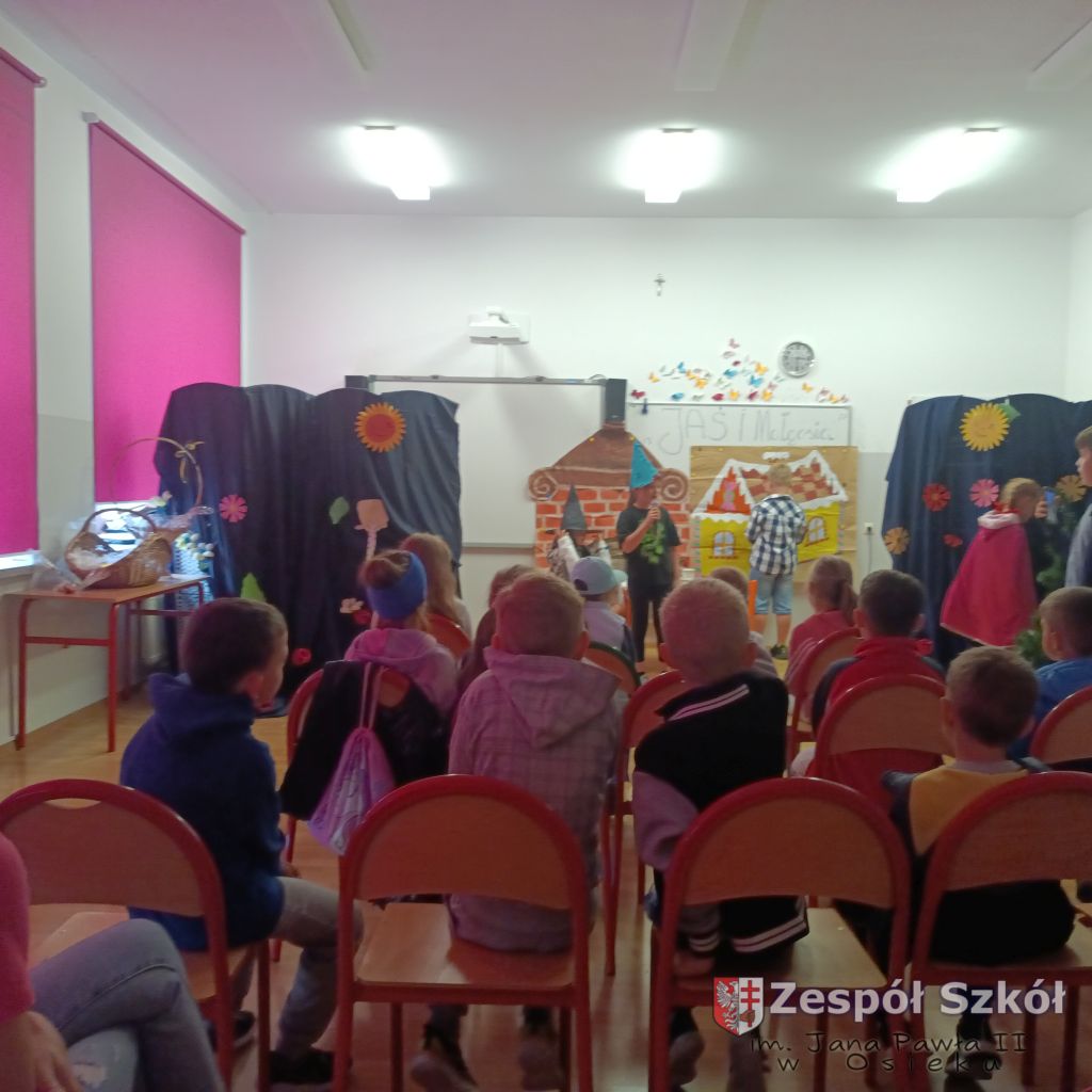 W dn.15.06.2023r. w ramach zajęć rozwijających zainteresowania czytelnicze uczniowie klasy III pod kierunkiem pani Ewy Golańskiej przedstawili teatrzyk pt.,,Jaś i Małgosia’’ dla grupy dzieci sześcioletnich z przedszkola w Osieku.