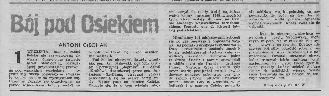 Wspomnienia mieszkańców Osieka o Bitwie pod Osiekiem