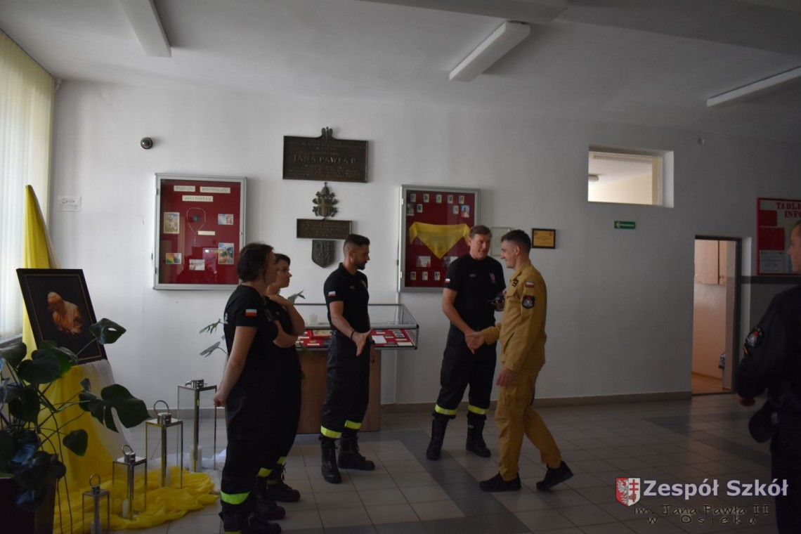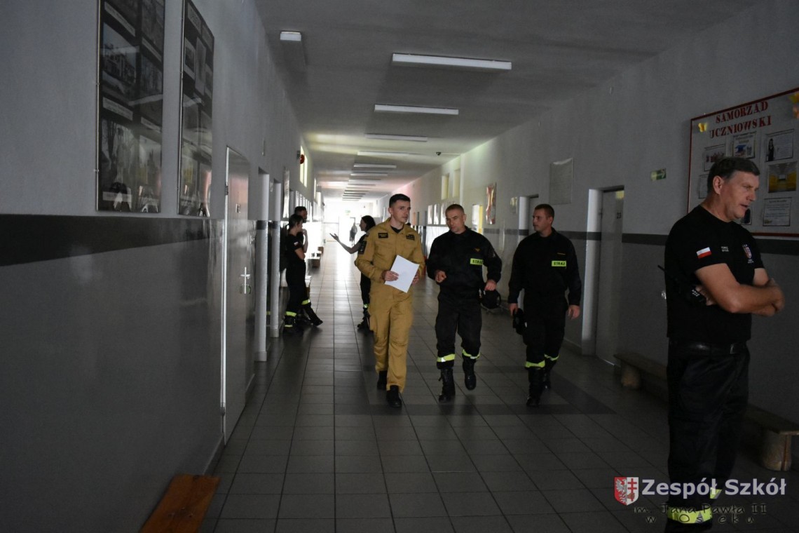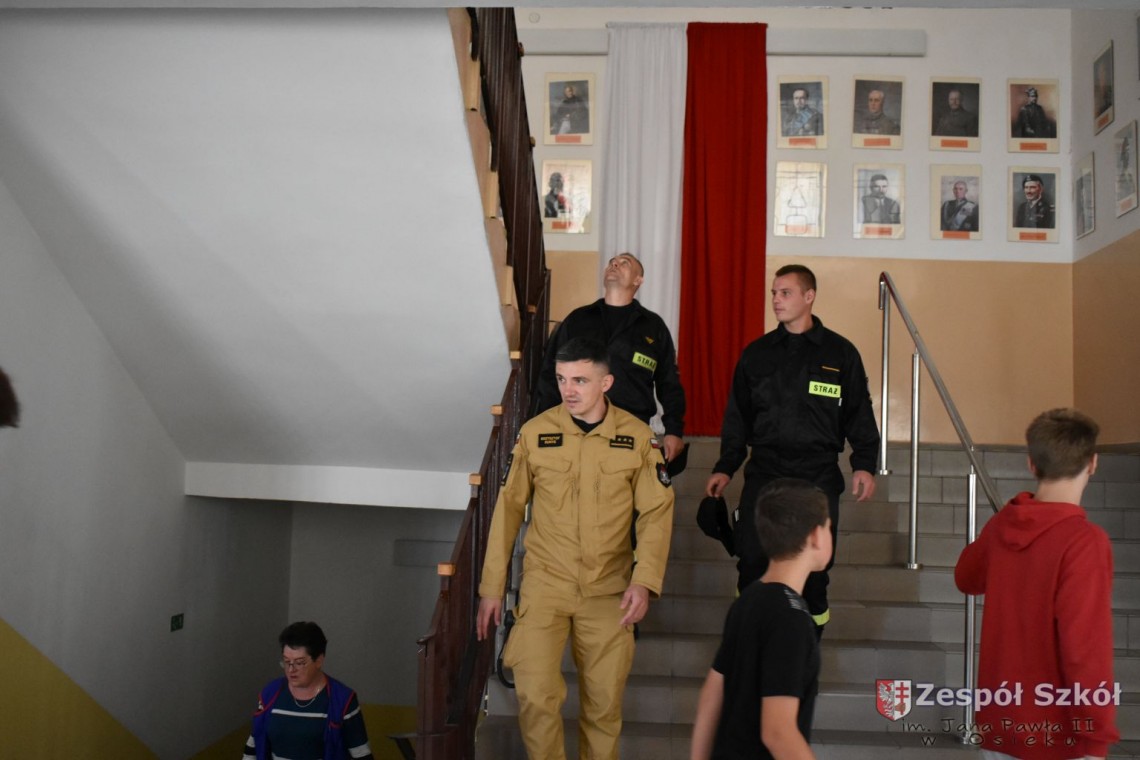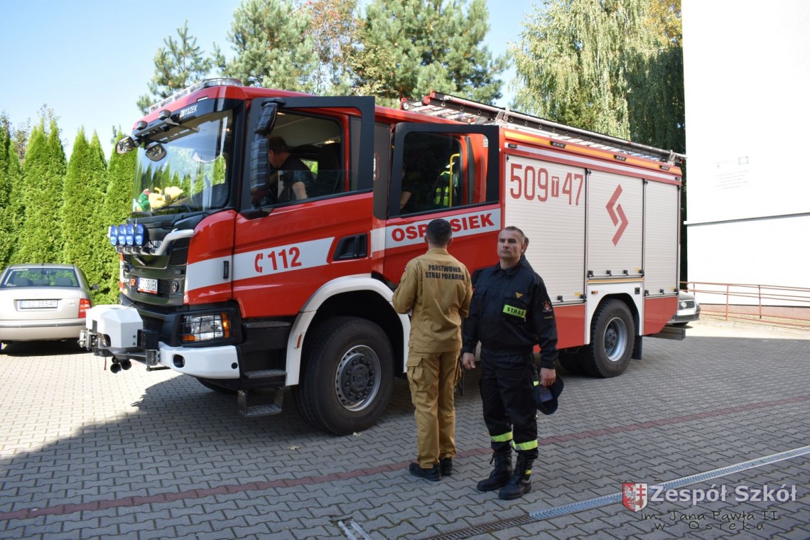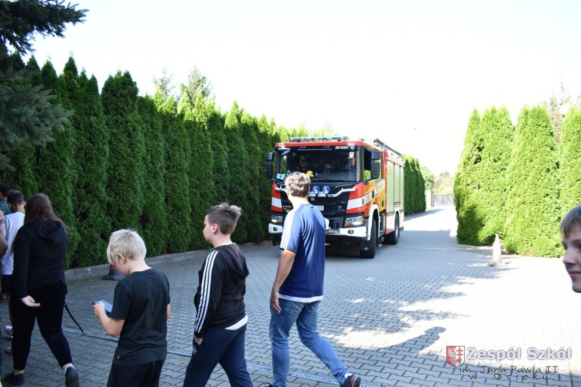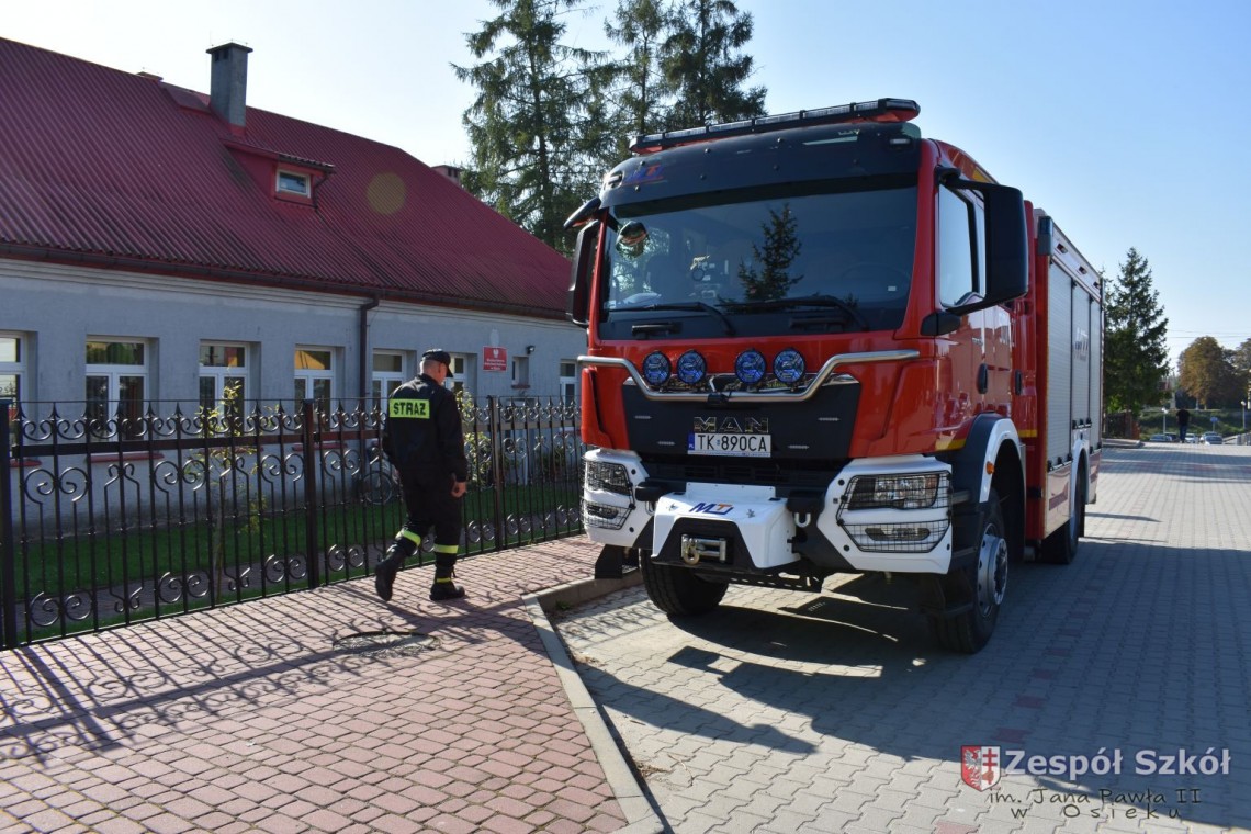 W dniu 27 września 2023 r. w Zespole Szkół im. Jana Pawła II w Osieku zostały przeprowadzone ćwiczenia w zakresie praktycznego sprawdzenia organizacji oraz warunków ewakuacji przy współpracy Państwowej Powiatowej Straży Pożarnej w Staszowie i Ochotniczej Straży Pożarnej w Osieku.