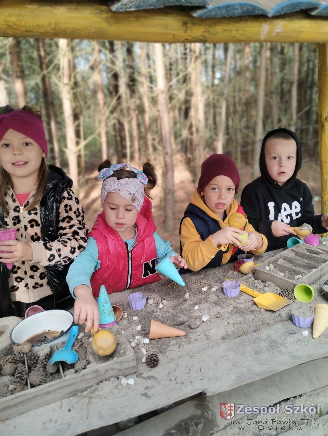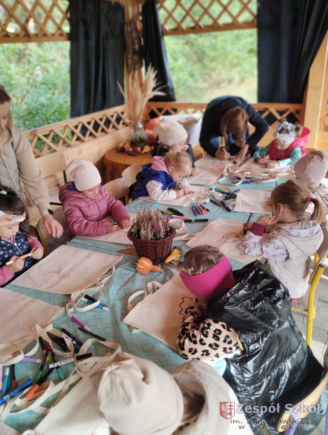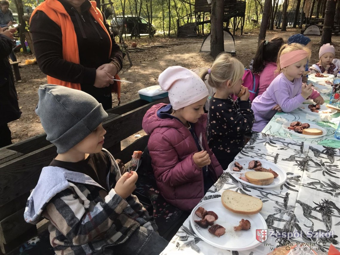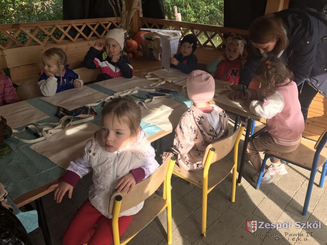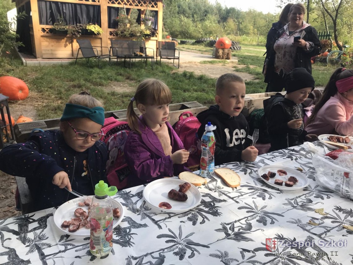 5 października przedszkolaki z grup 4 i 5 latków miały okazję zagościć w uroczej, Dyniowej Wiosce w Stalach. Na dzieci czekało tam dużo atrakcji: udział w warsztatach kreatywnych- wykonanie własnej ecotorby, gra terenowa, przejażdżka na koniu i mnóstwo zabaw na świeżym powietrzu. Jedną z atrakcji było ognisko i pieczenie kiełbasek. Po tak długim pobycie na świeżym powietrzu dzieci wcinały, aż miło, nawet z dokładkami! Było SUPER!