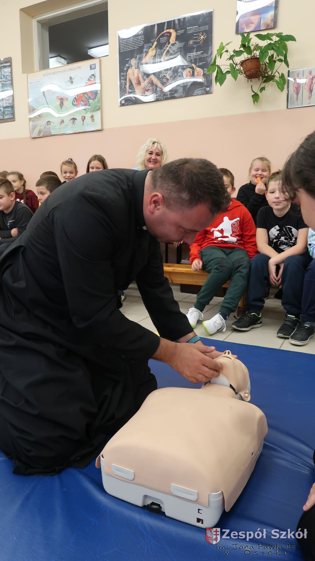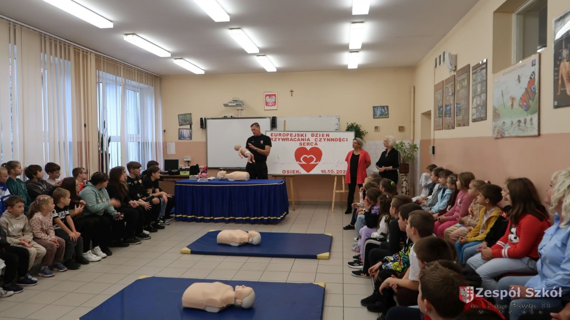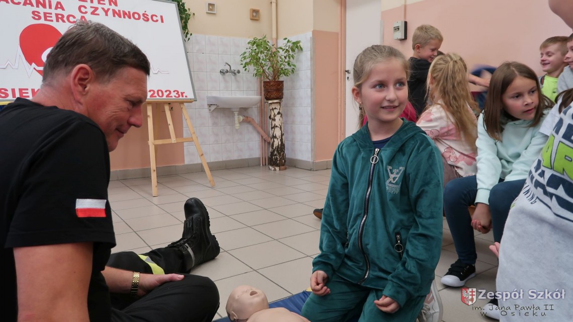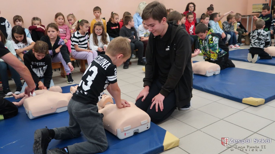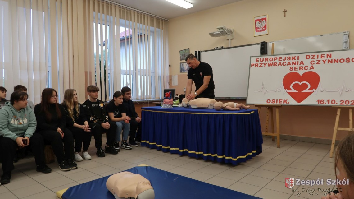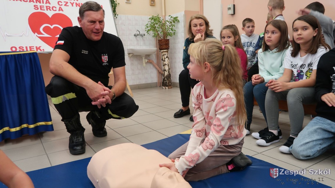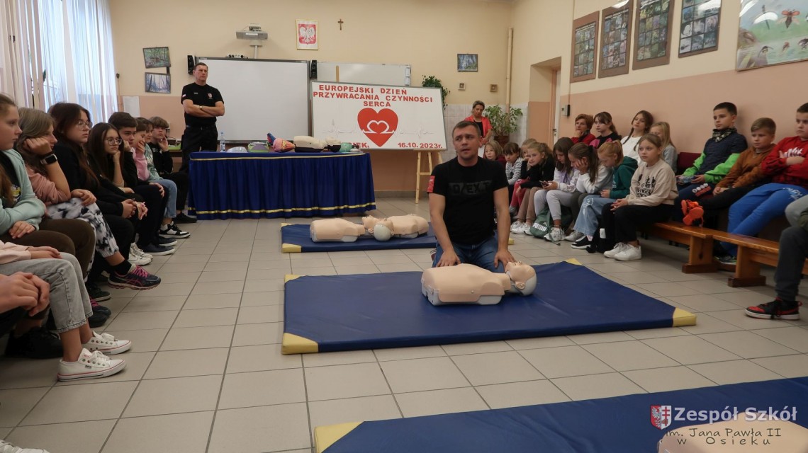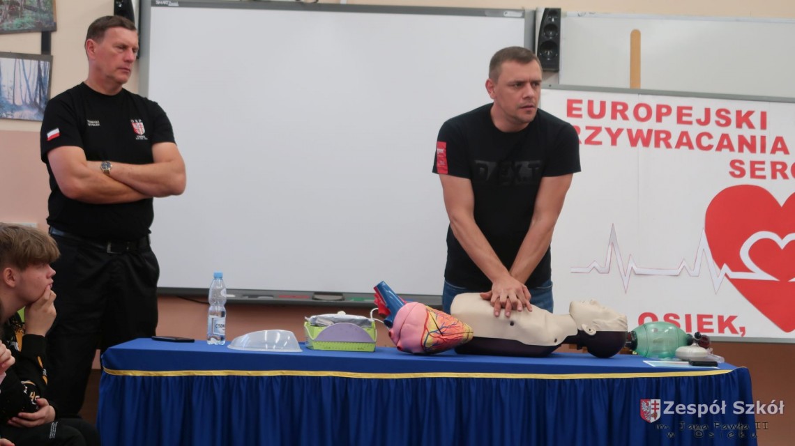 Warsztaty były prowadzone przez przedstawiciela Ochotniczej Straży Pożarnej w Osieku, pana Tomasza Mysłka oraz ratownika medycznego, pana Tomasza Marca, którzy w niezwykle fachowy sposób zaprezentowali zasady RKO.