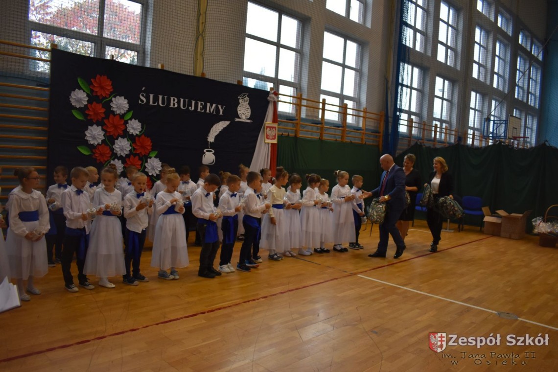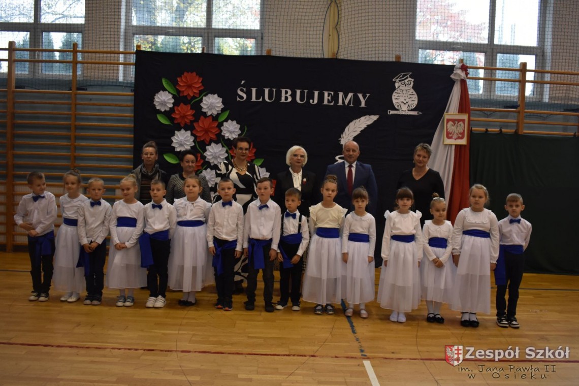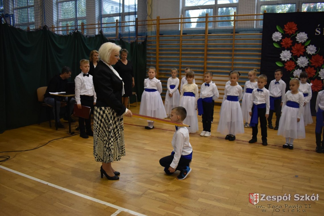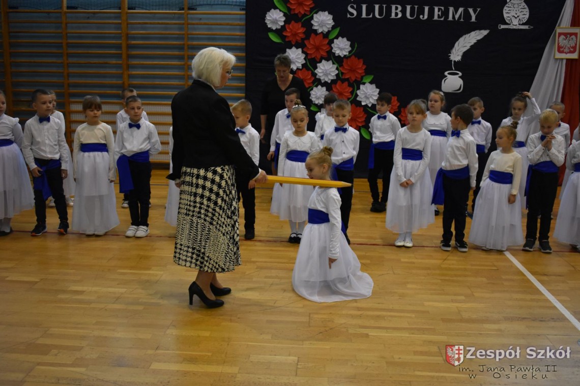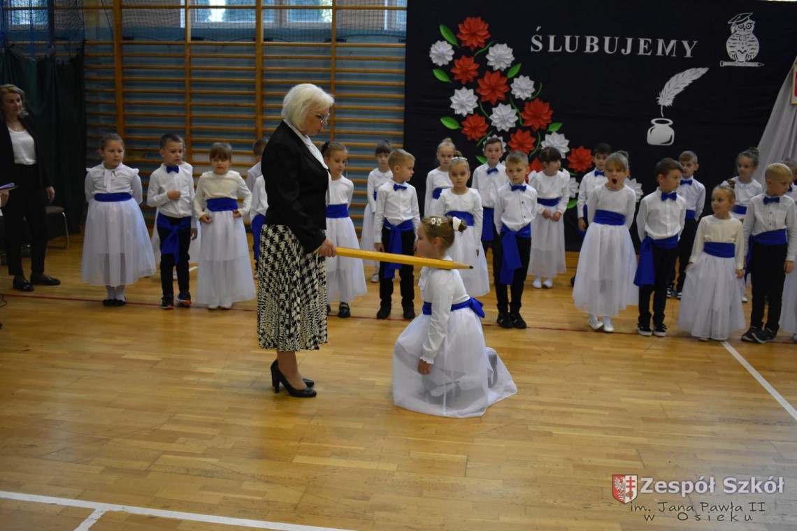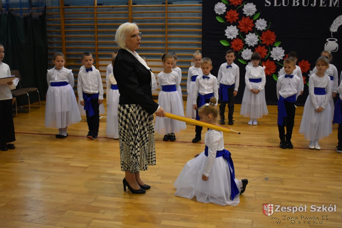 Trzeba przyznać, że dla wszystkich pierwszaków ślubowanie i pasowanie na ucznia to wyjątkowo podniosła chwila. W uroczystości tej w dniu 25.10.2023 r. wzięli udział: pierwszoklasiści, Dyrektor Małgorzata Kunowska, Wicedyrektor Ewelina Świątkiewicz-Maj, Wicedyrektor Lucyna Wiraszka, przedstawiciele Rady Rodziców, zaproszeni goście min. burmistrz Miasta i Gminy w Osieku Rafał Łysiak oraz licznie zgromadzeni rodzice.