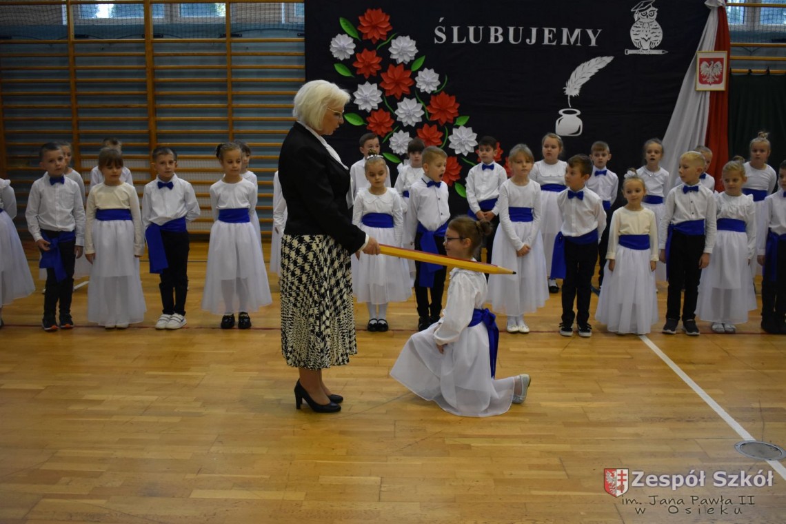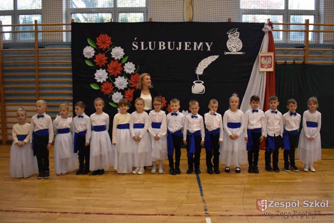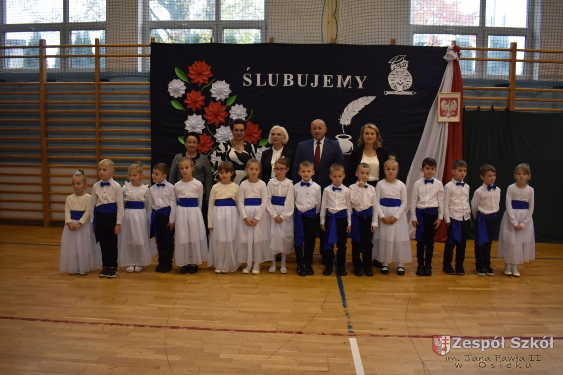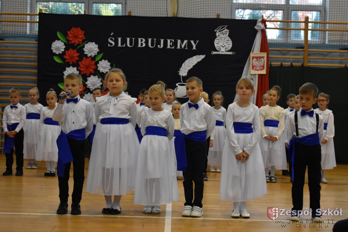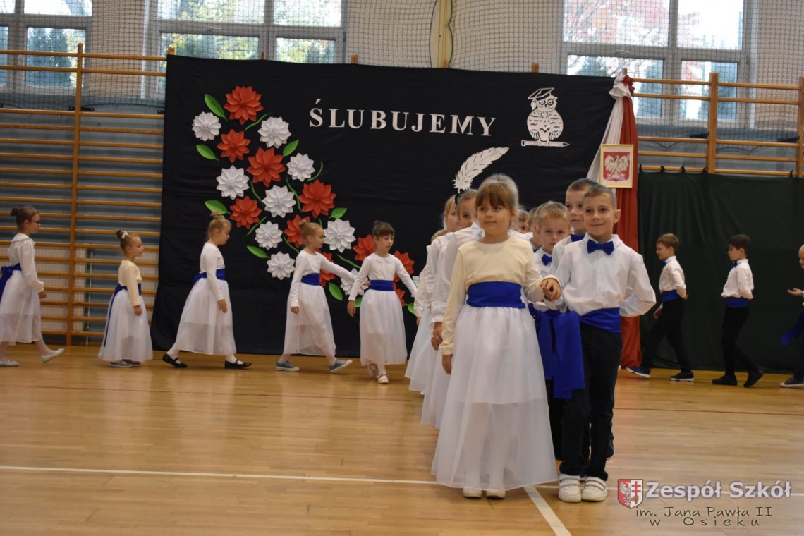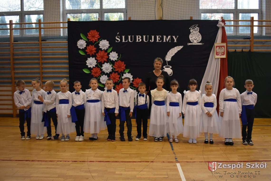 Trzeba przyznać, że dla wszystkich pierwszaków ślubowanie i pasowanie na ucznia to wyjątkowo podniosła chwila. W uroczystości tej w dniu 25.10.2023 r. wzięli udział: pierwszoklasiści, Dyrektor Małgorzata Kunowska, Wicedyrektor Ewelina Świątkiewicz-Maj, Wicedyrektor Lucyna Wiraszka, przedstawiciele Rady Rodziców, zaproszeni goście min. burmistrz Miasta i Gminy w Osieku Rafał Łysiak oraz licznie zgromadzeni rodzice.