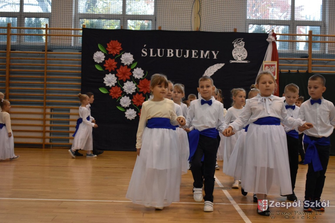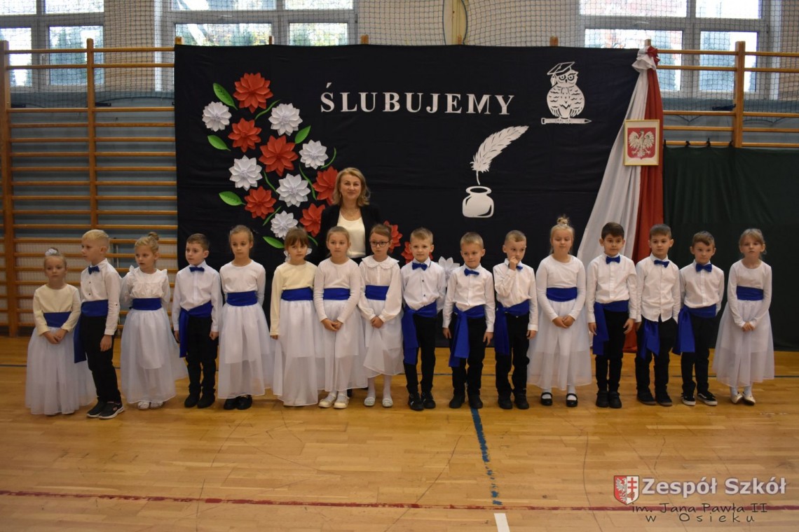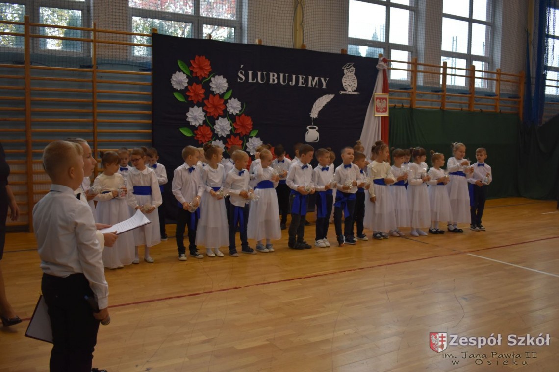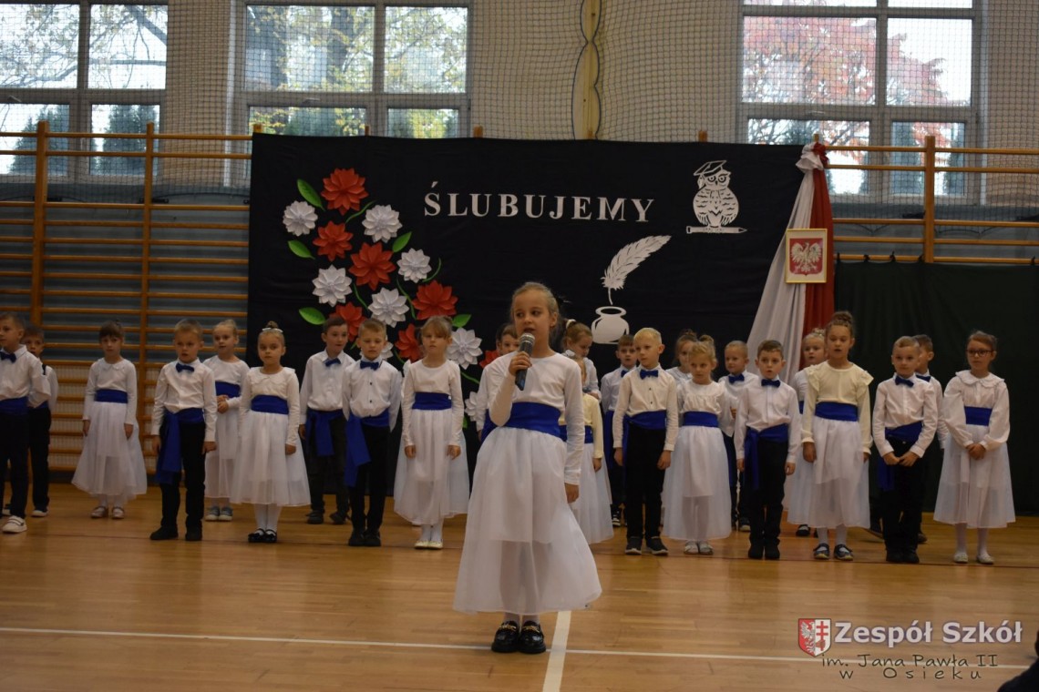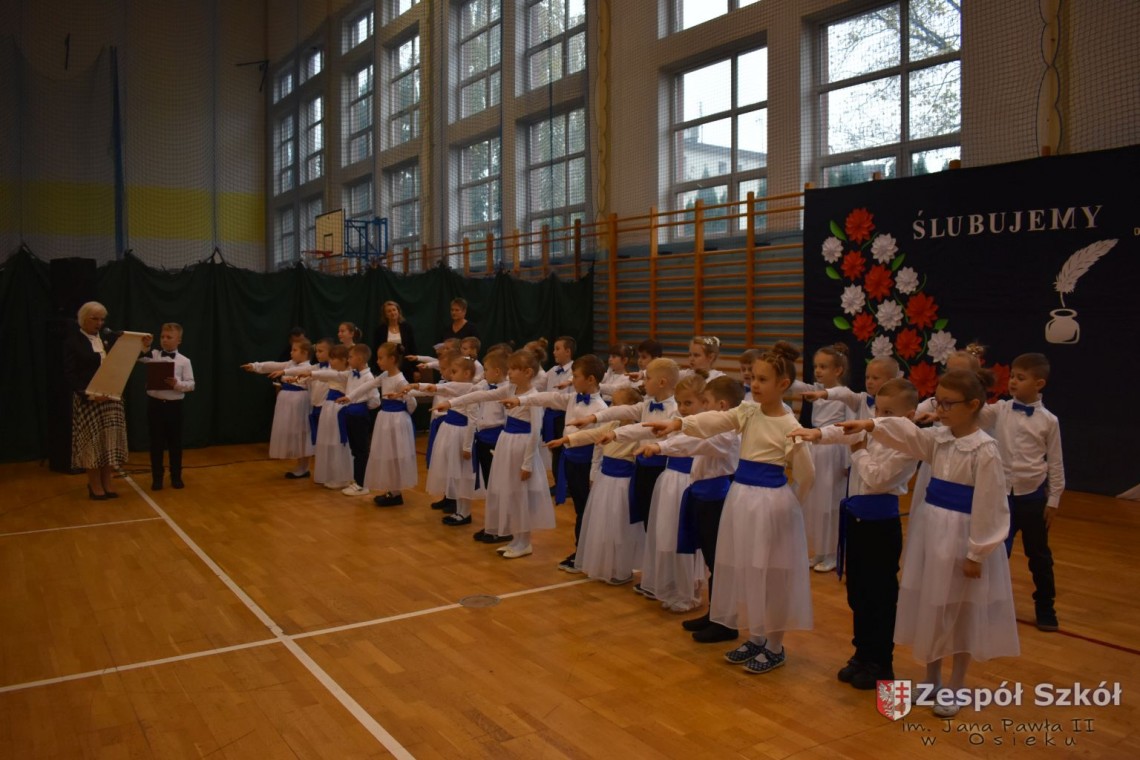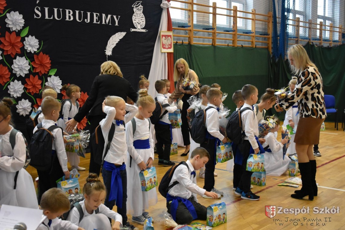 Trzeba przyznać, że dla wszystkich pierwszaków ślubowanie i pasowanie na ucznia to wyjątkowo podniosła chwila. W uroczystości tej w dniu 25.10.2023 r. wzięli udział: pierwszoklasiści, Dyrektor Małgorzata Kunowska, Wicedyrektor Ewelina Świątkiewicz-Maj, Wicedyrektor Lucyna Wiraszka, przedstawiciele Rady Rodziców, zaproszeni goście min. burmistrz Miasta i Gminy w Osieku Rafał Łysiak oraz licznie zgromadzeni rodzice.