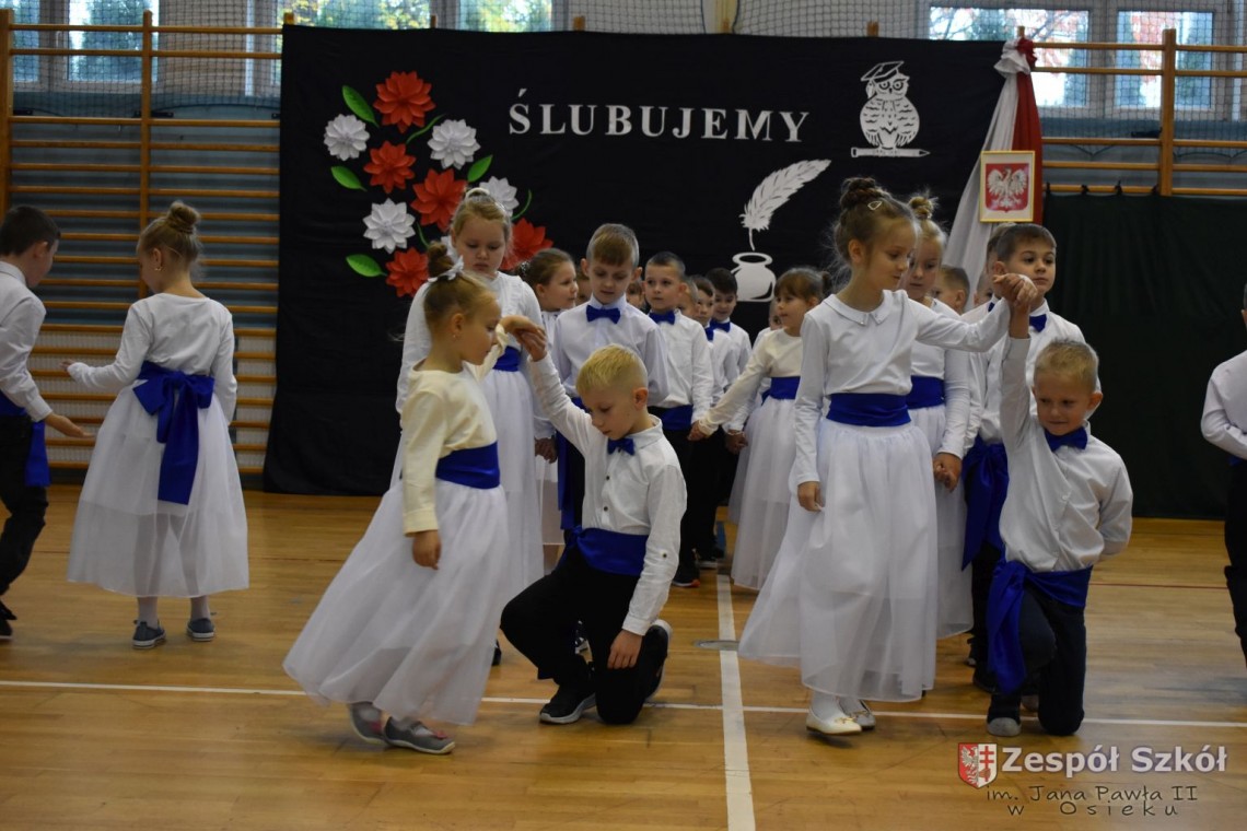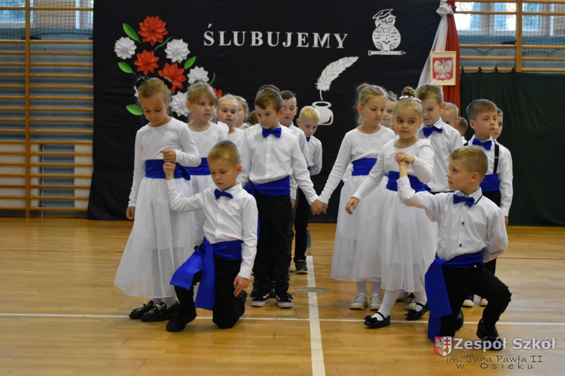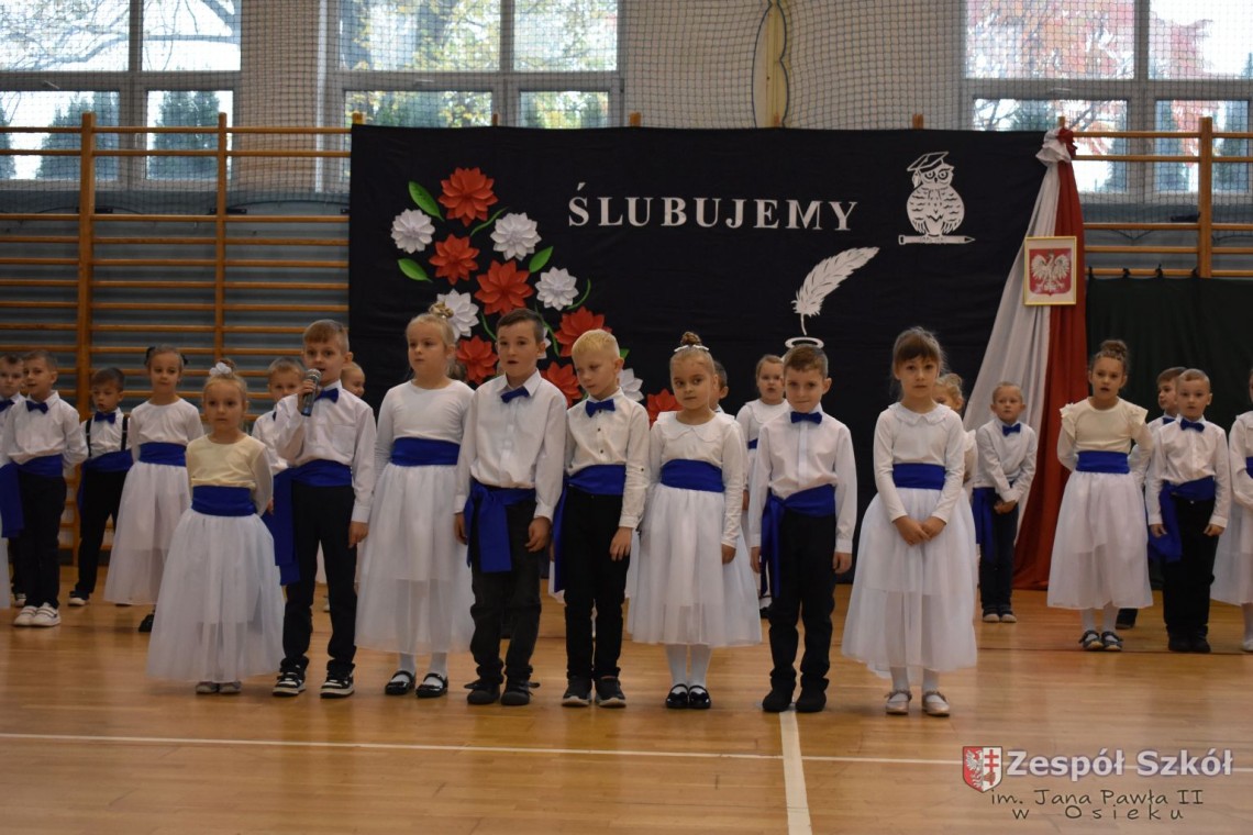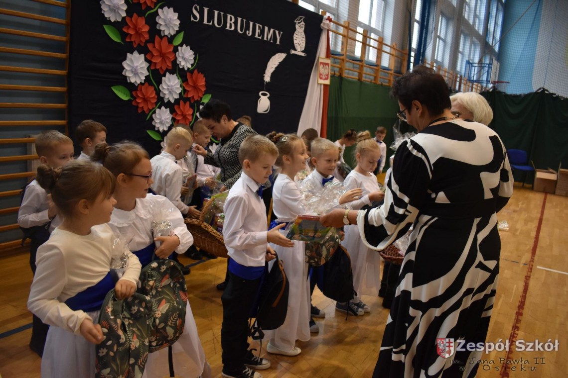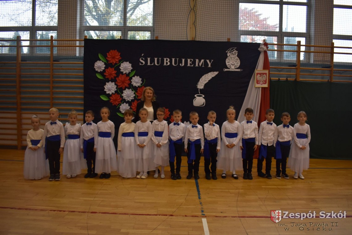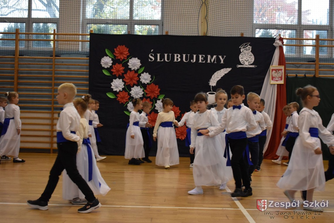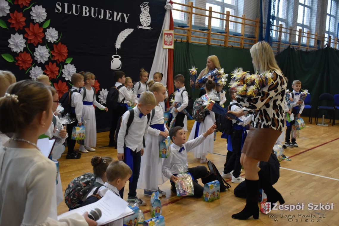 Trzeba przyznać, że dla wszystkich pierwszaków ślubowanie i pasowanie na ucznia to wyjątkowo podniosła chwila. W uroczystości tej w dniu 25.10.2023 r. wzięli udział: pierwszoklasiści, Dyrektor Małgorzata Kunowska, Wicedyrektor Ewelina Świątkiewicz-Maj, Wicedyrektor Lucyna Wiraszka, przedstawiciele Rady Rodziców, zaproszeni goście min. burmistrz Miasta i Gminy w Osieku Rafał Łysiak oraz licznie zgromadzeni rodzice.
