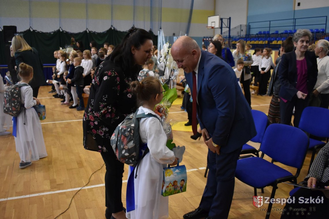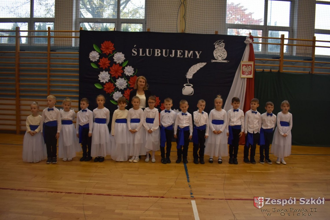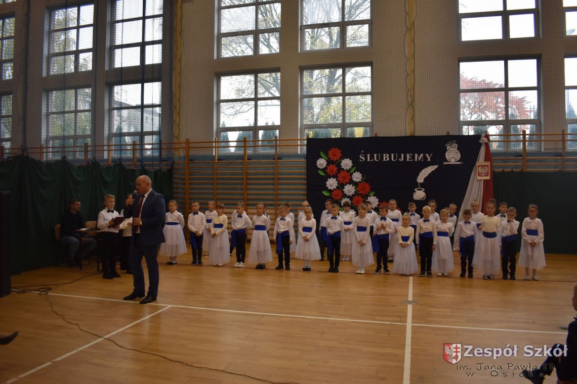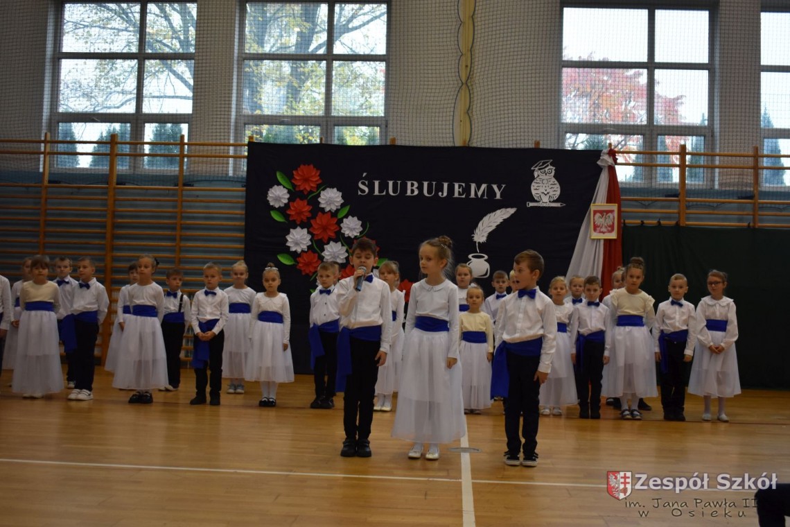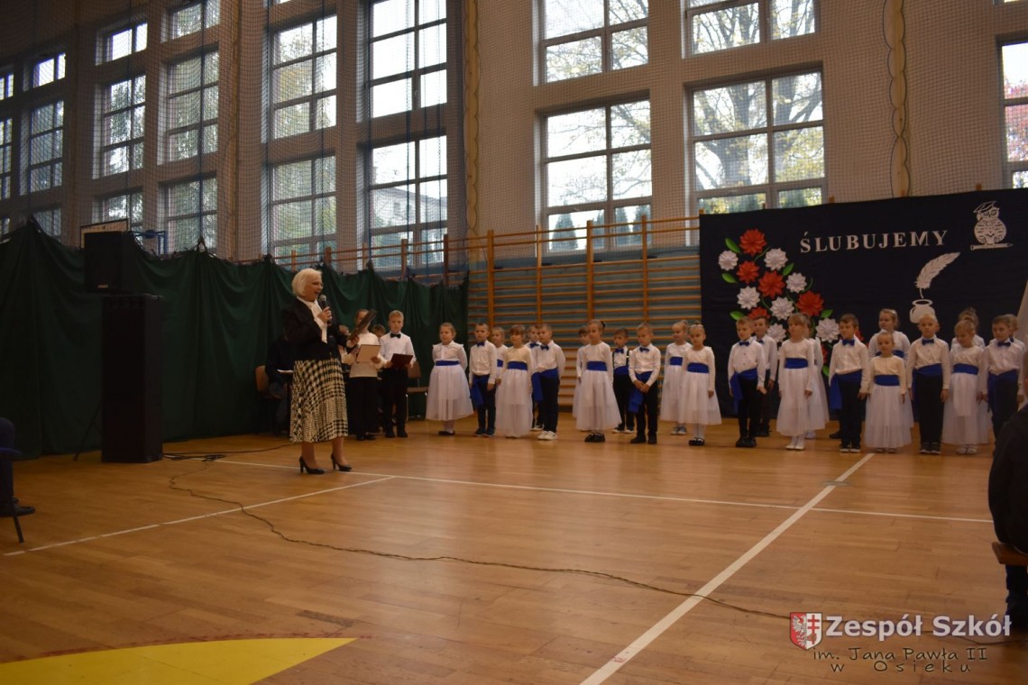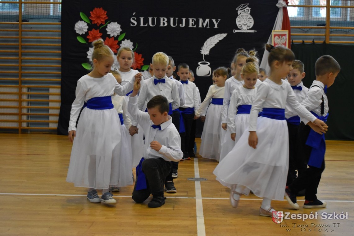 Trzeba przyznać, że dla wszystkich pierwszaków ślubowanie i pasowanie na ucznia to wyjątkowo podniosła chwila. W uroczystości tej w dniu 25.10.2023 r. wzięli udział: pierwszoklasiści, Dyrektor Małgorzata Kunowska, Wicedyrektor Ewelina Świątkiewicz-Maj, Wicedyrektor Lucyna Wiraszka, przedstawiciele Rady Rodziców, zaproszeni goście min. burmistrz Miasta i Gminy w Osieku Rafał Łysiak oraz licznie zgromadzeni rodzice.