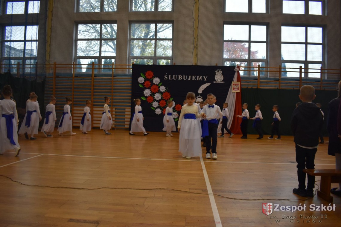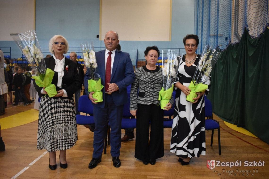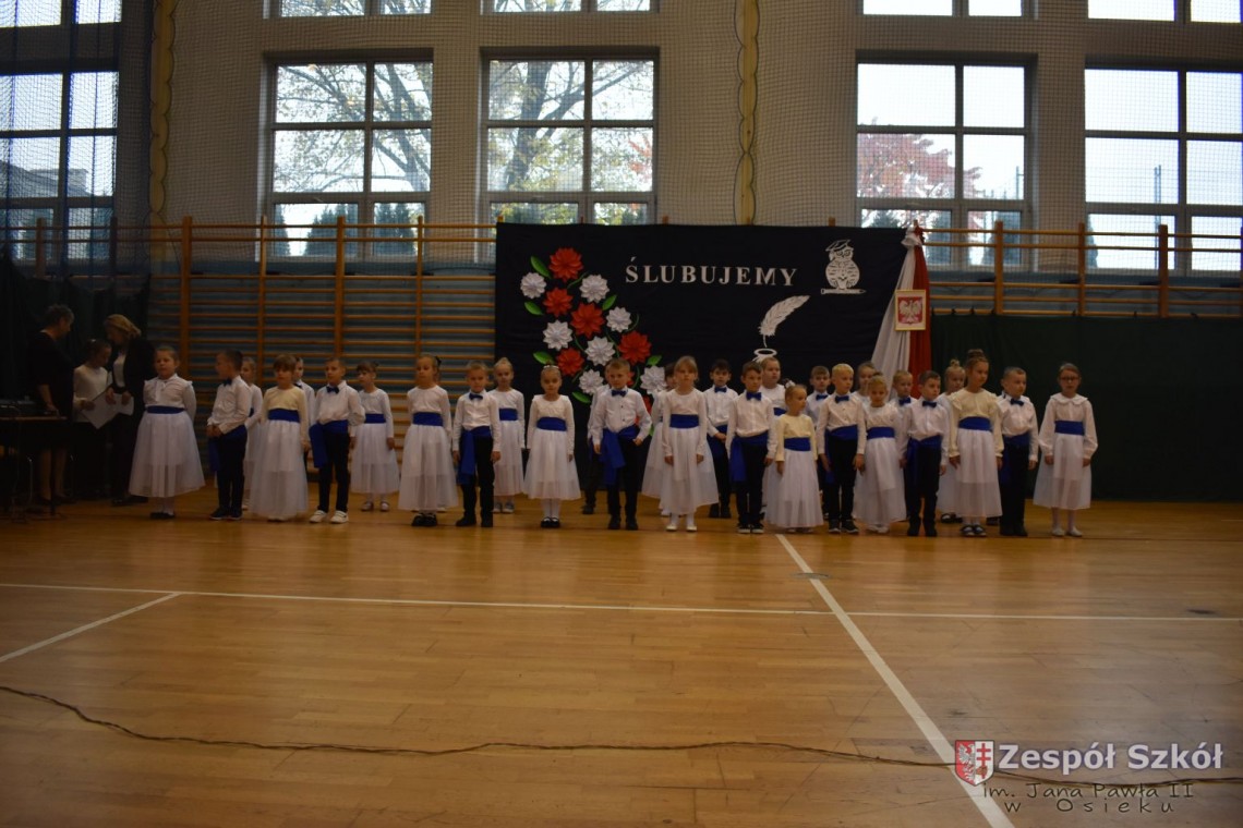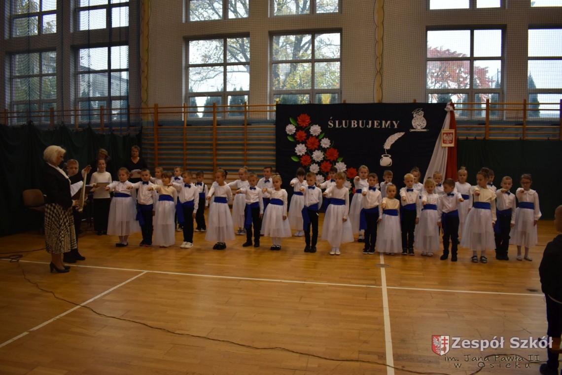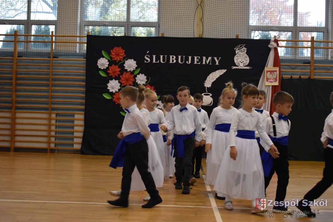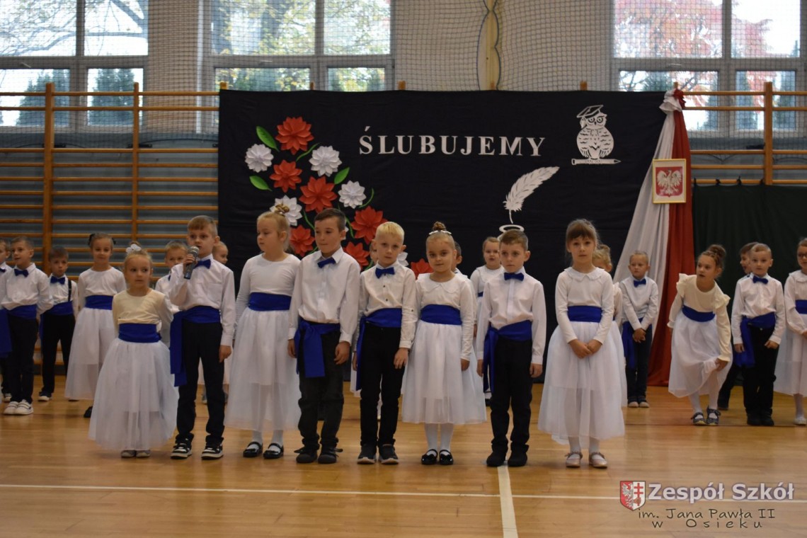 Trzeba przyznać, że dla wszystkich pierwszaków ślubowanie i pasowanie na ucznia to wyjątkowo podniosła chwila. W uroczystości tej w dniu 25.10.2023 r. wzięli udział: pierwszoklasiści, Dyrektor Małgorzata Kunowska, Wicedyrektor Ewelina Świątkiewicz-Maj, Wicedyrektor Lucyna Wiraszka, przedstawiciele Rady Rodziców, zaproszeni goście min. burmistrz Miasta i Gminy w Osieku Rafał Łysiak oraz licznie zgromadzeni rodzice.