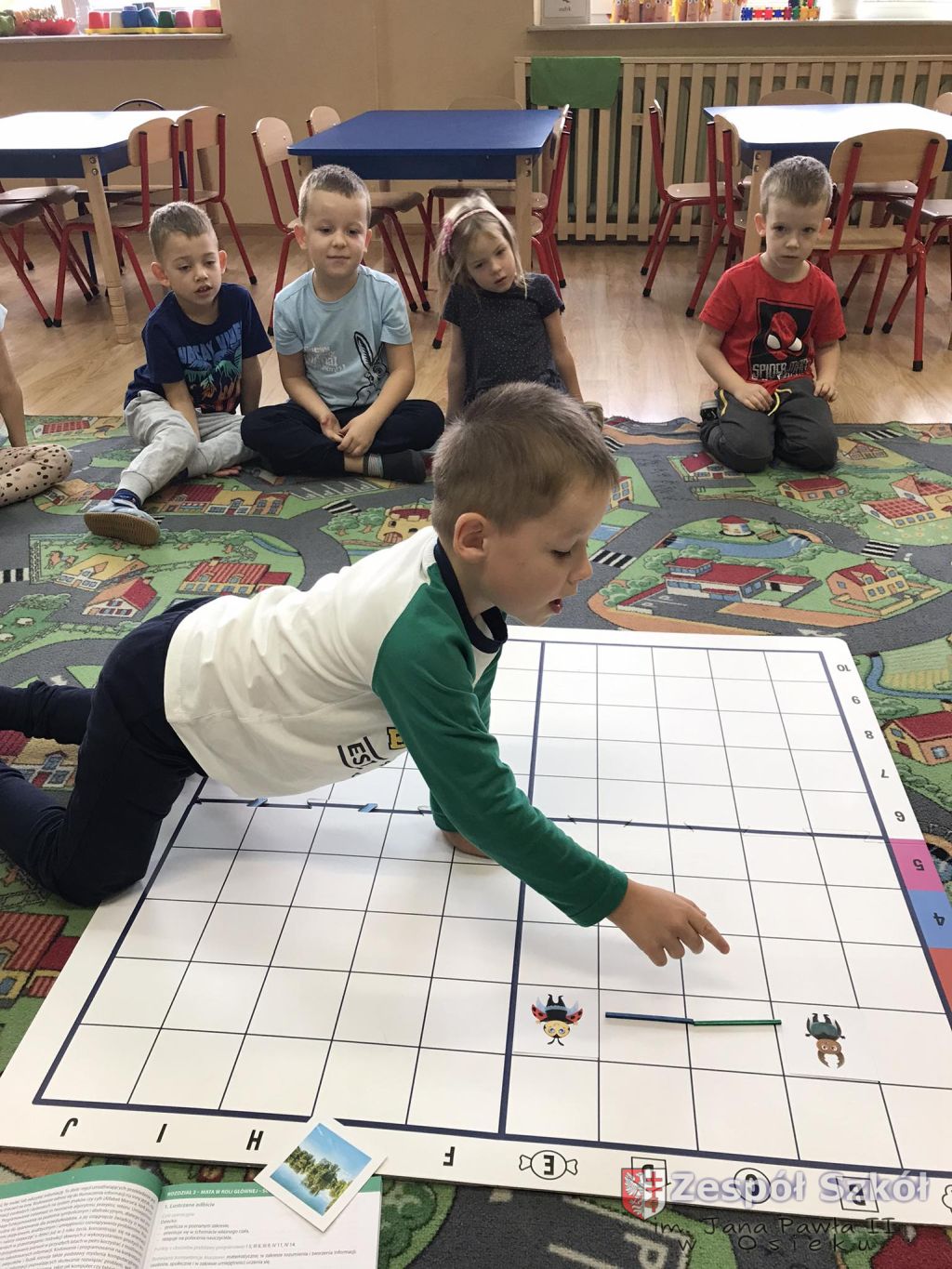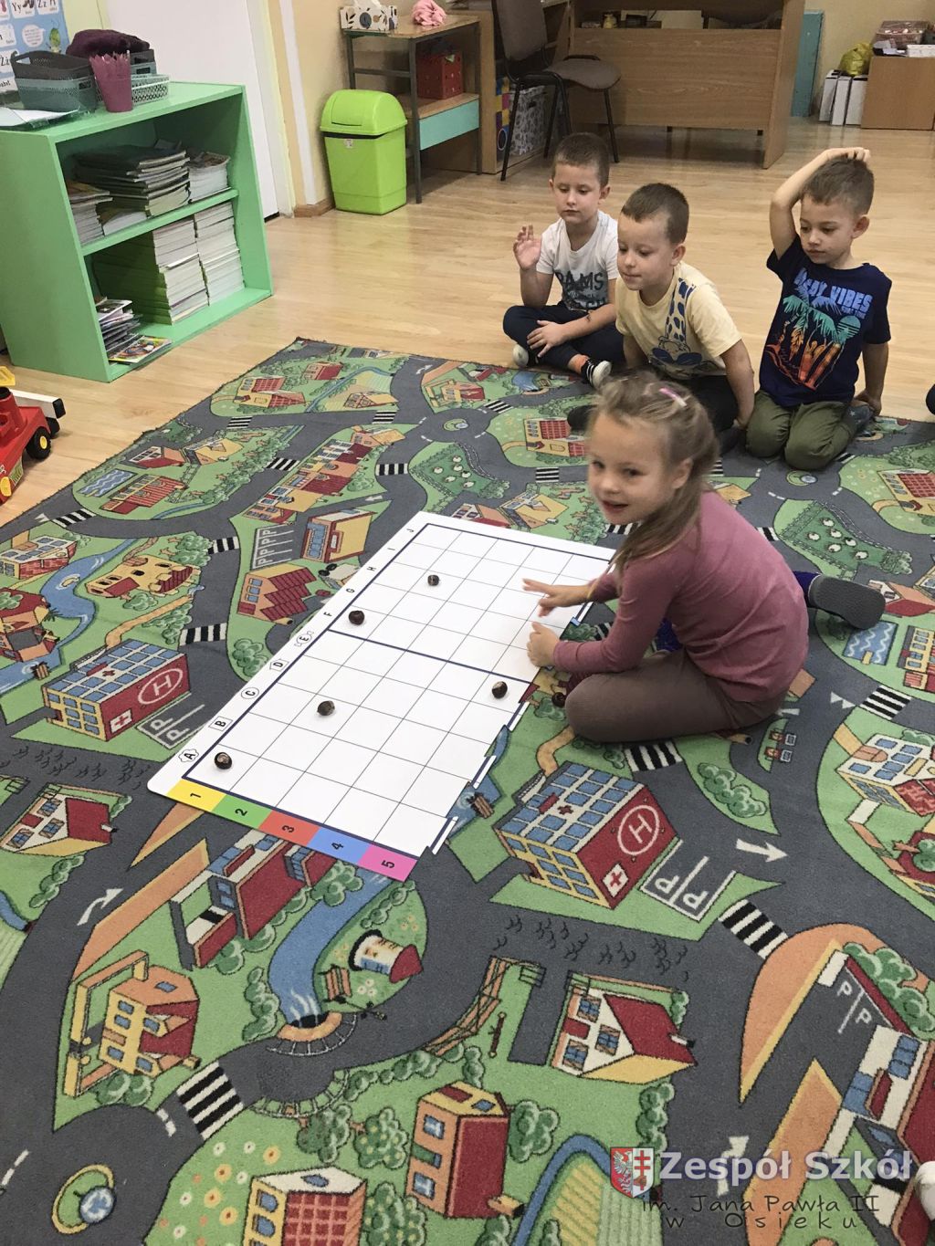W tygodniu kodowania, wzięła udział grupa 5- latki SMERFY -pod hasłem ,,KODOWANIE NA DYWANIE”