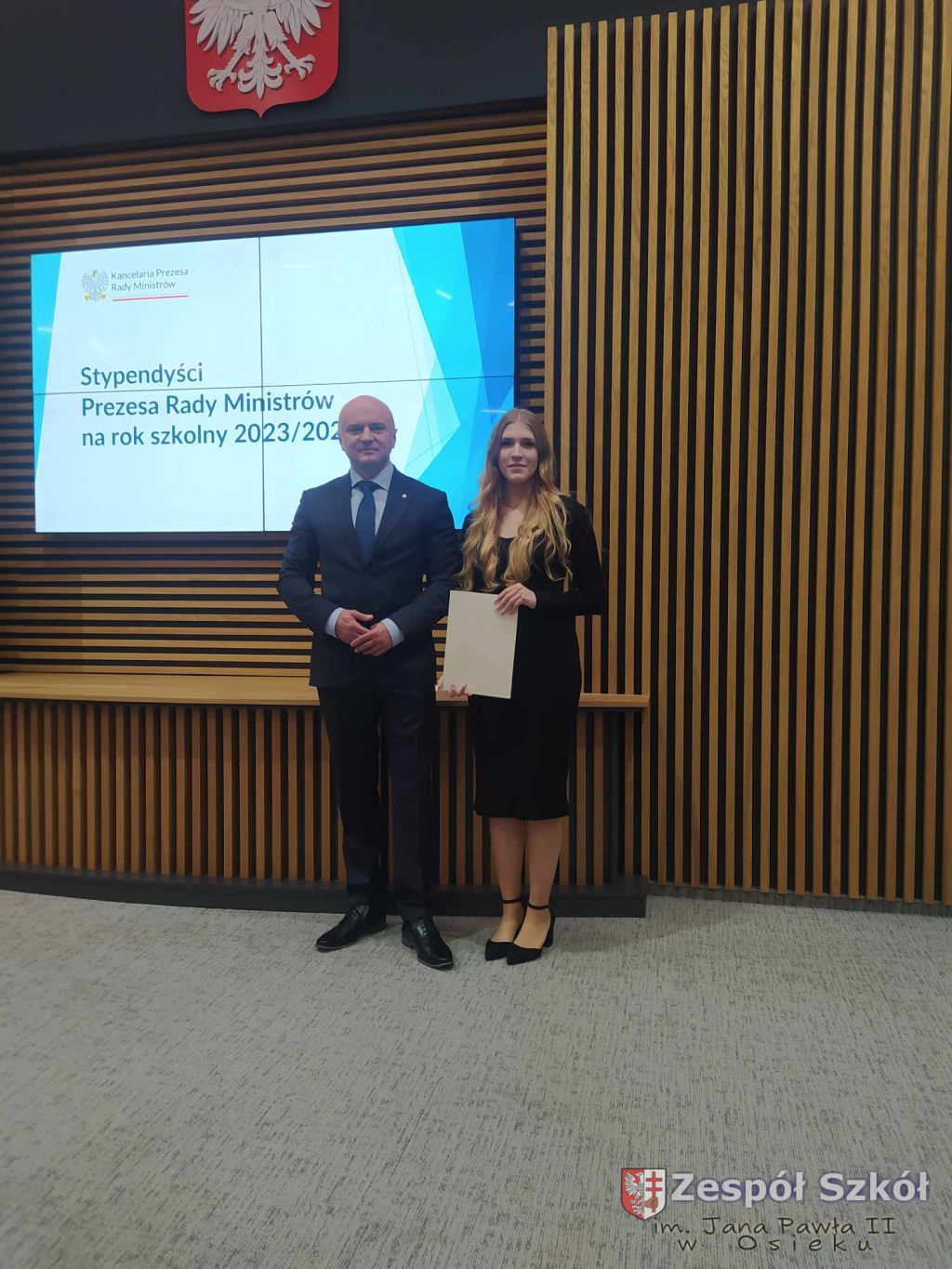 Uczennica Liceum Ogólnokształcącego w Osieku stypendystką Prezesa Rady Ministrów