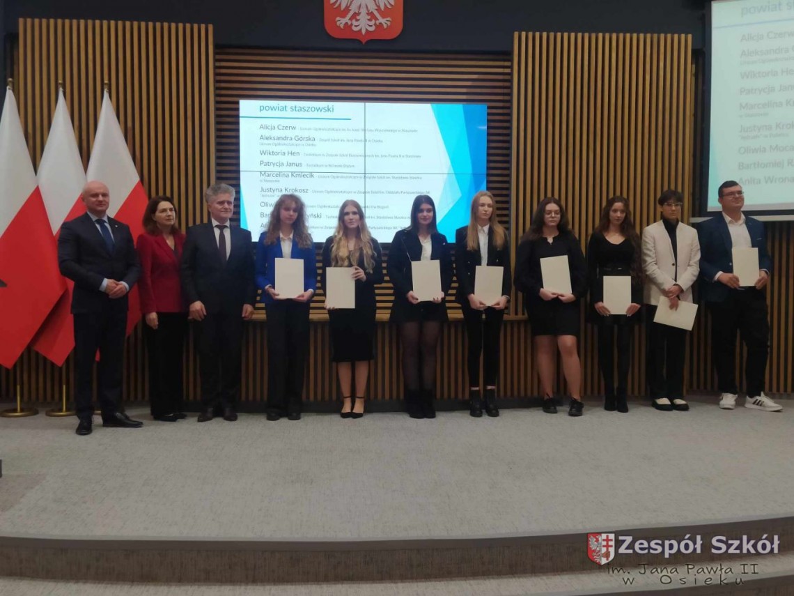 W zaszczytnym gronie 9 wyróżnionych stypendystów z powiatu staszowskiego znajduje się uczennica II klasy Liceum Ogólnokształcącego w Osieku – Aleksandra Górska, która w roku szkolnym 2022/2023 uzyskała najwyższą średnią ocen w szkole oraz świadectwo promocyjne z wyróżnieniem.