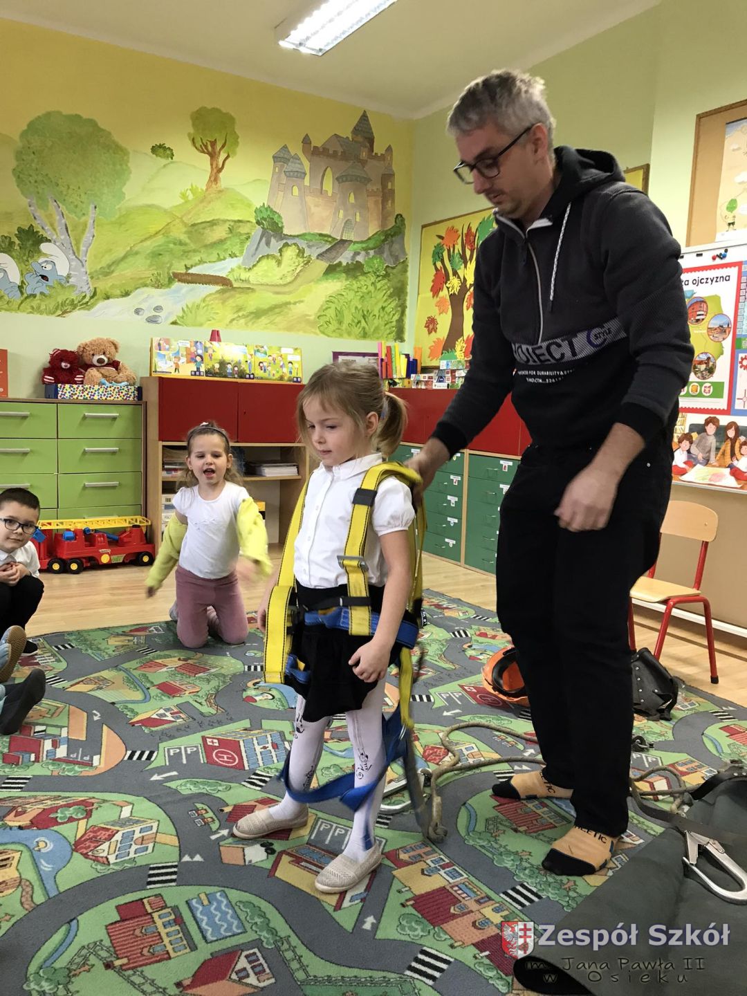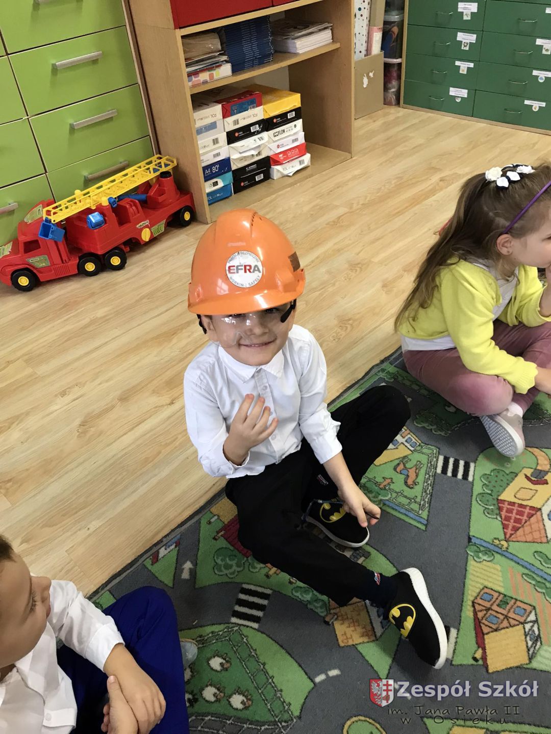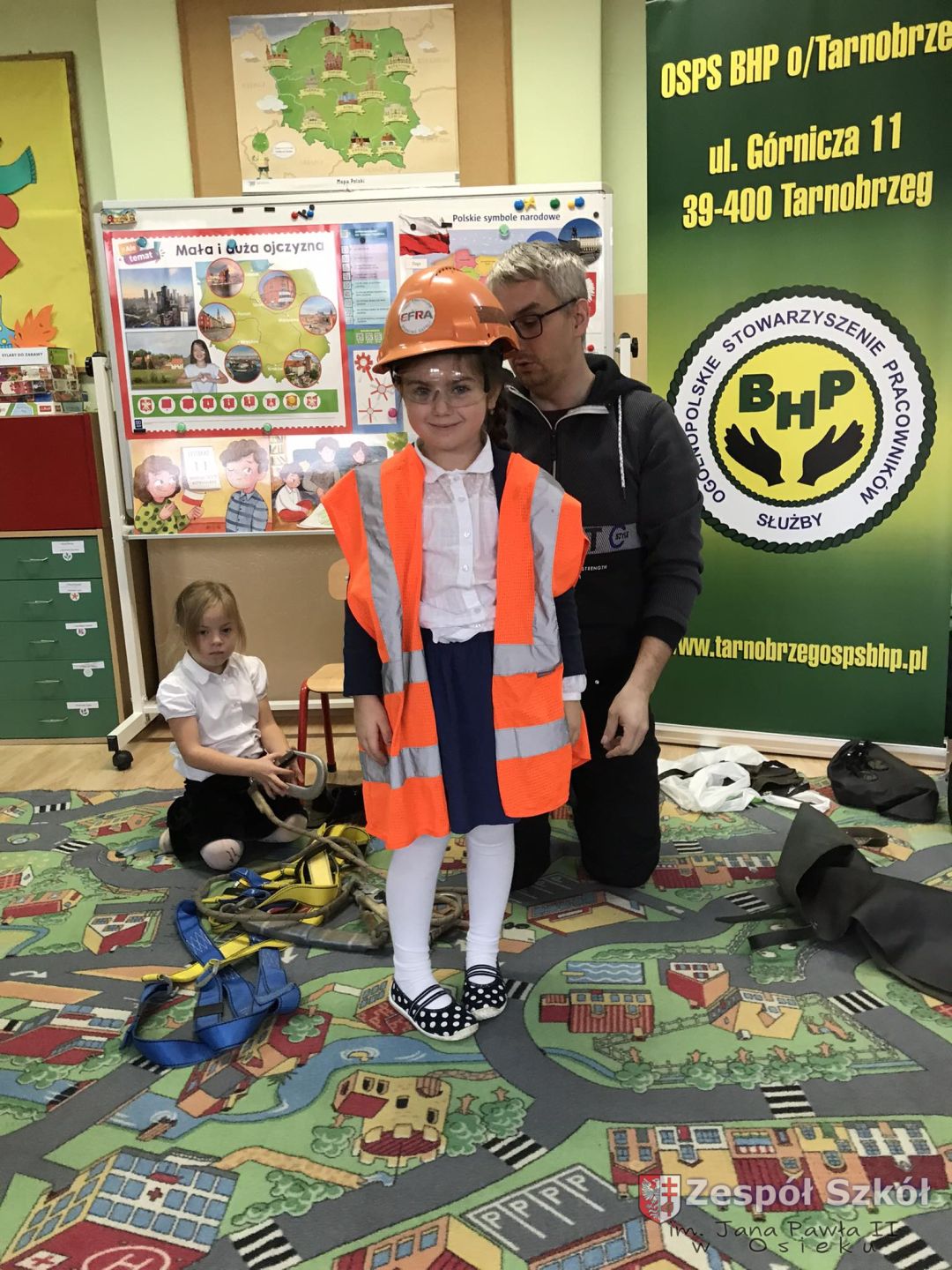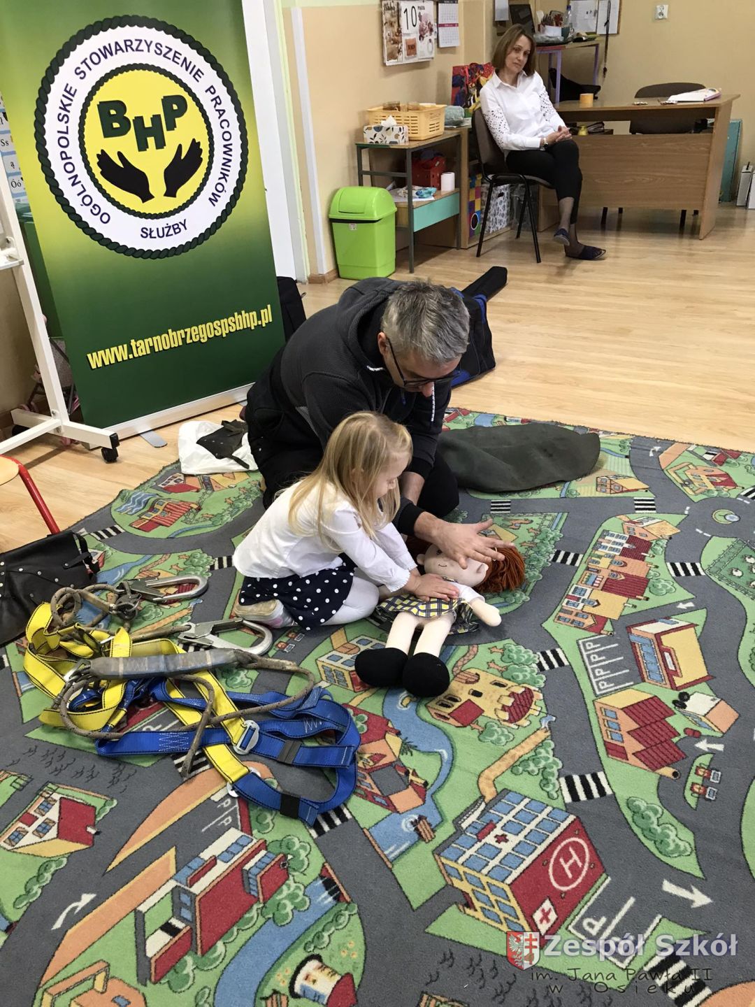 Gość opowiedział o bezpieczeństwie podczas wykonywania różnego typu prac, zaprezentował specjalne ubrania ochronne, które dzieci mogły przymierzyć. Przypomniał dzieciom numery alarmowe i pokazał kolejne etapy udzielania pierwszej pomocy.
