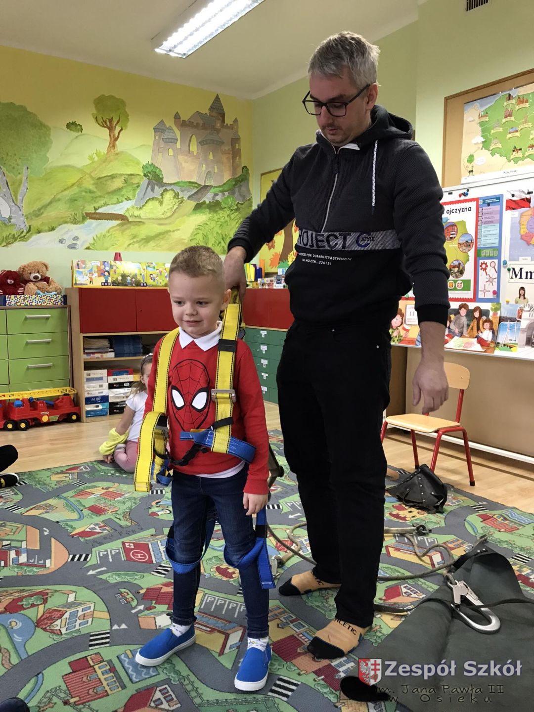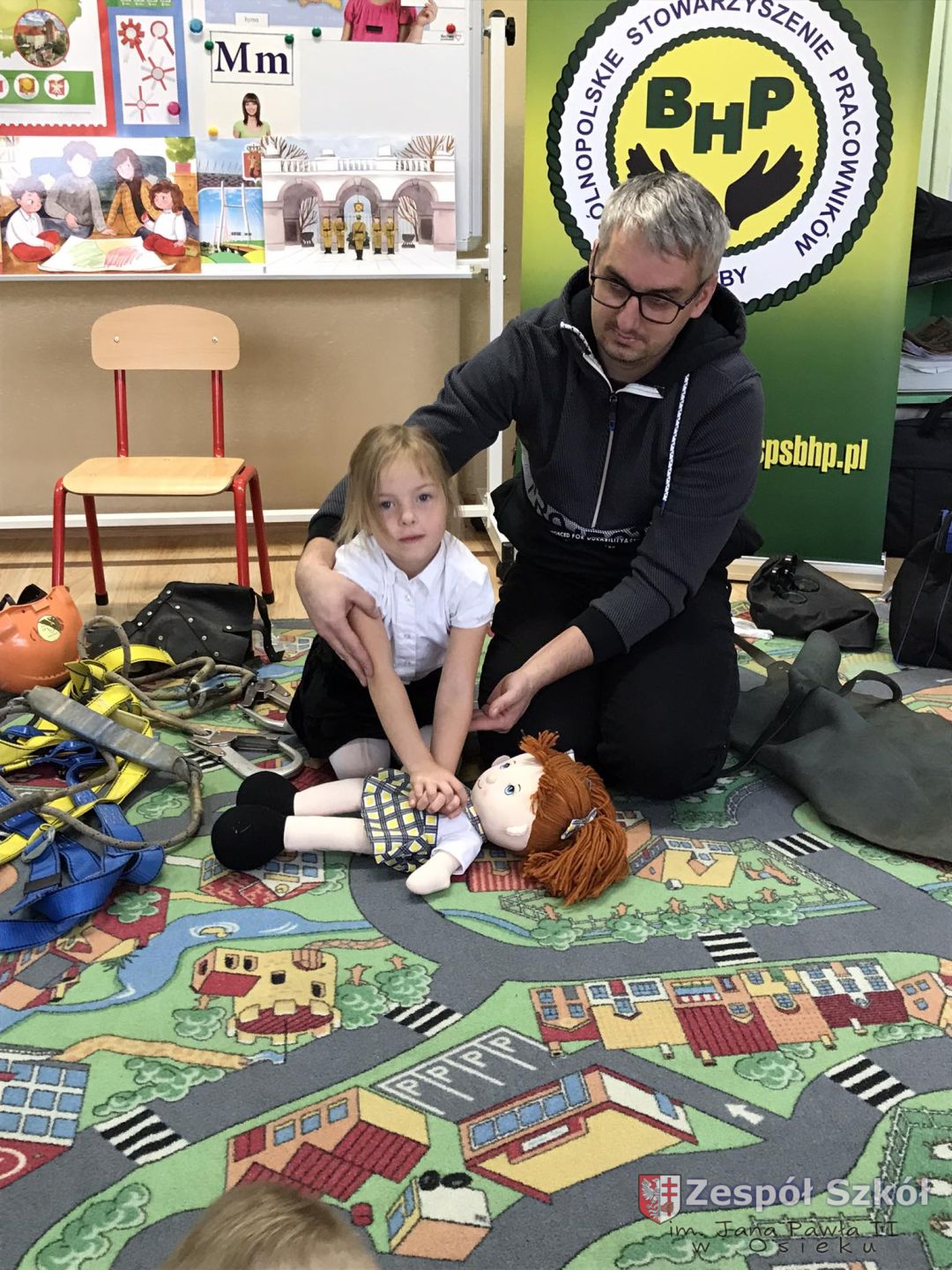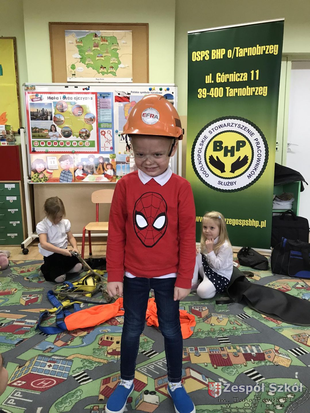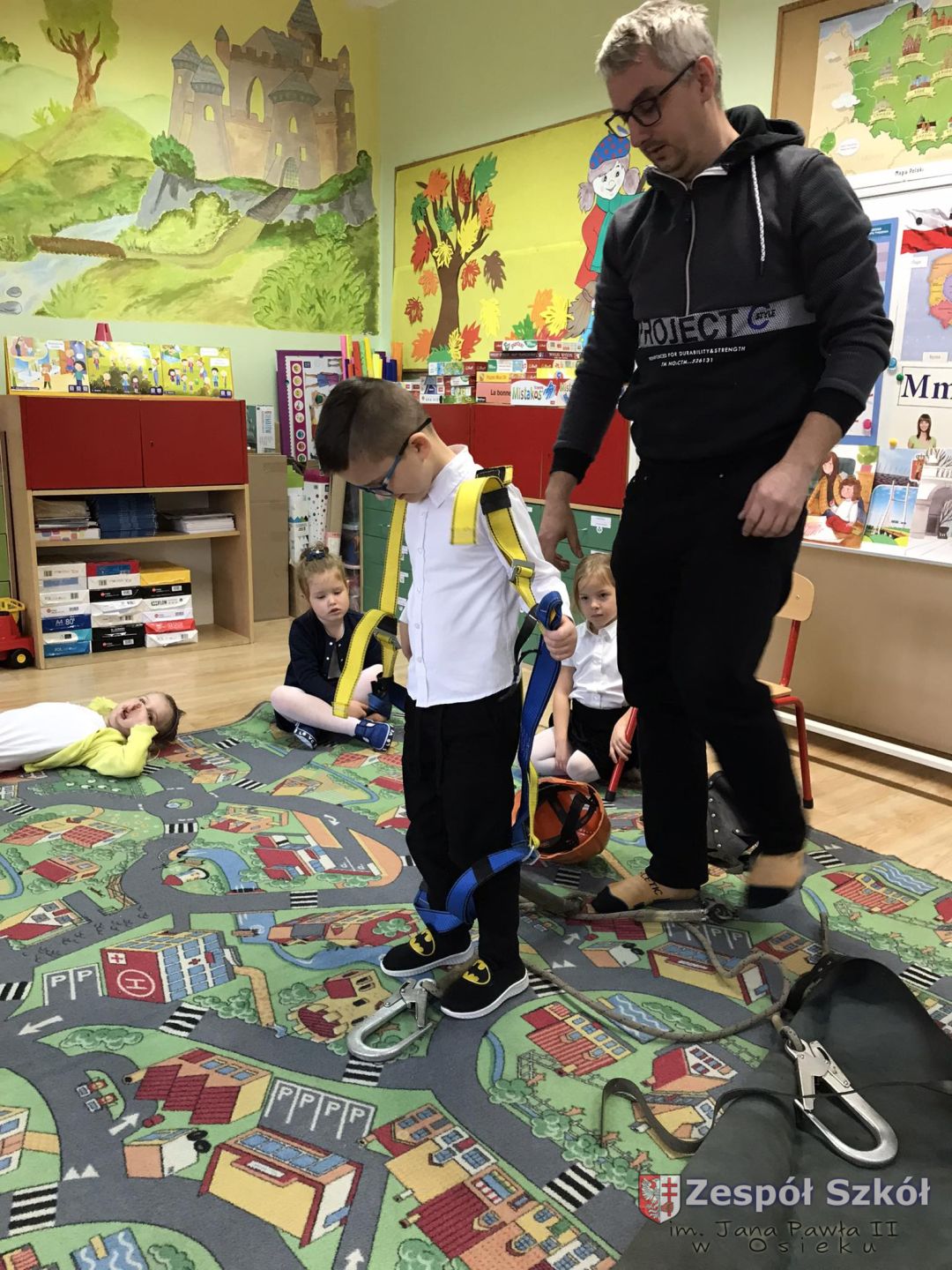 Gość opowiedział o bezpieczeństwie podczas wykonywania różnego typu prac, zaprezentował specjalne ubrania ochronne, które dzieci mogły przymierzyć. Przypomniał dzieciom numery alarmowe i pokazał kolejne etapy udzielania pierwszej pomocy.