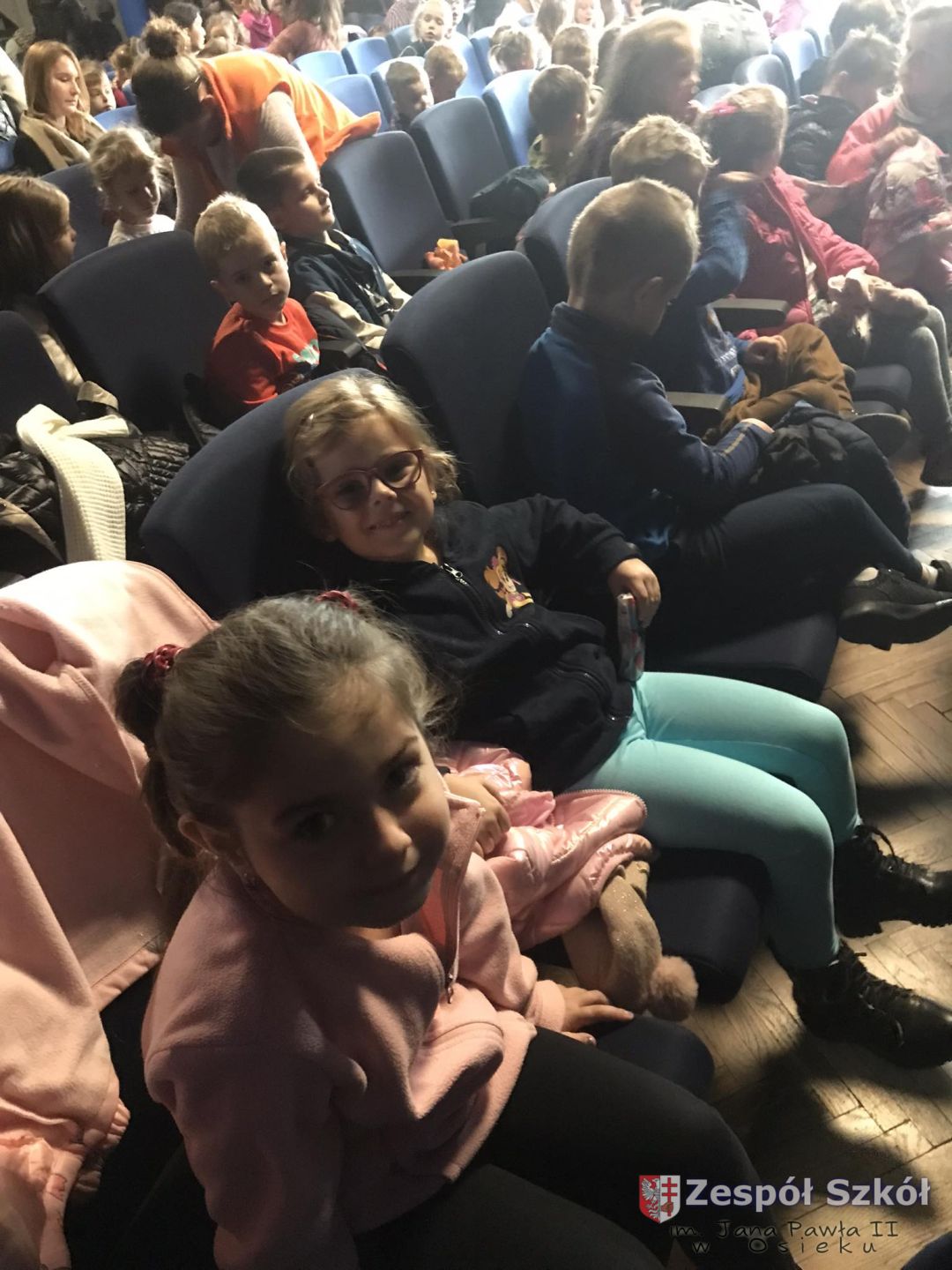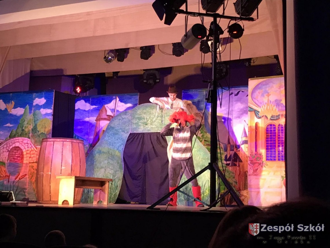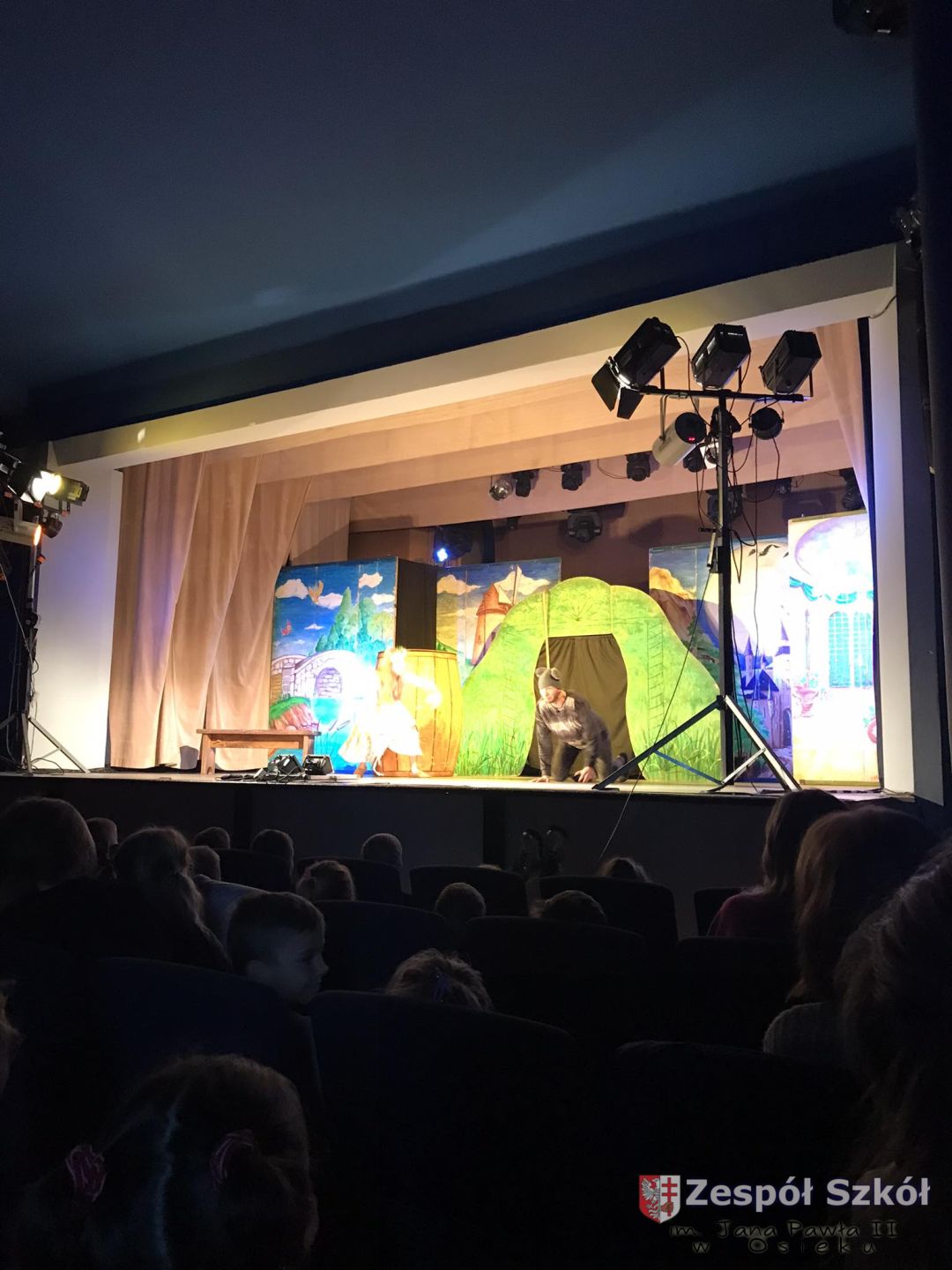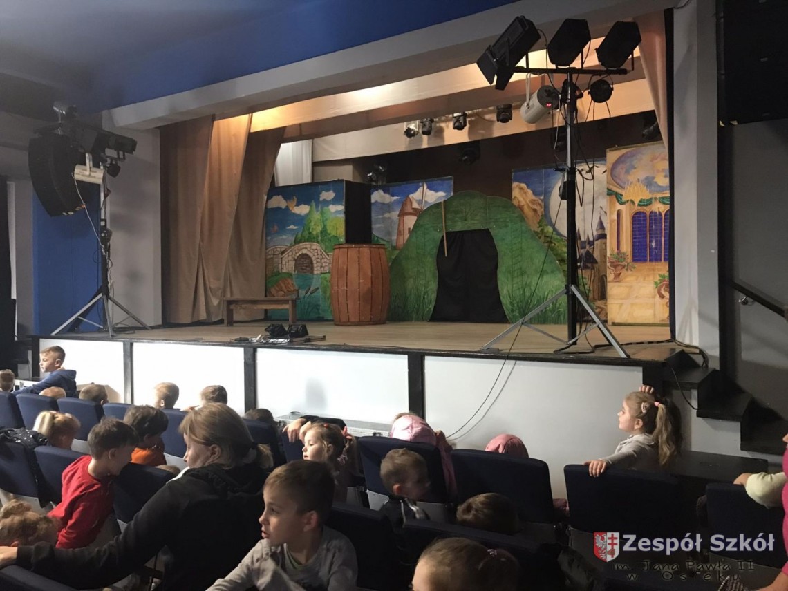 W dniu 08.11.2023 r. dzieci z grup przedszkolnych 4,5,6- latki udały się do Staszowa do SOK- u na przedstawienie teatralne pt. ,,Kot w Butach” w wykonaniu Katolickiego Teatru Edukacji z Krakowa.