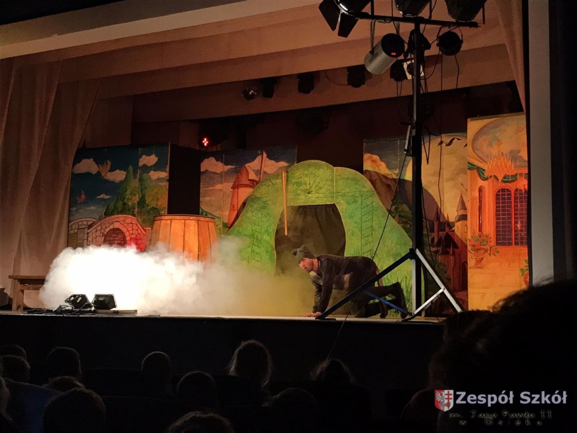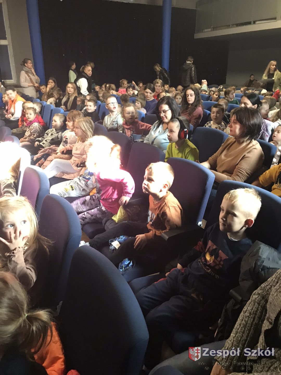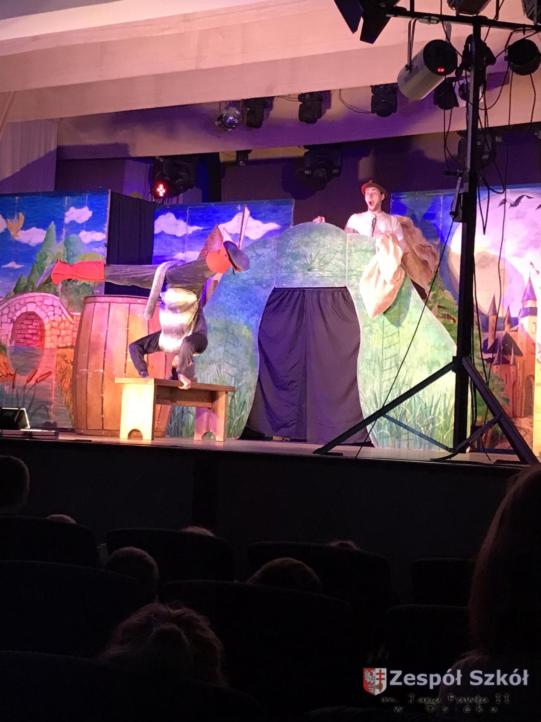 W dniu 08.11.2023 r. dzieci z grup przedszkolnych 4,5,6- latki udały się do Staszowa do SOK- u na przedstawienie teatralne pt. ,,Kot w Butach” w wykonaniu Katolickiego Teatru Edukacji z Krakowa.