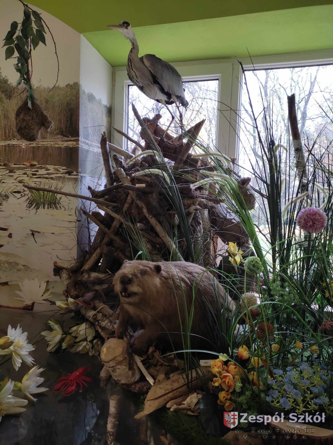 • przestrzenną dioramę obrazującą przekrój siedlisk Tarnobrzeskiej Doliny Wisły z preparowanymi zwierzętami i modelami roślin,