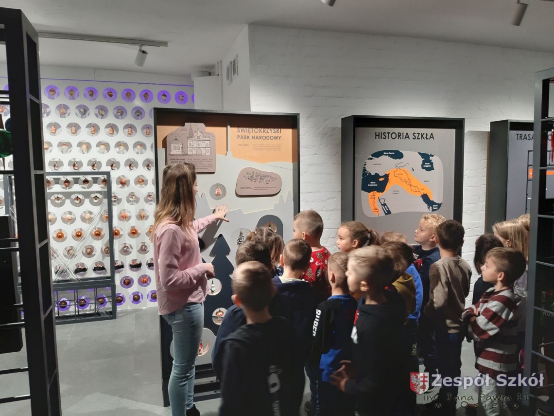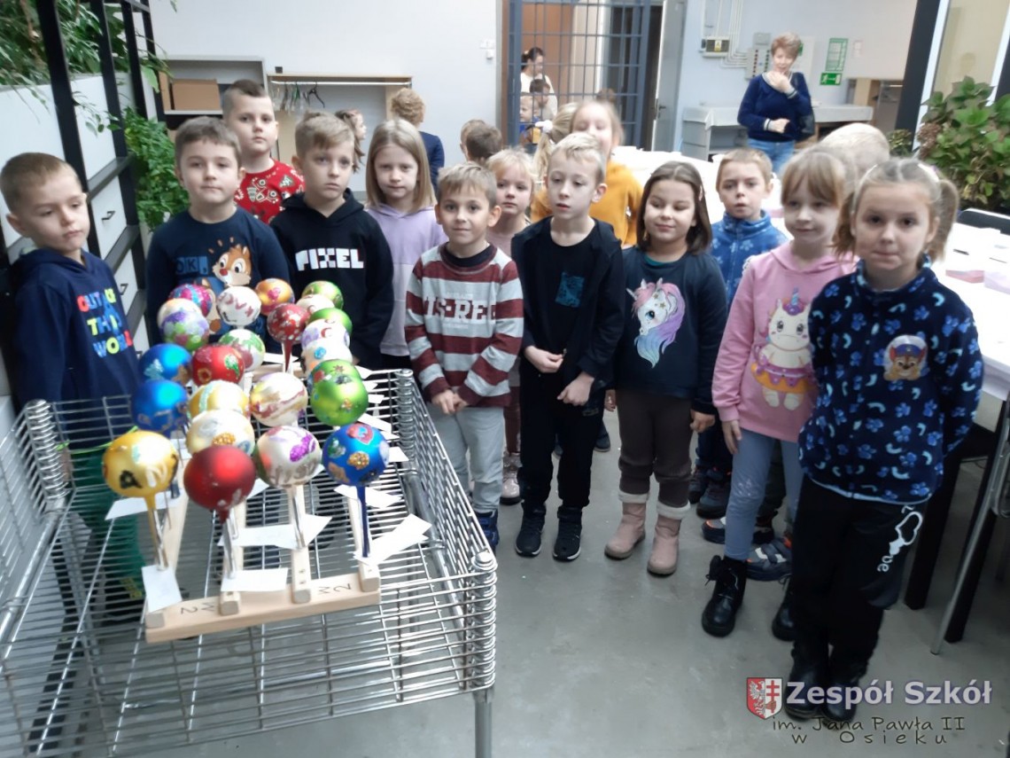 w Staszowie. Dzieci oglądały kolejno etapy powstawiania niepowtarzalnych bombek znanych na całym świecie. Obserwowały produkcję, jak wypala się bombki o różnych kształtach. Jak szklane ozdoby trafiały do gorącej wody,