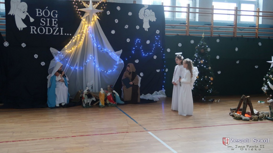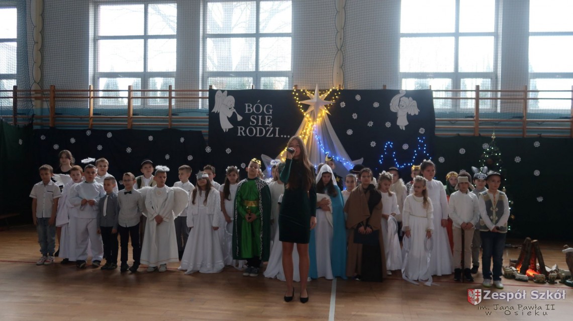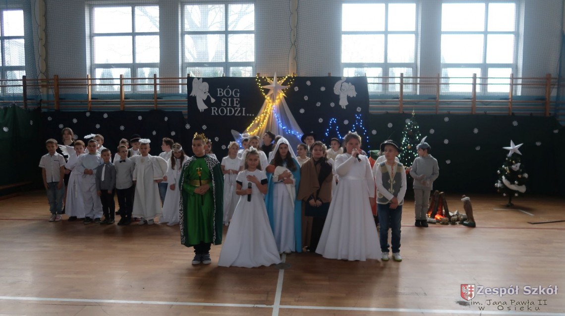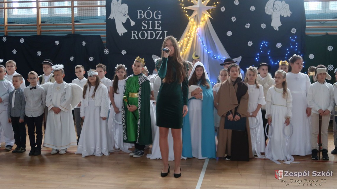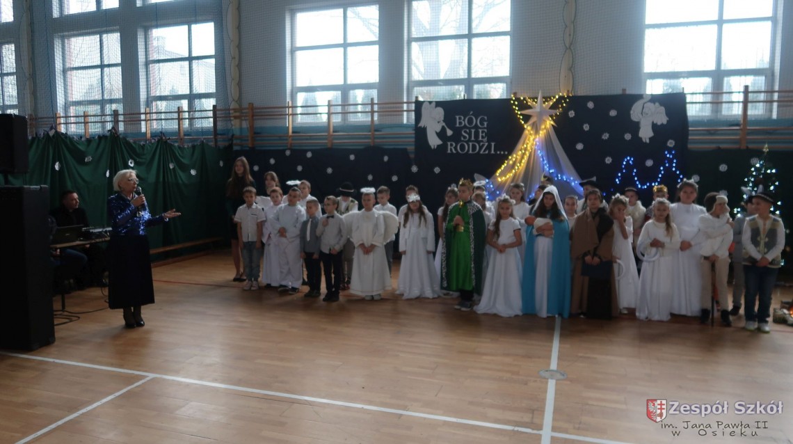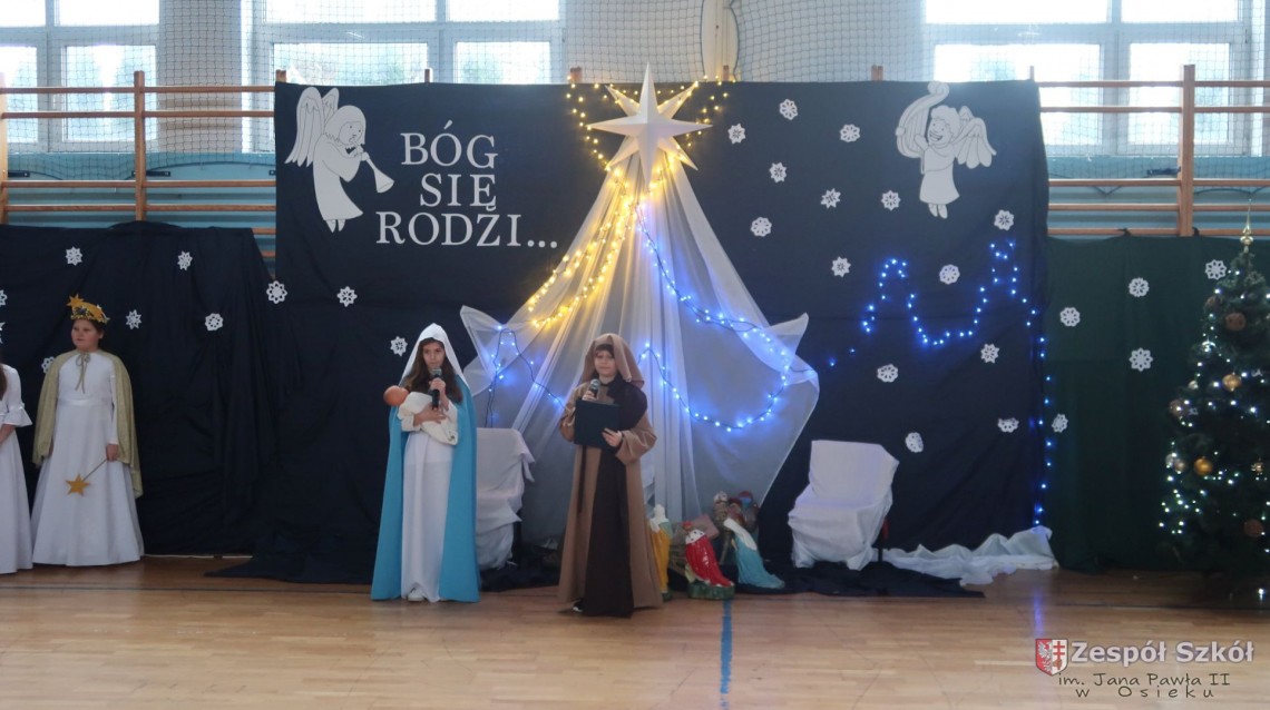 Boże Narodzenie 2023 już za kilka dni. Tegoroczne jasełka pod hasłem " Bóg się rodzi ..." w Publicznej Szkole Podstawowej w Osieku wprowadziły w nastrój świąt i czas oczekiwania na narodzenie Jezusa. Pani dyrektor Małgorzata Kunowska przywitała przybyłych gości i zaprosiła na występ uczniów. Ciszę betlejemskiej nocy i radość narodzin rozpoczęli uczniowie klasy III a i III b. Kolęda "Wśród nocnej ciszy" wprowadziła widzów w stan autentycznego przeżywania. Ciepłe, prosto z serc płynące teksty z dziecięcą wrażliwością składały hołd Małemu Jezusowi. Uczennica klasy szóstej Karolina Dobrowolska i uczennica klasy ósmej Gabriela Ciepiela zaśpiewały kolędy. Ponadto uczennice klas trzecich wykonały "Taniec gwiazdeczek" w niezwykłych efektach świetlnych. Całości dopełniła piękna dekoracja, rozświetlona blaskiem światełek. Przedstawienie jasełkowe było dla nas wszystkich lekcją wzajemnego zbliżenia, miłości, zadumy i refleksji.