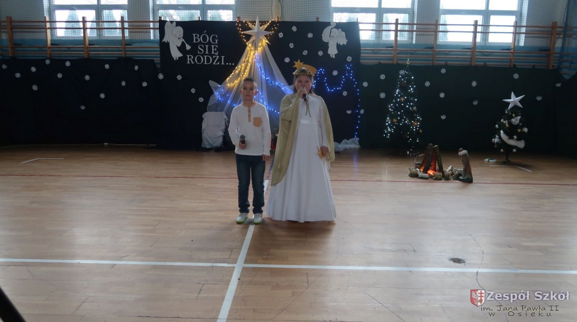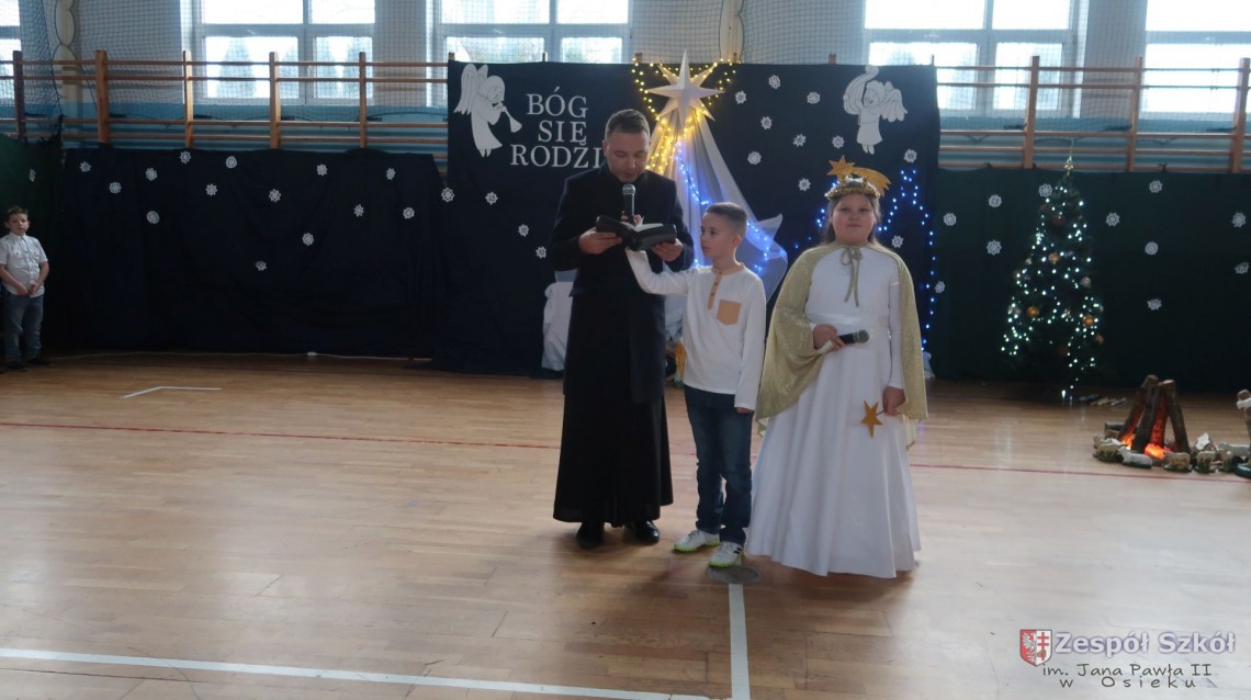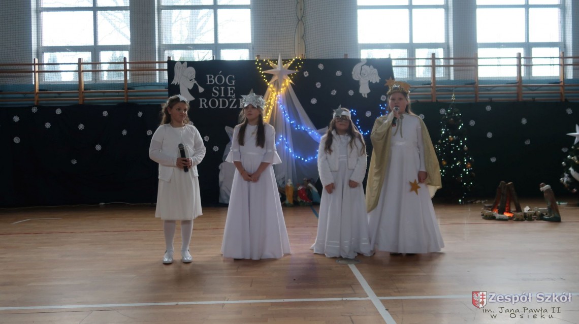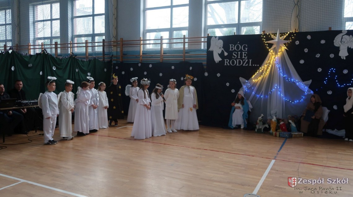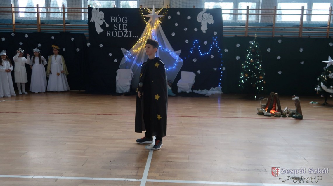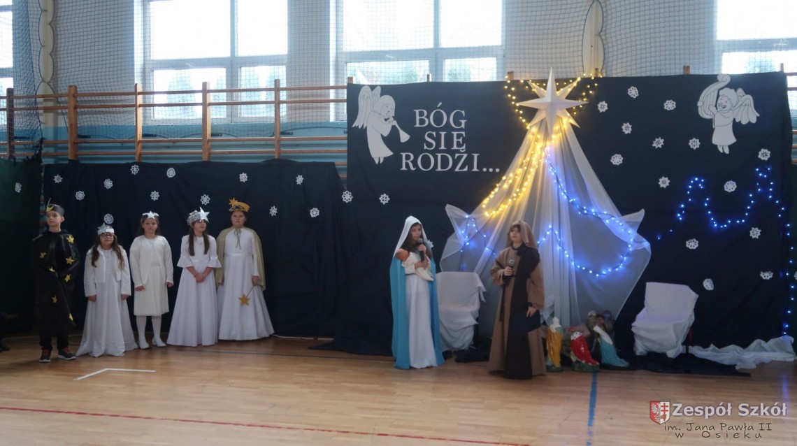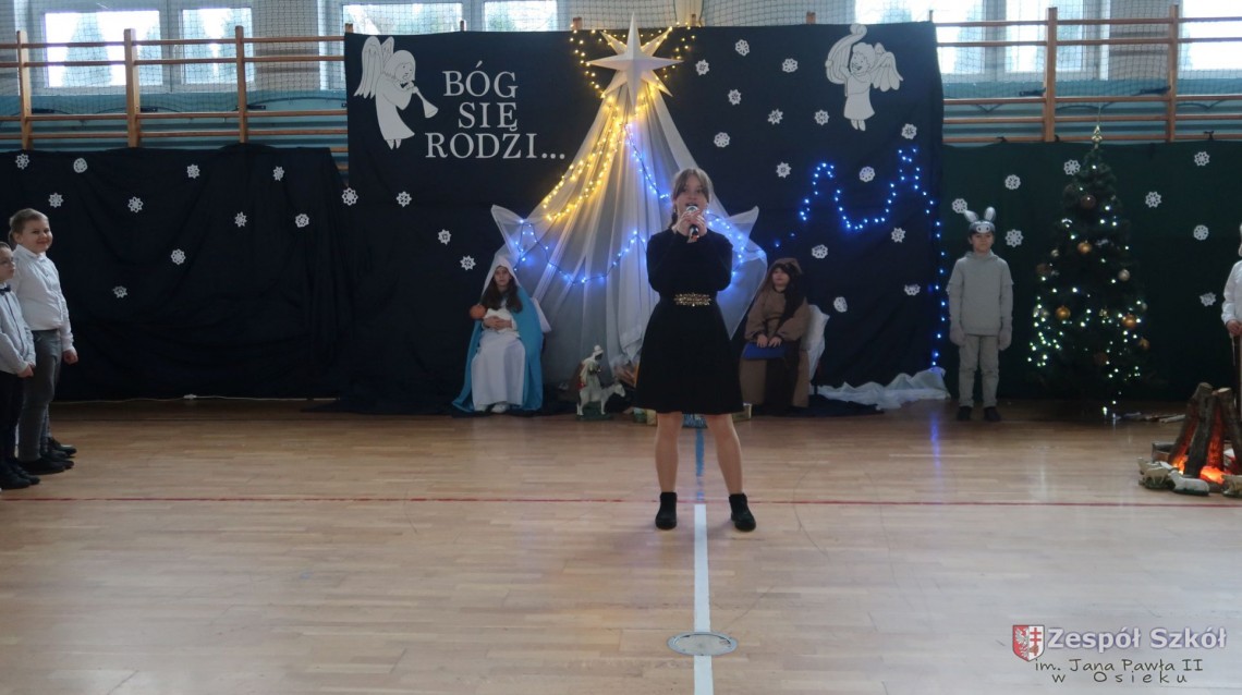Boże Narodzenie 2023 już za kilka dni. Tegoroczne jasełka pod hasłem " Bóg się rodzi ..." w Publicznej Szkole Podstawowej w Osieku wprowadziły w nastrój świąt i czas oczekiwania na narodzenie Jezusa. Pani dyrektor Małgorzata Kunowska przywitała przybyłych gości i zaprosiła na występ uczniów. Ciszę betlejemskiej nocy i radość narodzin rozpoczęli uczniowie klasy III a i III b. Kolęda "Wśród nocnej ciszy" wprowadziła widzów w stan autentycznego przeżywania. Ciepłe, prosto z serc płynące teksty z dziecięcą wrażliwością składały hołd Małemu Jezusowi. Uczennica klasy szóstej Karolina Dobrowolska i uczennica klasy ósmej Gabriela Ciepiela zaśpiewały kolędy. Ponadto uczennice klas trzecich wykonały "Taniec gwiazdeczek" w niezwykłych efektach świetlnych. Całości dopełniła piękna dekoracja, rozświetlona blaskiem światełek. Przedstawienie jasełkowe było dla nas wszystkich lekcją wzajemnego zbliżenia, miłości, zadumy i refleksji.