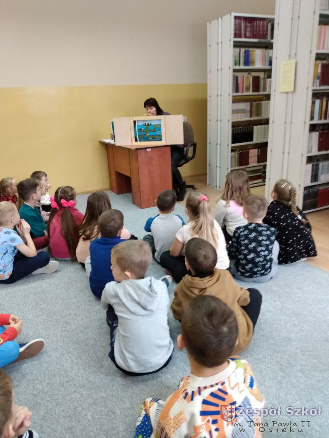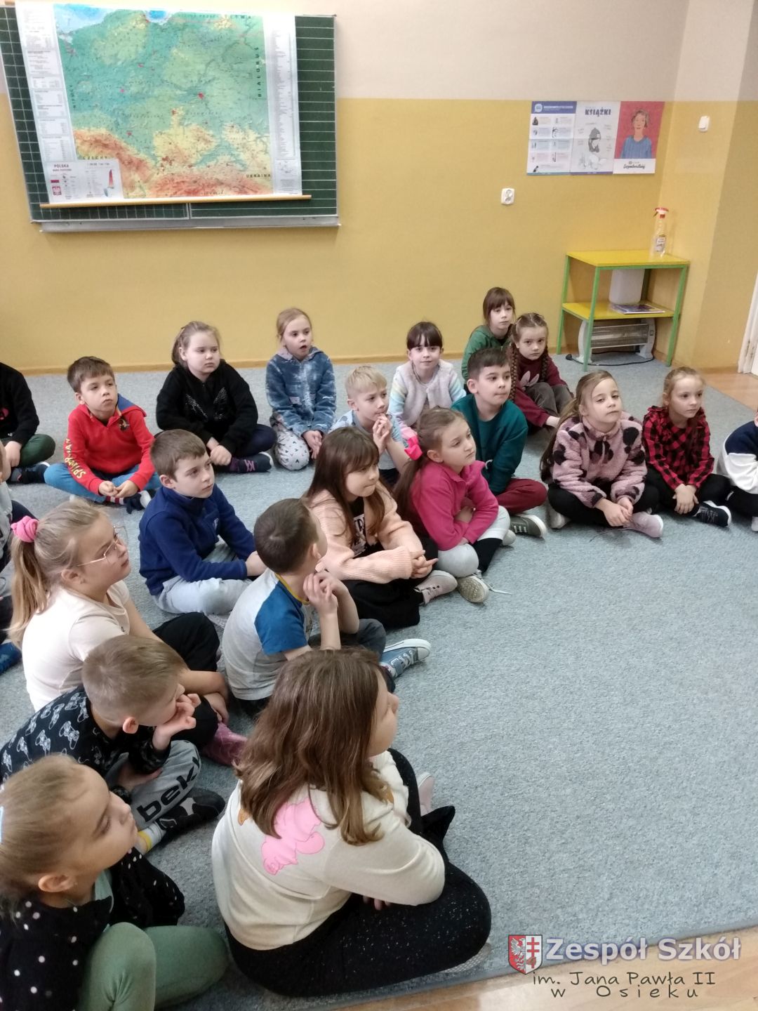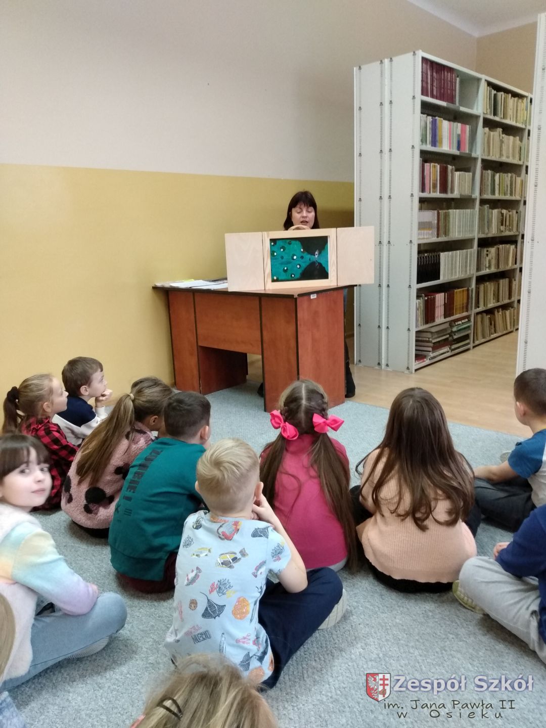 16 stycznia br. uczniowie klas pierwszych i drugiej uczestniczyli w zajęciach edukacyjnych przeprowadzonych przez panią Dorotę Wójcik – pracownika Pedagogicznej Biblioteki Wojewódzkiej w Kielcach Filia w Staszowie, która za pomocą teatrzyku kamishibai przedstawiła im „Bajkę o Wiśle” autorstwa Magdaleny Zarębskiej. Oglądając kolejne ilustracje wsuwane do drewnianego butai dzieci odbyły wycieczkę z nurtem największej polskiej rzeki, od jej źródeł – Czarnej i Białej Wisełki wypływających z Beskidu Śląskiego, aż do ujścia w Zatoce Gdańskiej, skąd wpada do Morza Bałtyckiego.