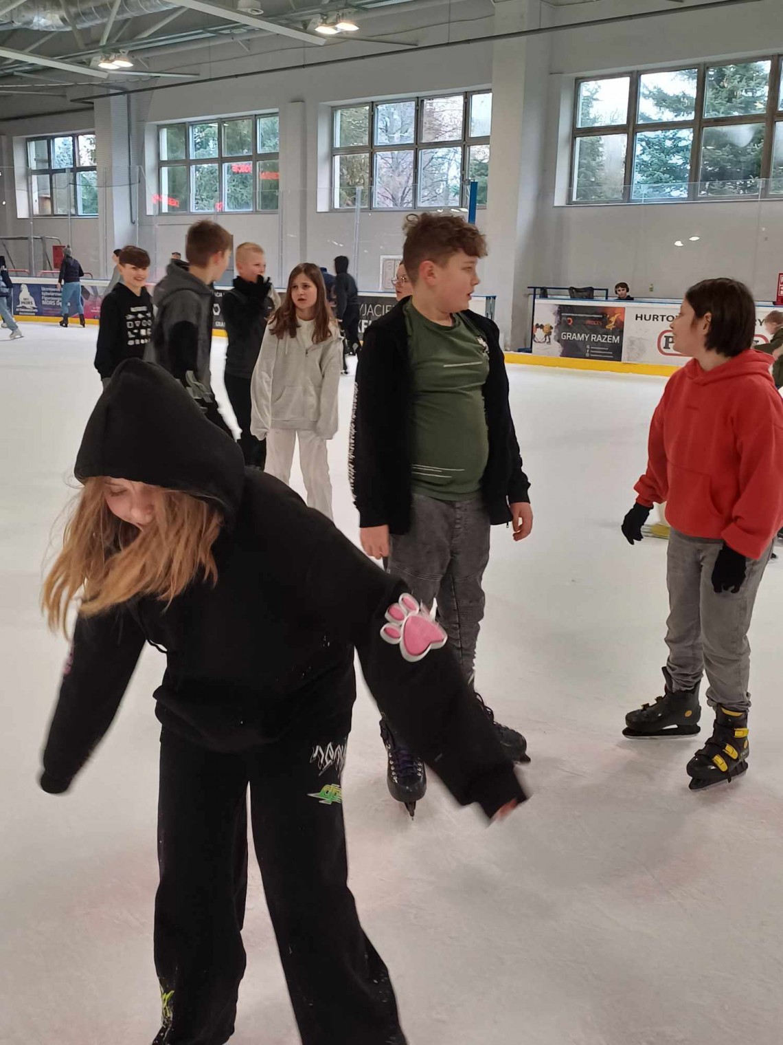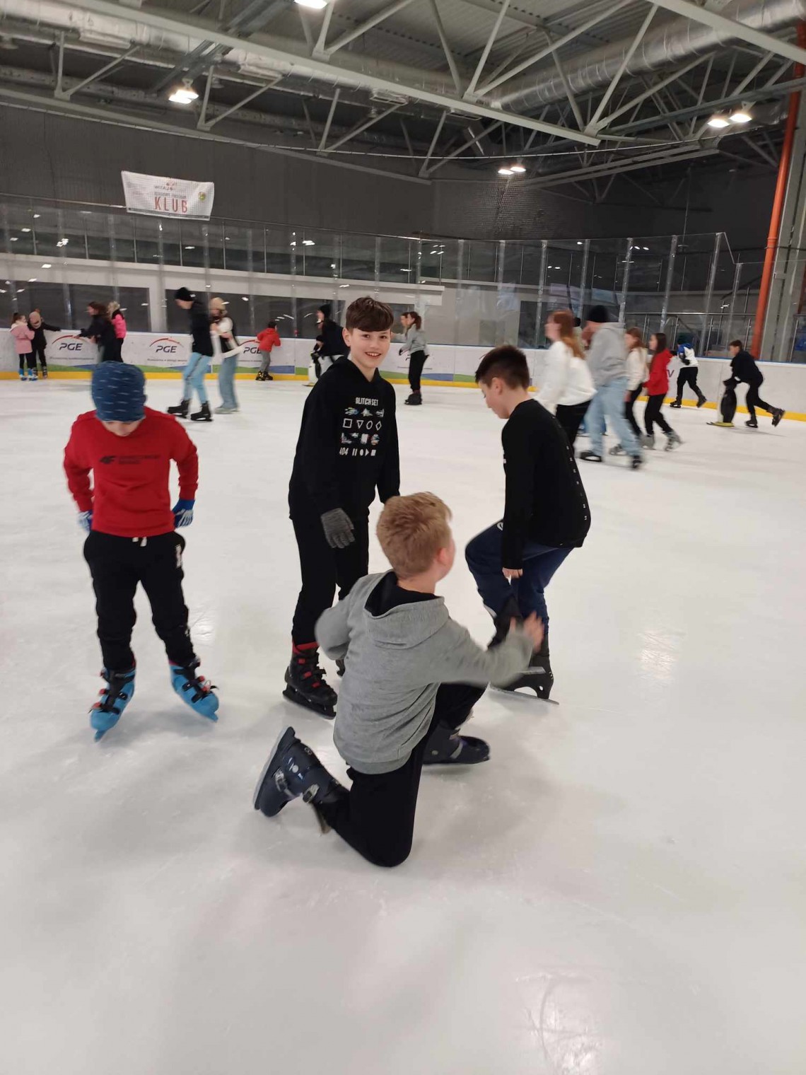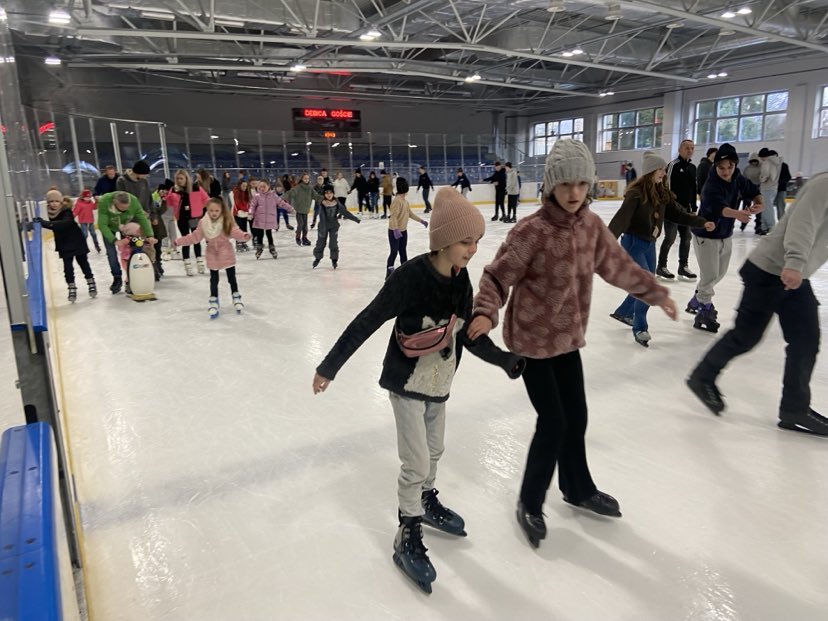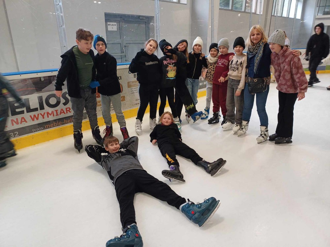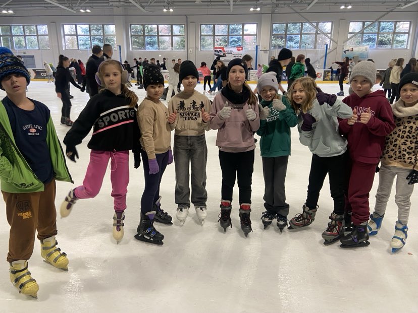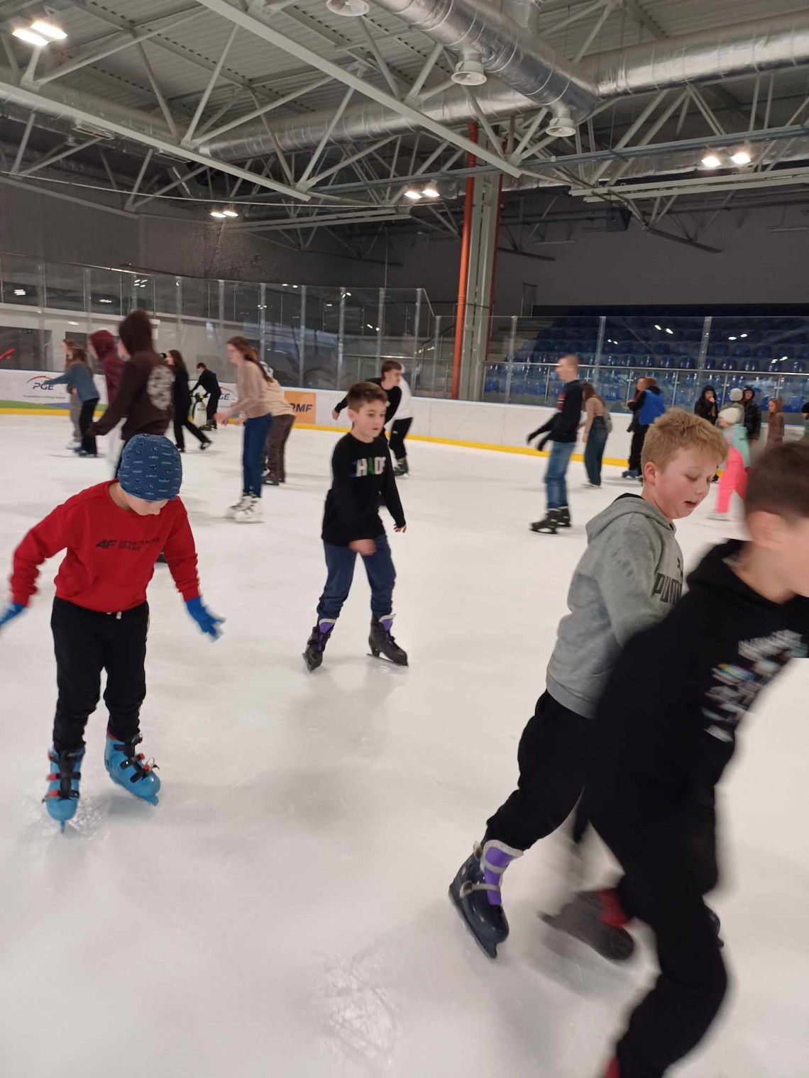 01 lutego 2024r. uczniowie klas IV, V a, V b naszej szkoły wraz z wychowawcami wyjechali do Dębicy na lodowisko „MOSiR”. Celem wycieczki była nauka jazdy na łyżwach, dla niektórych doskonalenie techniki jazdy na łyżwach, integracja oraz oczywiście dobra zabawa. Uczniowie chętnie poddali się łyżwiarskim szaleństwom, z ogromną determinacją starali się wygrać z grawitacją na lodowisku. Mimo, iż nie wszyscy byli ekspertami od jazdy na lodzie szybko nabrali nowych umiejętności, niektórzy zamiast ślizgów solowych preferowali towarzystwo sympatycznych” pingwinków” lub przejażdżkę grupową. Nie obyło się bez upadków, czasem przydała się koleżeńska pomoc ale mimo wszystko była to prawdziwa frajda. Wycieczce towarzyszyła miła atmosfera, a uczestnikom dopisywało poczucie humoru.