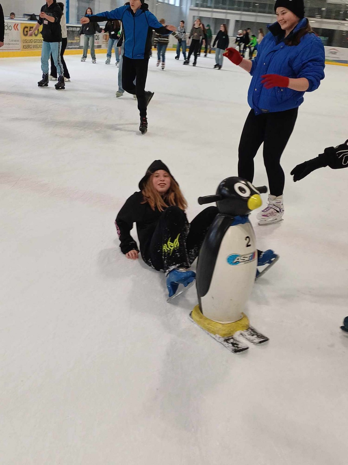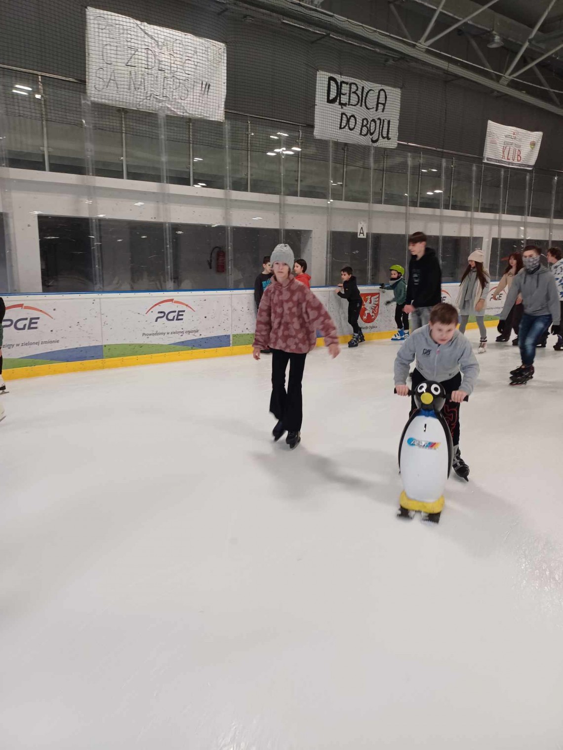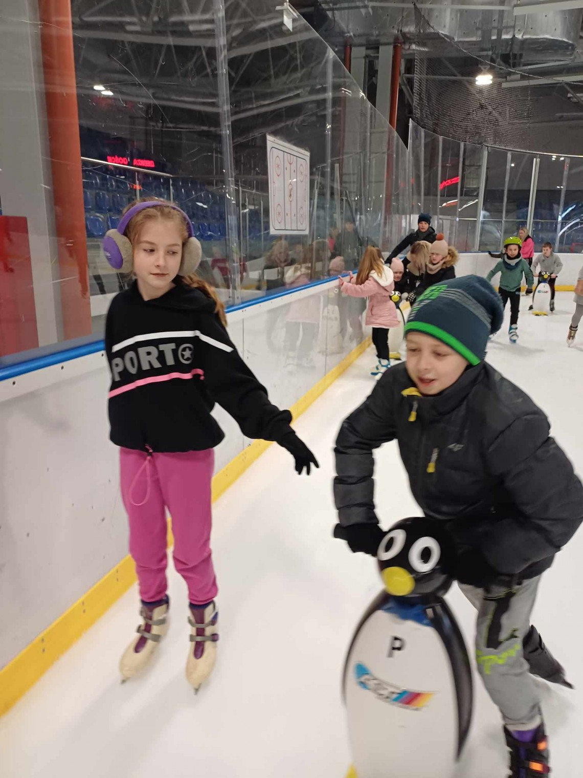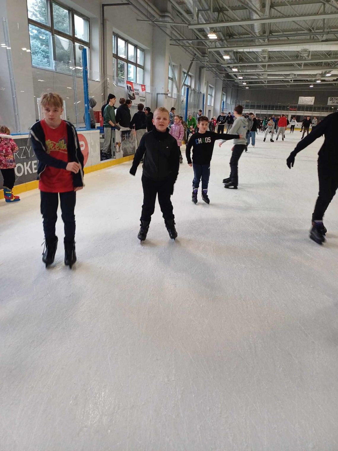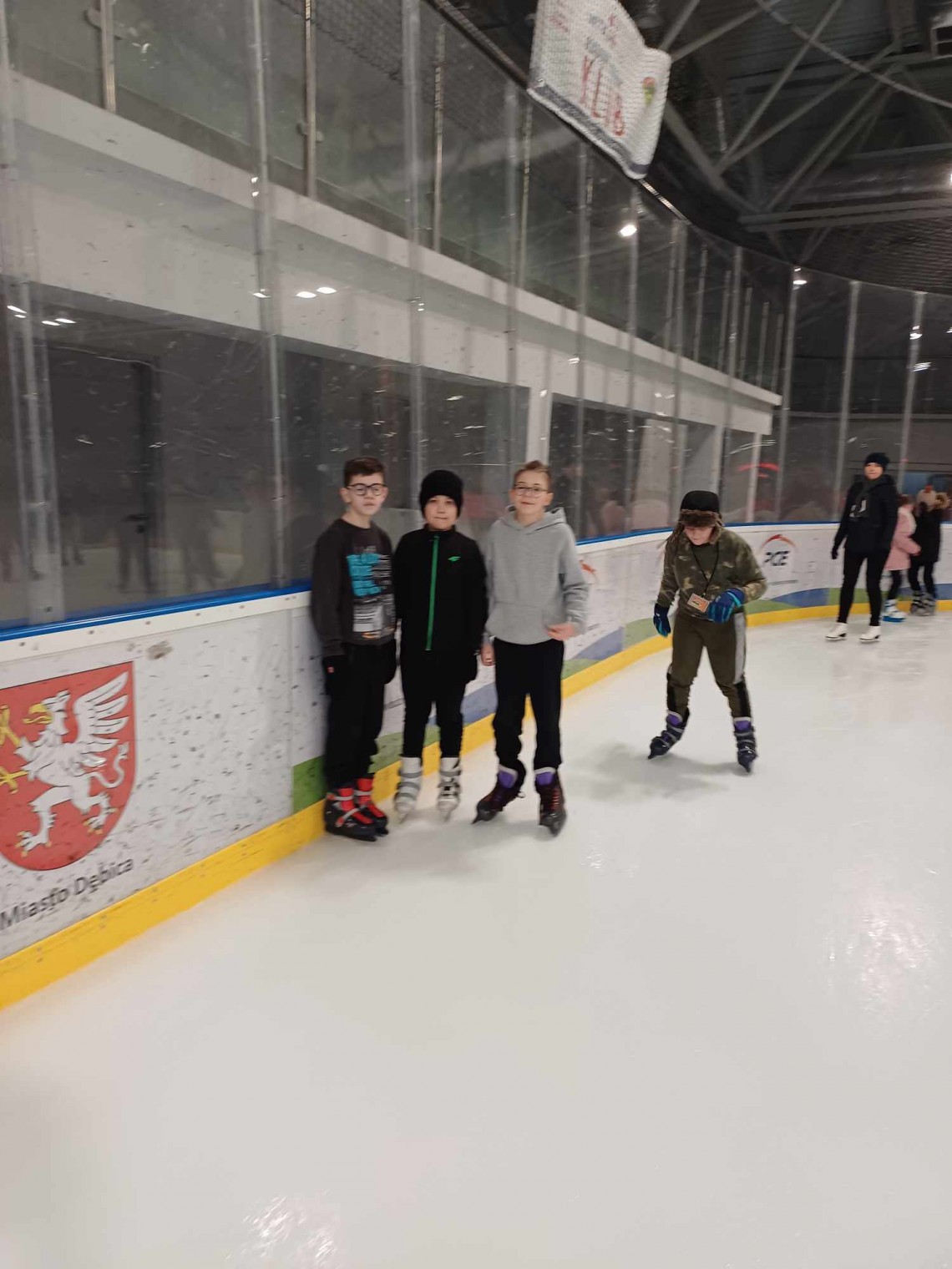 01 lutego 2024r. uczniowie klas IV, V a, V b naszej szkoły wraz z wychowawcami wyjechali do Dębicy na lodowisko „MOSiR”. Celem wycieczki była nauka jazdy na łyżwach, dla niektórych doskonalenie techniki jazdy na łyżwach, integracja oraz oczywiście dobra zabawa. Uczniowie chętnie poddali się łyżwiarskim szaleństwom, z ogromną determinacją starali się wygrać z grawitacją na lodowisku. Mimo, iż nie wszyscy byli ekspertami od jazdy na lodzie szybko nabrali nowych umiejętności, niektórzy zamiast ślizgów solowych preferowali towarzystwo sympatycznych” pingwinków” lub przejażdżkę grupową. Nie obyło się bez upadków, czasem przydała się koleżeńska pomoc ale mimo wszystko była to prawdziwa frajda. Wycieczce towarzyszyła miła atmosfera, a uczestnikom dopisywało poczucie humoru.