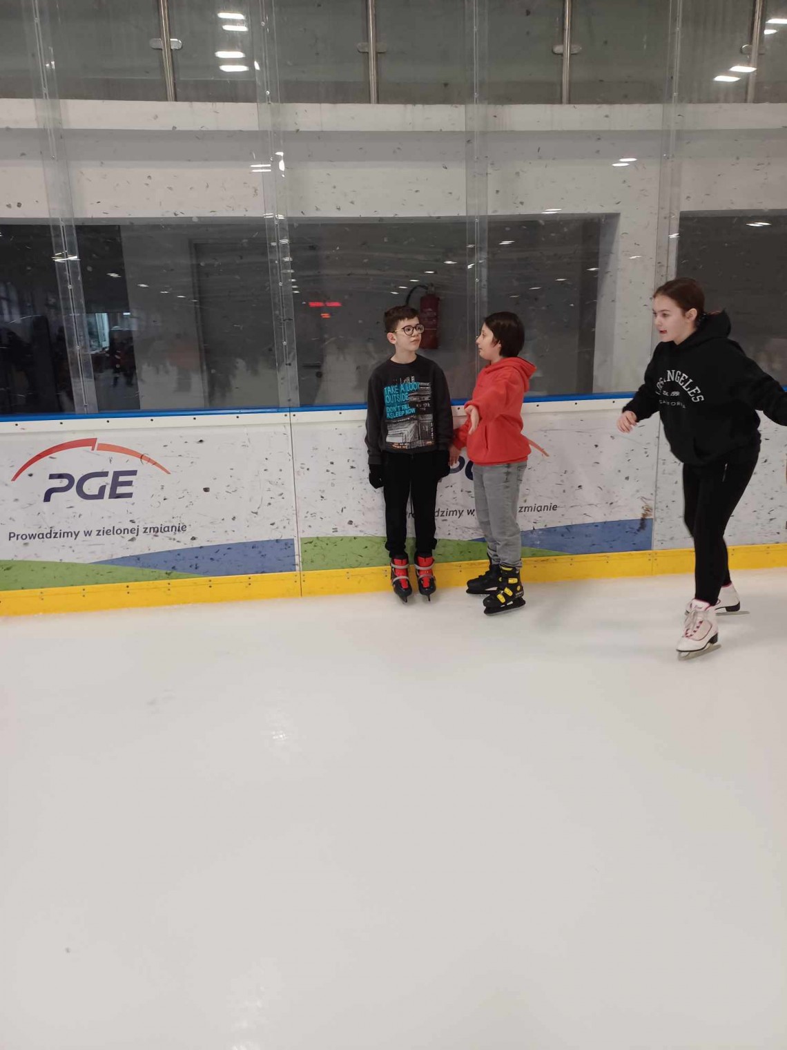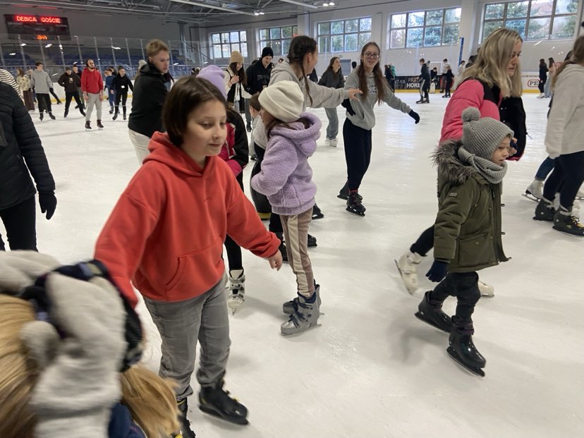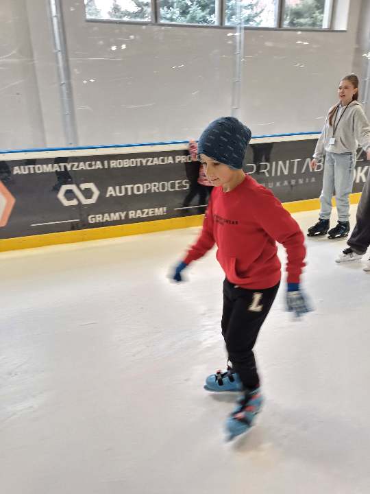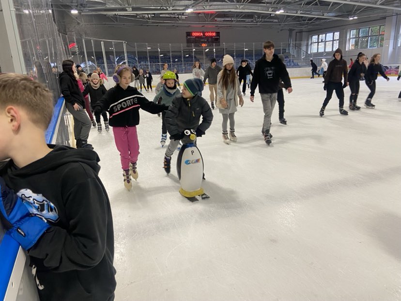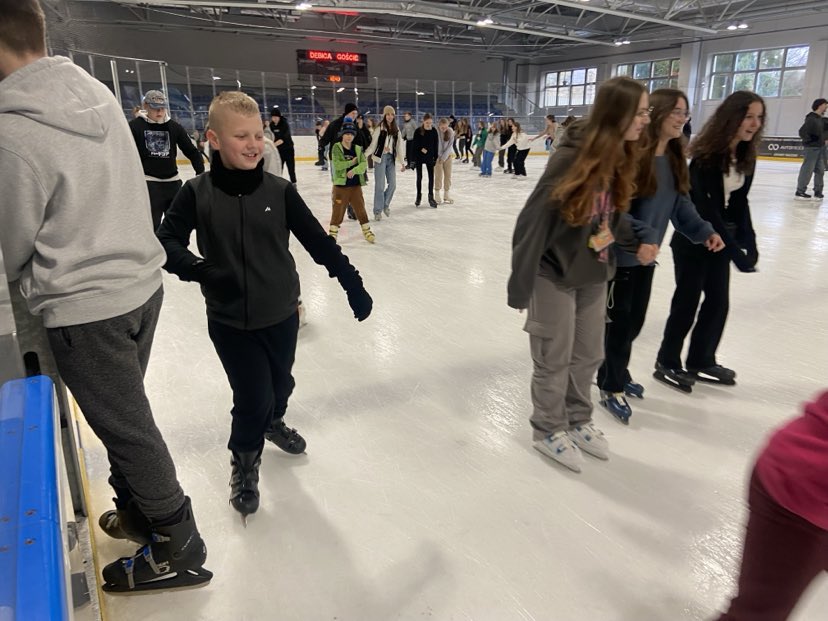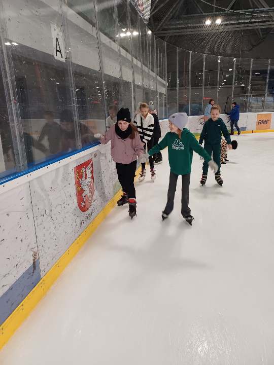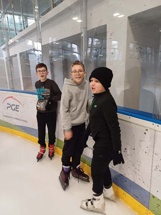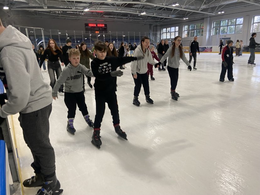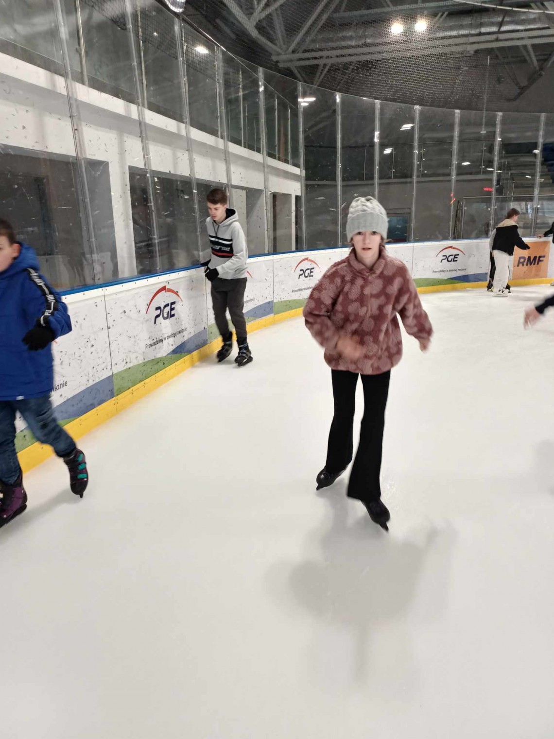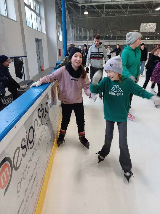 01 lutego 2024r. uczniowie klas IV, V a, V b naszej szkoły wraz z wychowawcami wyjechali do Dębicy na lodowisko „MOSiR”. Celem wycieczki była nauka jazdy na łyżwach, dla niektórych doskonalenie techniki jazdy na łyżwach, integracja oraz oczywiście dobra zabawa. Uczniowie chętnie poddali się łyżwiarskim szaleństwom, z ogromną determinacją starali się wygrać z grawitacją na lodowisku. Mimo, iż nie wszyscy byli ekspertami od jazdy na lodzie szybko nabrali nowych umiejętności, niektórzy zamiast ślizgów solowych preferowali towarzystwo sympatycznych” pingwinków” lub przejażdżkę grupową. Nie obyło się bez upadków, czasem przydała się koleżeńska pomoc ale mimo wszystko była to prawdziwa frajda. Wycieczce towarzyszyła miła atmosfera, a uczestnikom dopisywało poczucie humoru.