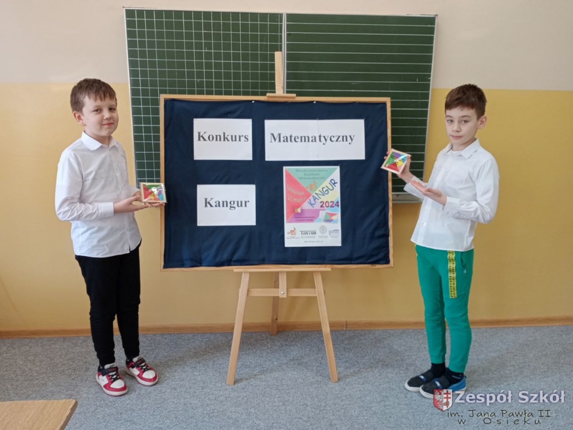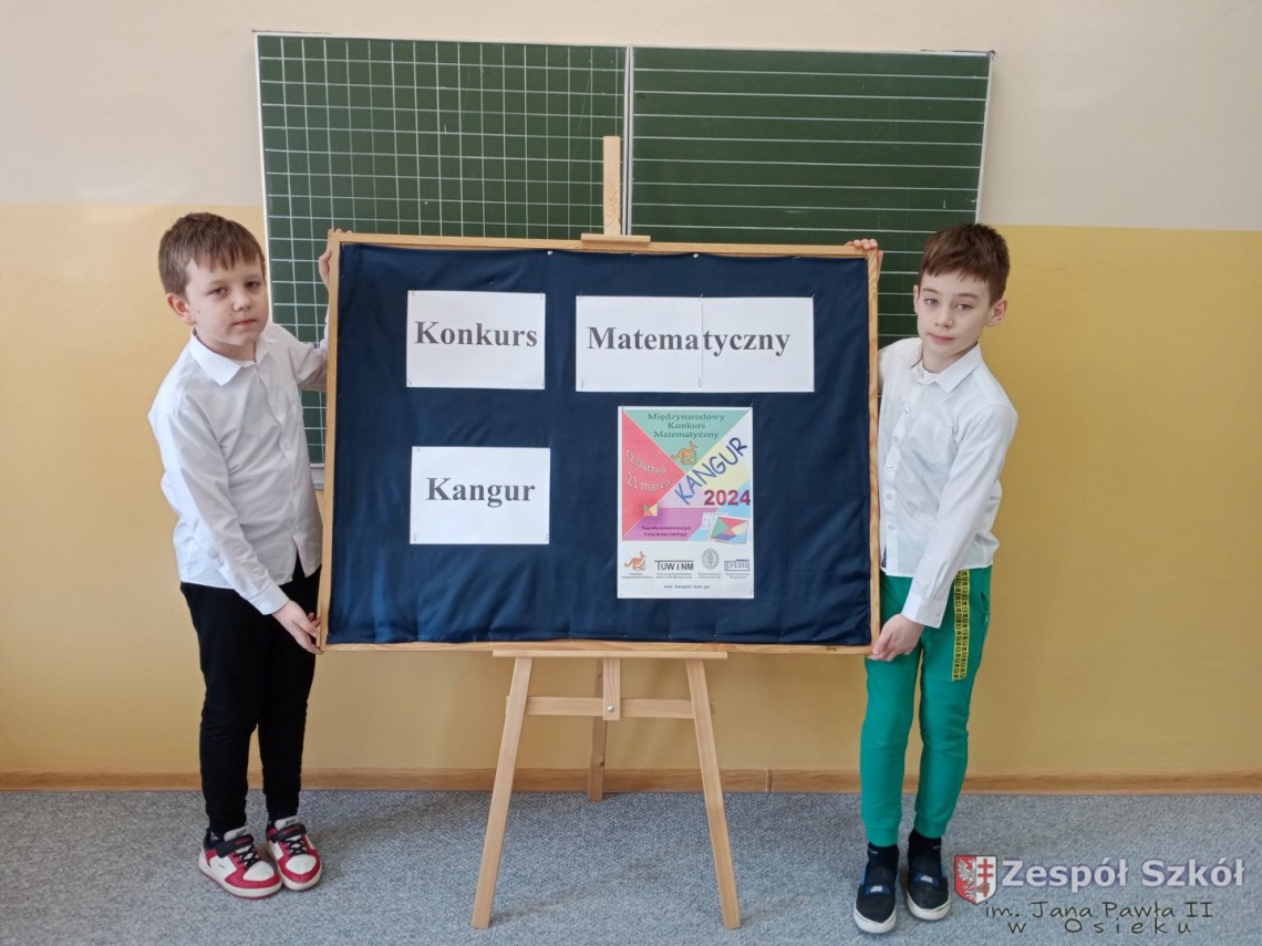 W dniu 21 marca 2024r. uczniowie klasy IIIB : Igor Serwan, Jakub Strach i Ernest Kusik wzięli udział w Międzynarodowym Konkursie Kangur Matematyczny, którego celem było rozwijanie umiejętności matematycznych , zdolności i kreatywnego myślenia. Test konkursowy w kategorii "Maluch" zawierał 24 zadania o różnym stopniu trudności i miał charakter jednorazowy. Wspólna dla wszystkich krajów data konkursu oraz te same zestawy pytań dla poszczególnych poziomów podnoszą atrakcyjność konkursu. Dzień konkursu ,,Dzień Kangura’’ stał się już na świecie prawdziwym świętem matematyki i jest okazją do popularyzowania tego przedmiotu, dlatego też, uczniowie klasy IIIB po raz drugi zmierzyli się z tym wyzwaniem i wzięli udział w konkursie.