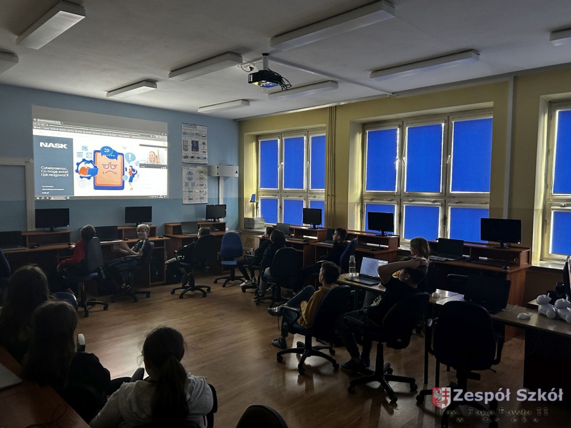 Uczniowie wszystkich klas uczestniczyli w lekcjach online o bezpieczeństwie w Internecie oraz konkursach.