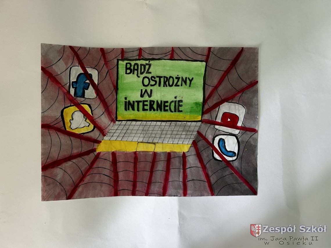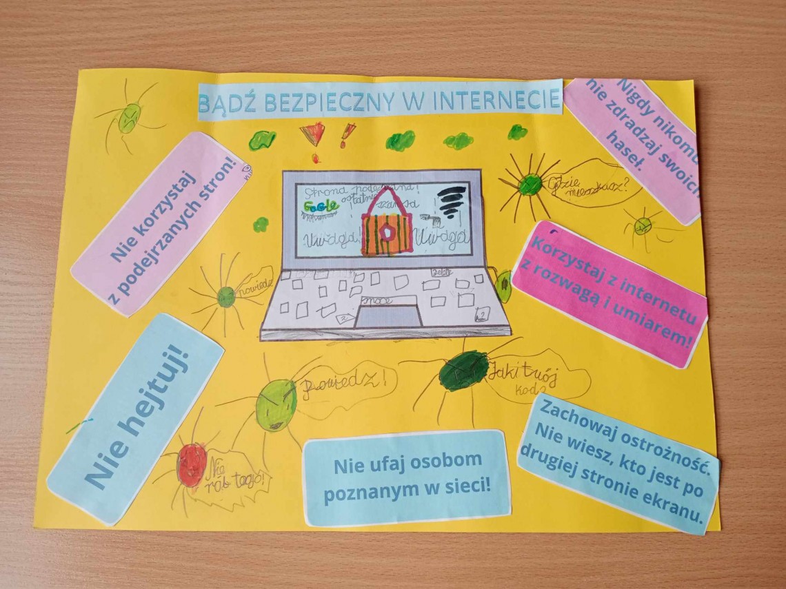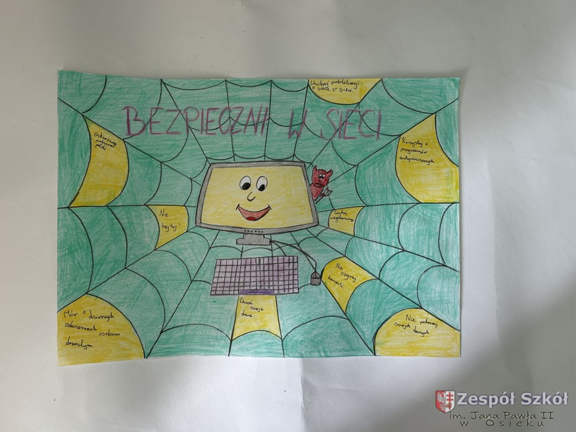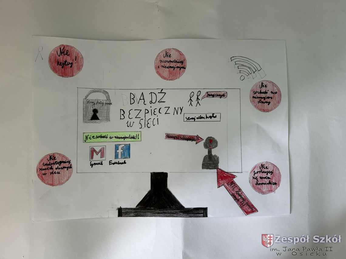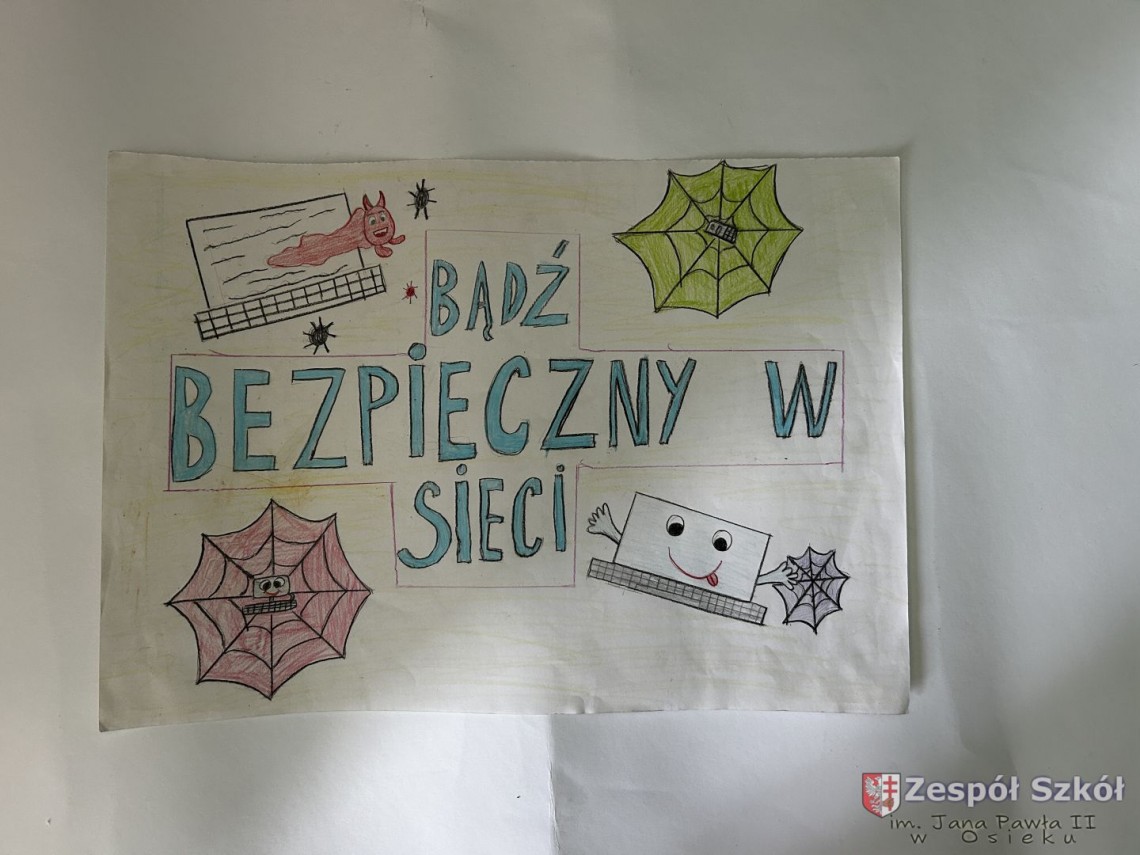 Szkolny Konkurs „Bądź bezpieczny w sieci!” został przeprowadzony w ramach obchodów Międzynarodowego Dnia Bezpiecznego Internetu. Wzięli w nim udział uczniowie klas I – III (pierwsza kategoria), klas IV – VI (druga kategoria) i klas VII – VIII (trzecia kategoria), przygotowując prace plastyczne lub memy promujące zasady bezpiecznego korzystania z Internetu.