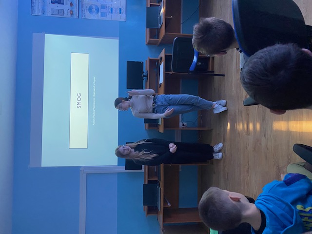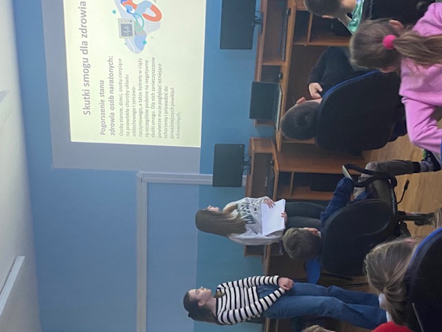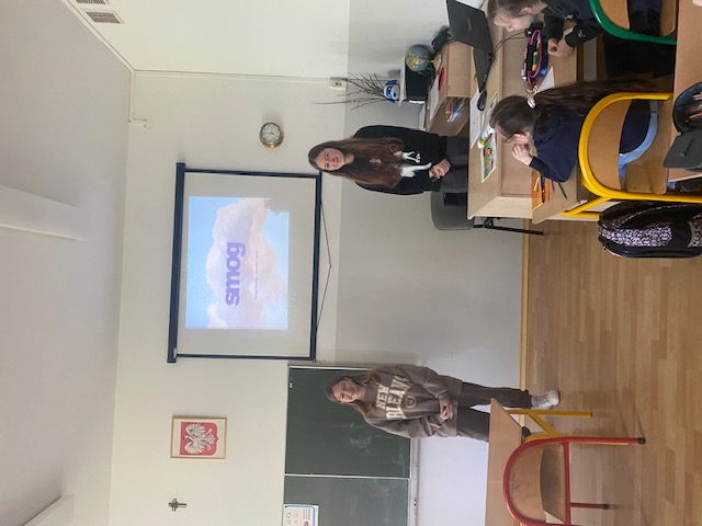 W trakcie lekcji uczniowie dowiedzieli się czym jest smog, jakie są jego rodzaje i jak powstaje. Omówione zostały również główne jego składniki. Przedstawiono negatywne skutki smogu dla zdrowia ludzi, środowiska naturalnego, a także główne źródła emisji zanieczyszczeń powietrza. Uczennice przedstawiły działania, które można podjąć, aby zmniejszyć poziom smogu. Podsumowaniem lekcji była pogadanka i uzupełnianie kolorowanek o tym niebezpiecznym zjawisku.