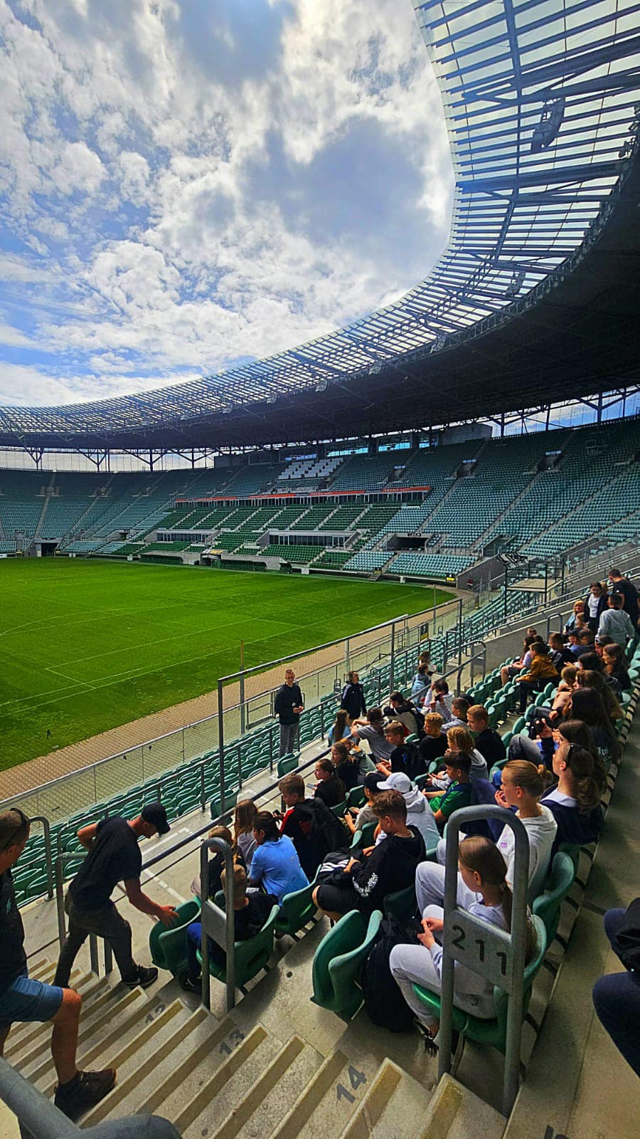 Atrakcją żywej lekcji przyrody był rejs pontonami. Po wysiłku włożonym w wiosłowanie zasłużyliśmy na nagrodę w postaci kiełbasek z ogniska. Kolejnym punktem wycieczki było zwiedzenie stadionu Tarczyński Arena-jednego z największych stadionów w Polsce oraz Muzeum Śląska Wrocław. Uczniowie mieli okazję poczuć się jak prawdziwi piłkarze Ekstraklasy. Czwartego dnia udaliśmy się do Centrum historii Zajezdnia. W muzeum zwiedzaliśmy wystawę,, Wrocław 1945-2016" zobaczyliśmy dużo ciekawych eksponatów. Następnie udaliśmy się do Zamku w Mosznie. Podziwiając wygląd zamku oraz jego piękny ogród, niesamowite wrażenie zrobiły na nas pokazy fontann.