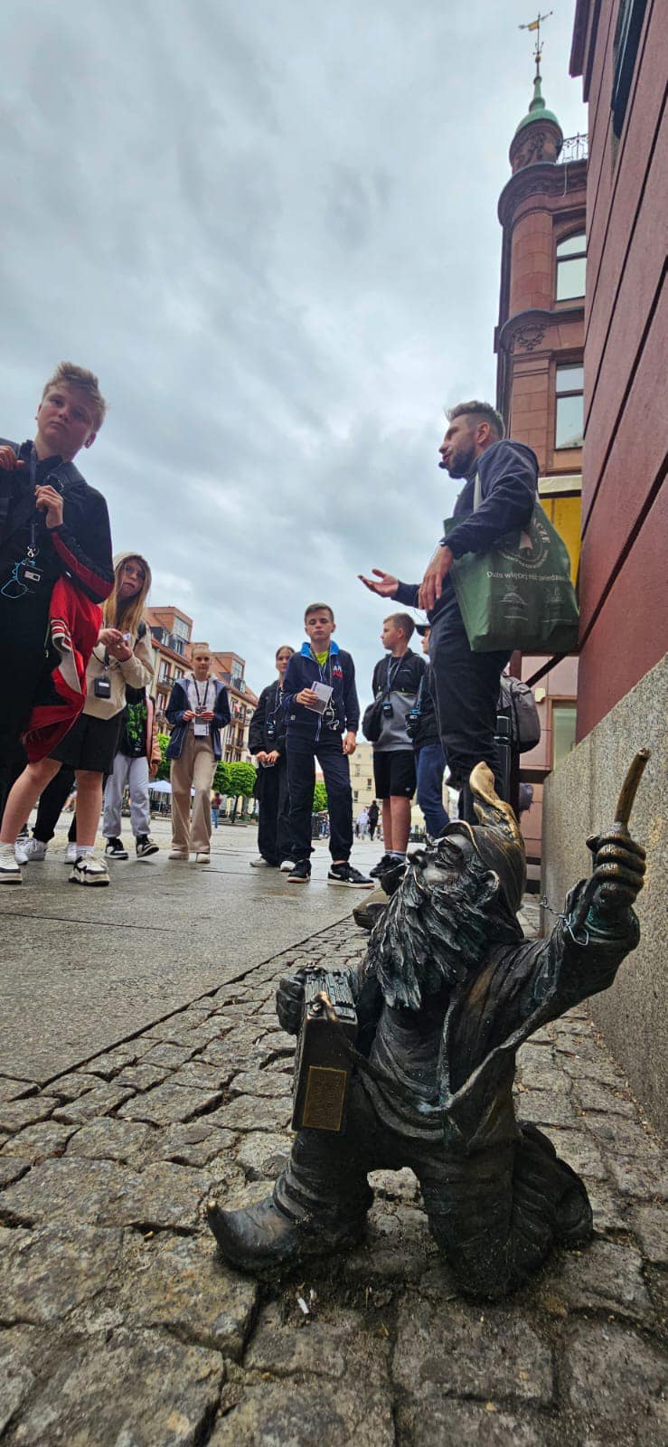 Kolejnym punktem wycieczki było zwiedzanie Rynku tego miasta przepięknej Starówki i niesamowitego Ratusza, który wyglądał jak domek z piernika. Zachwycił wszystkich uczestników. Idąc w kierunku Starego Miasta, szukaliśmy po drodze krasnoludków, które rozrzucone są po całym Wrocławiu. Widzieliśmy Plac Solny oraz Uniwersytet Wrocławski. Odwiedziliśmy również miejscową dzielnicę miasta Ostrów Tumski.