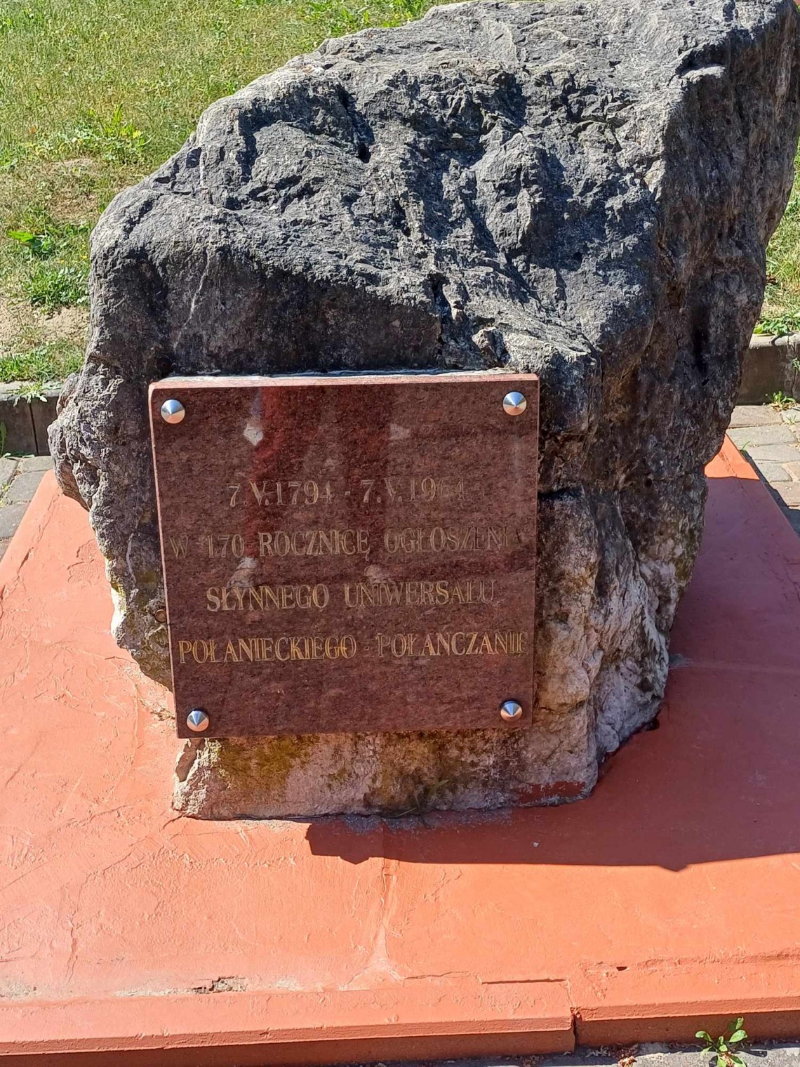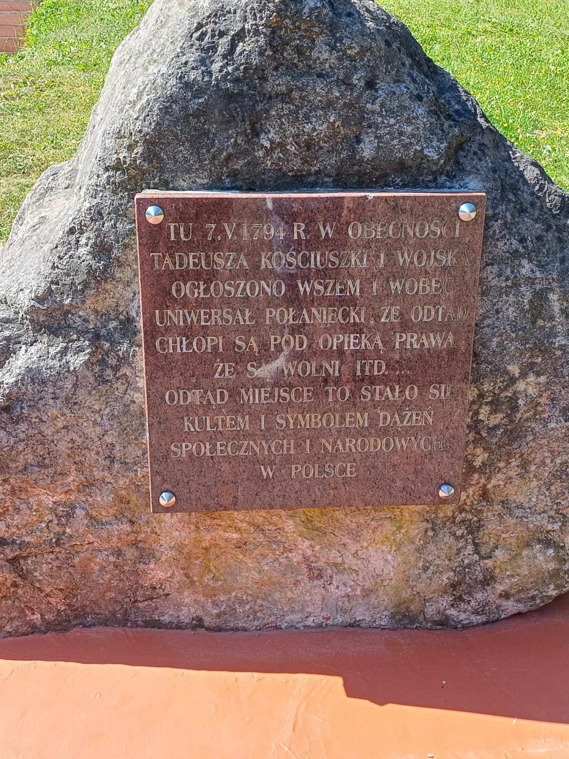 „Tu 7.V.1794 r. w obecności Tadeusza Kościuszki i wojska ogłoszono wszem i wobec Uniwersał połaniecki, że odtąd chłopi są pod opieką prawa, że są wolni itd... Odtąd miejsce to stało się kultem i symbolem dążeń społecznych i narodowych w Polsce.”