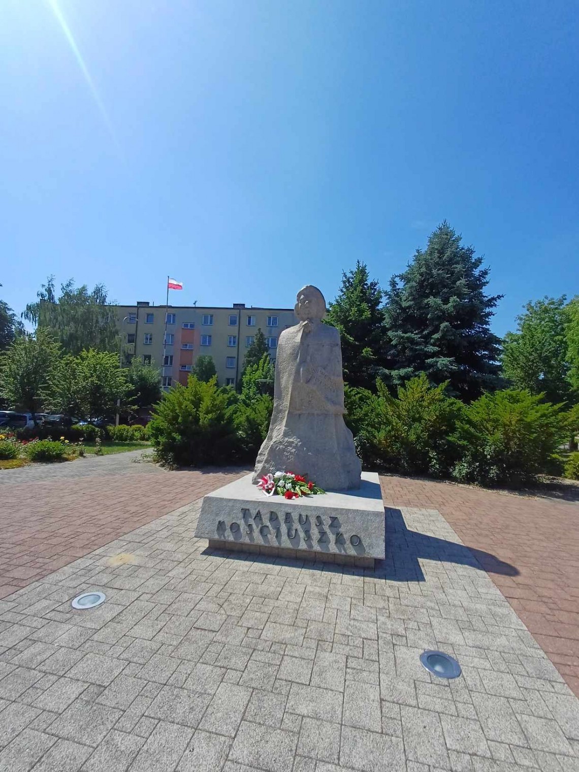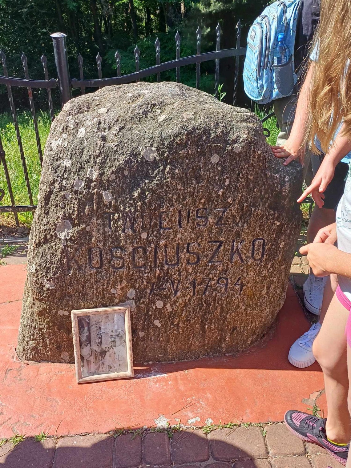 Kolejnym punktem wycieczki było przejście przed pomnik Tadeusza Kościuszki, którego uroczyste odsłonięcie odbyło się 14 października 1984r., a niespełna pół roku wcześniej, 5 maja 1984r., podczas uroczystości upamiętniających 190 rocznicę Uniwersału Połanieckiego dokonano wmurowania kamienia węgielnego pod pomnik.