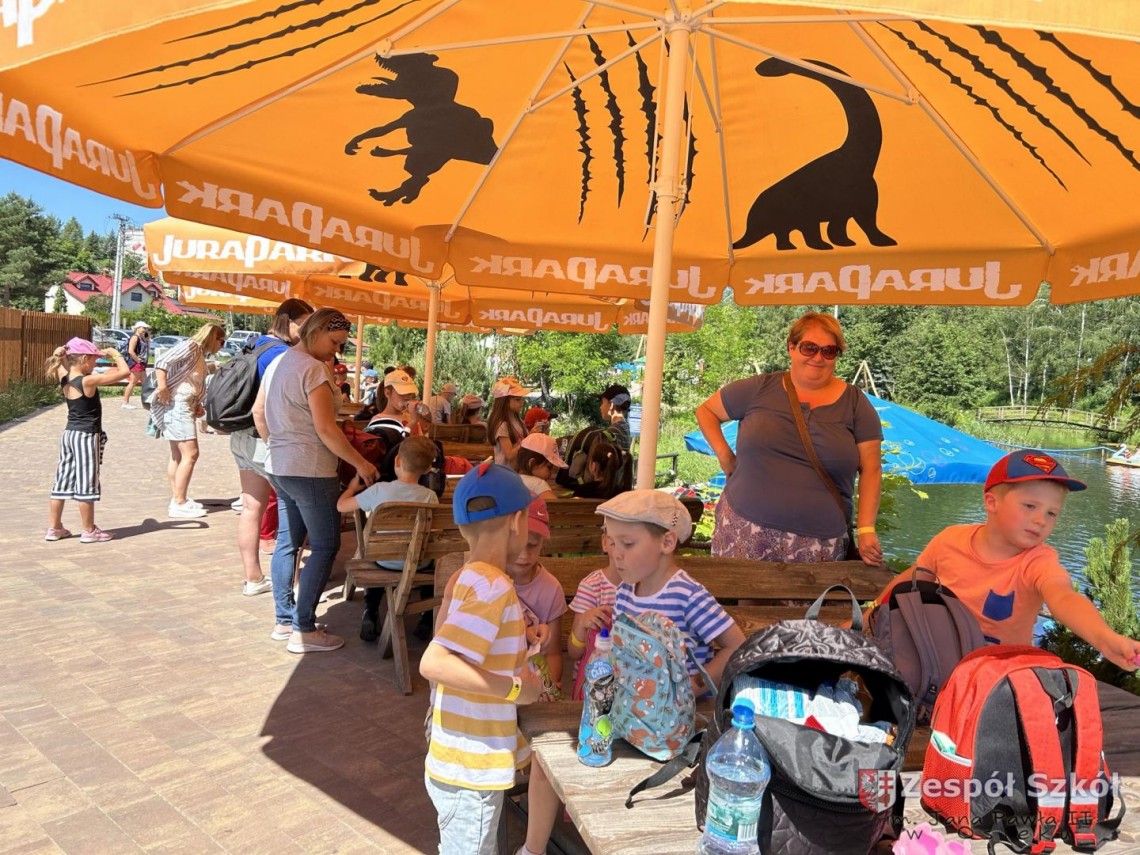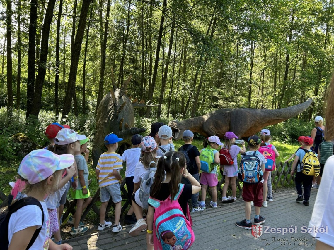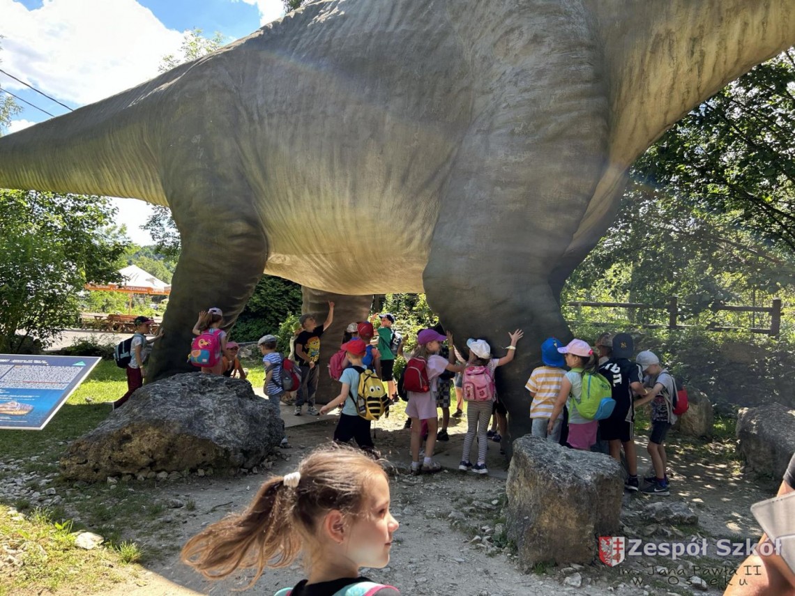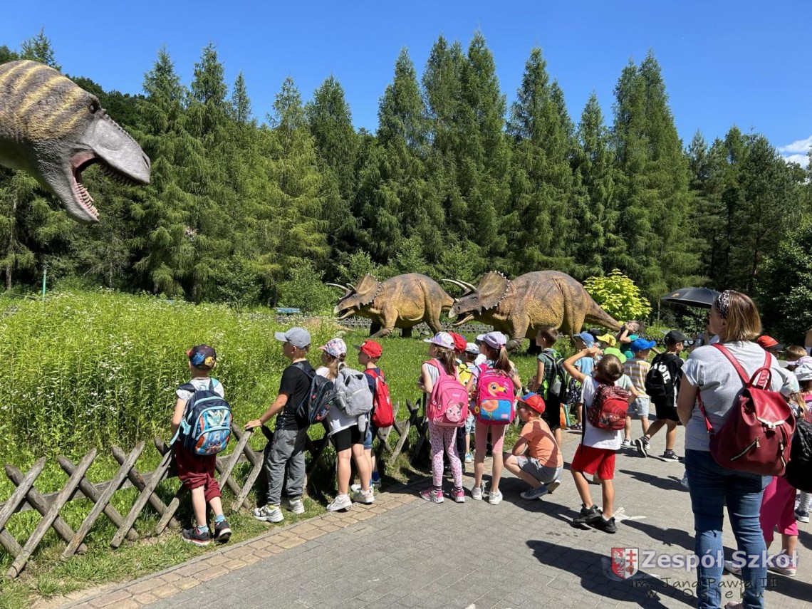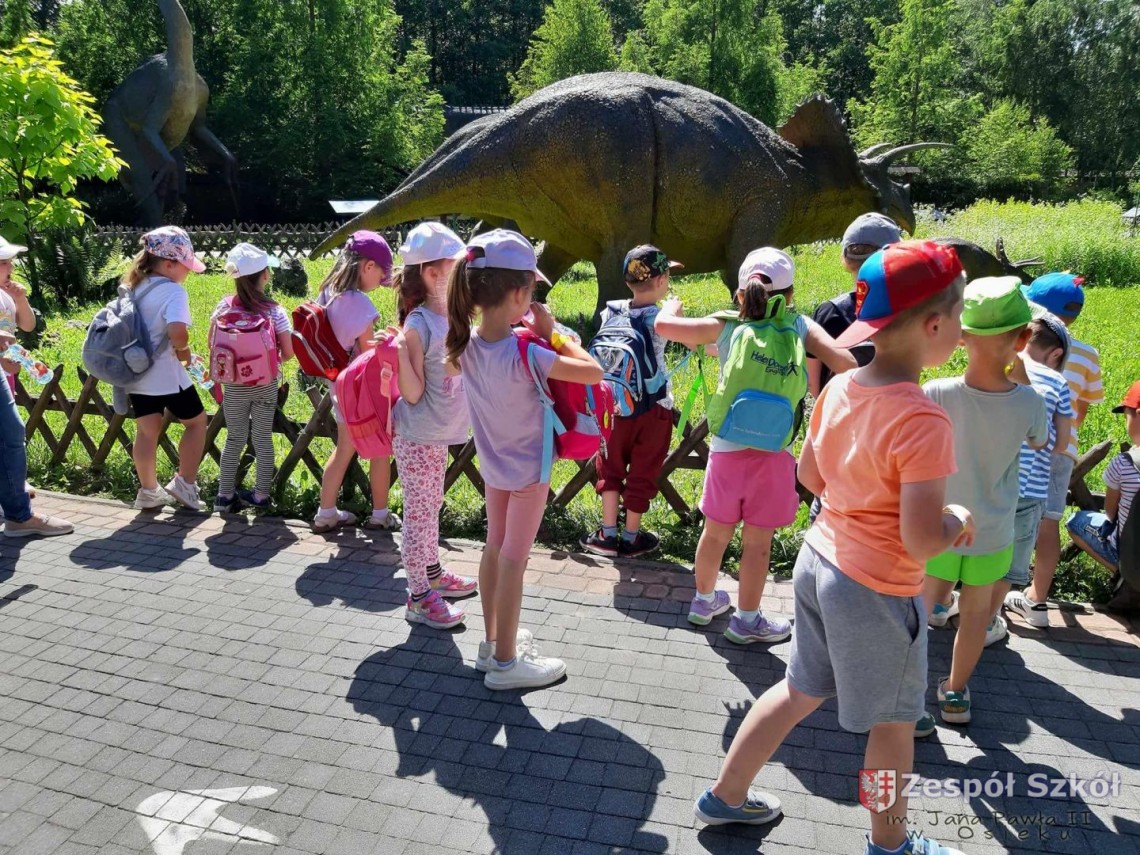 Po obiedzie grupa przedszkolaków wybrała się z wizytą do JuraParku, gdzie dzieci mogły zobaczyć rekonstrukcje dinozaurów w naturalnej wielkości. Przedszkolaki z zaciekawieniem słuchały, jak przewodnik opowiada o prehistorycznych czasach i różnych gatunkach dinozaurów.