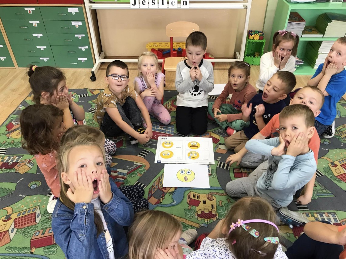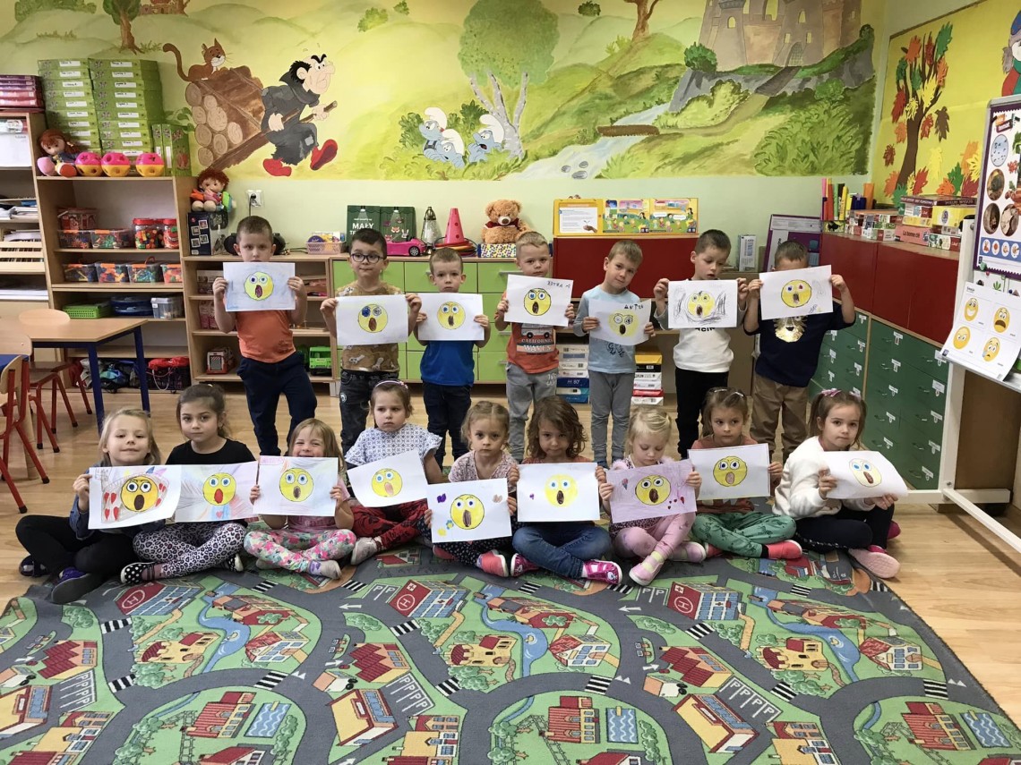 PAŹDZIERNIK – ZASKOCZENIE- sztuki plastyczne (poszukiwanie emocji zaskoczenia w literaturze – kolorowanie rysunku emocji );
