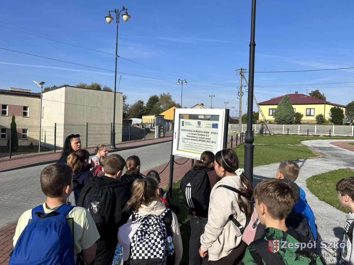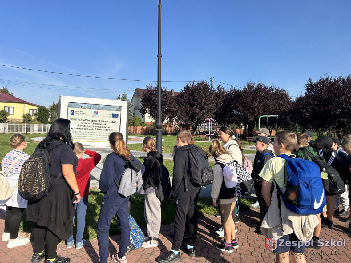 Podczas zajęć uczniowie poznawali miejsce swojego zamieszkania. Pierwszym punktem programu była wycieczka szlakiem zabytków materialnych znajdujących się w naszej miejscowości pt. „Materialne zabytki małej ojczyzny”. W czasie spaceru uczniowie wymieniali swoje spostrzeżenia na temat zmian zachodzących w Osieku po wejściu Polski do UE.